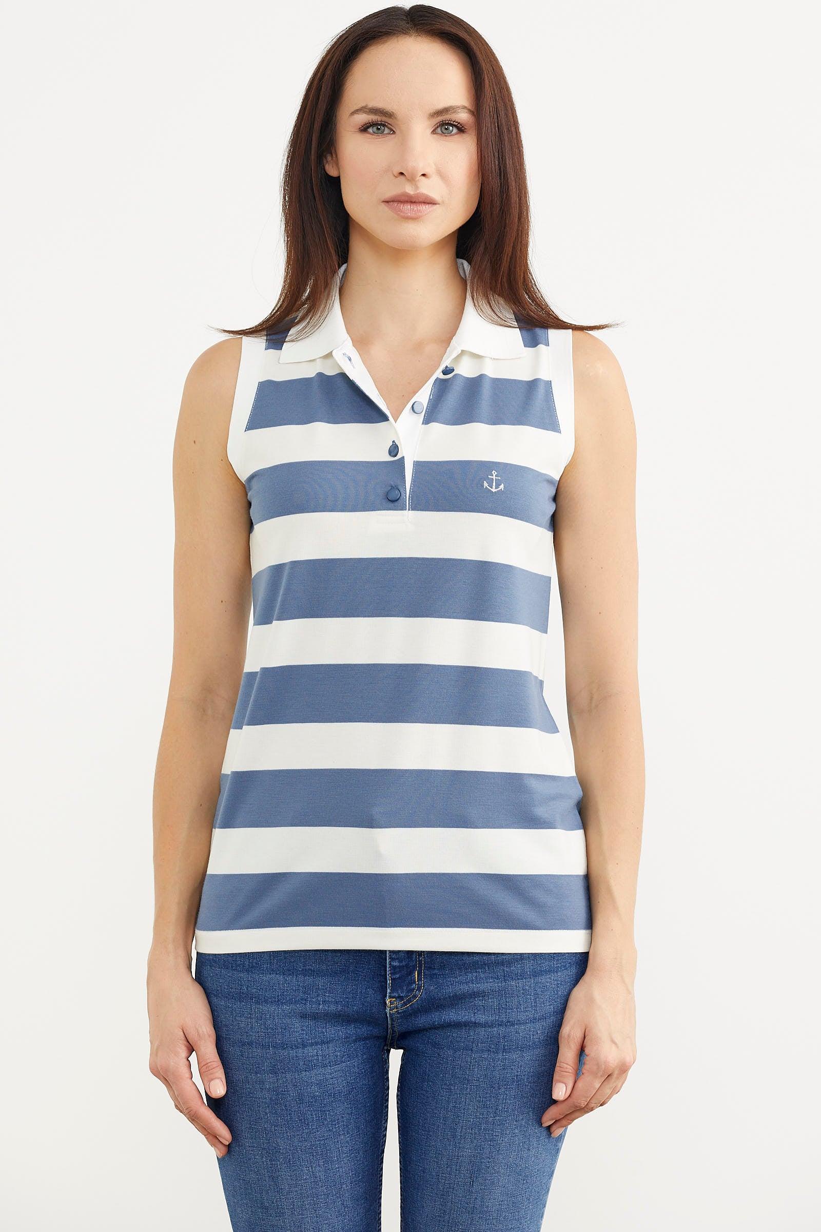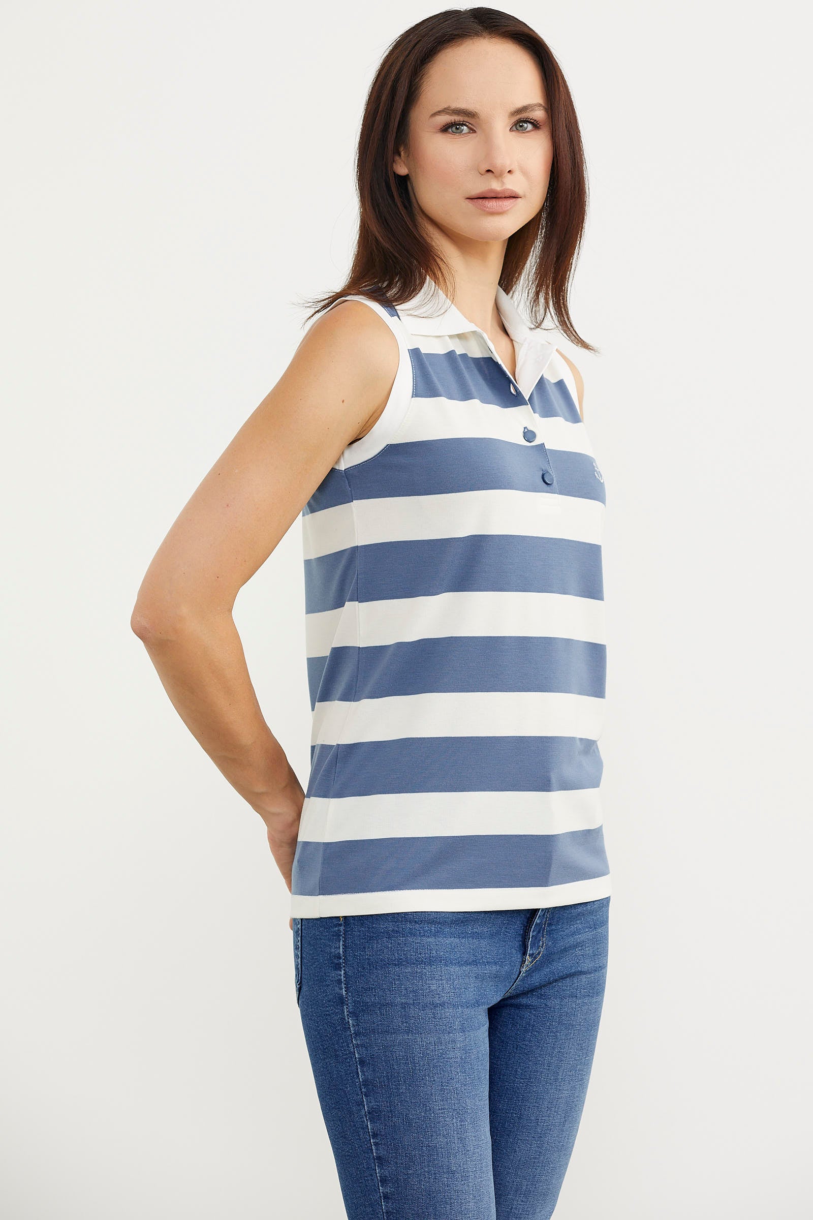 Sleeveless Polo Neck Striped T-Shirt - Indigo