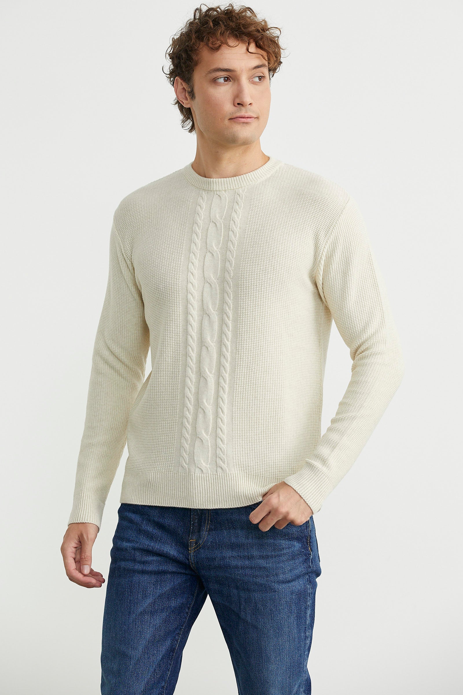 Motif Detaylı Bisiklet Yaka Triko Kazak - Taş