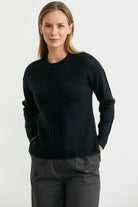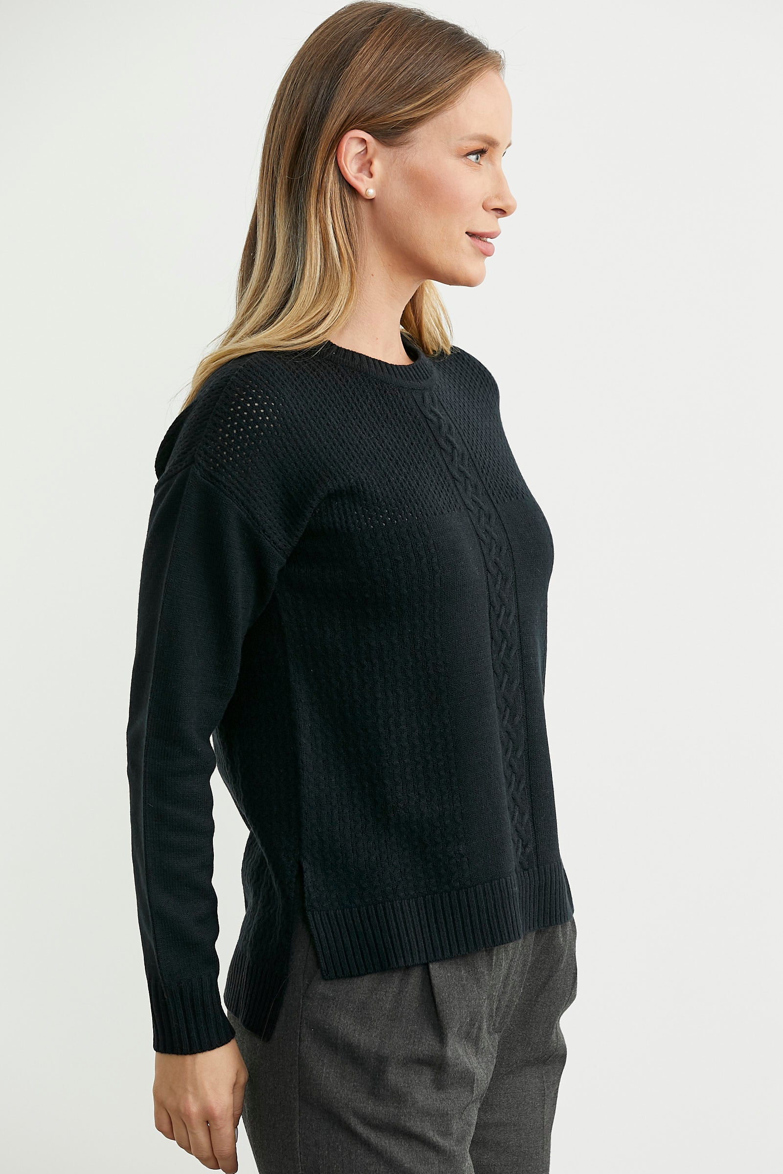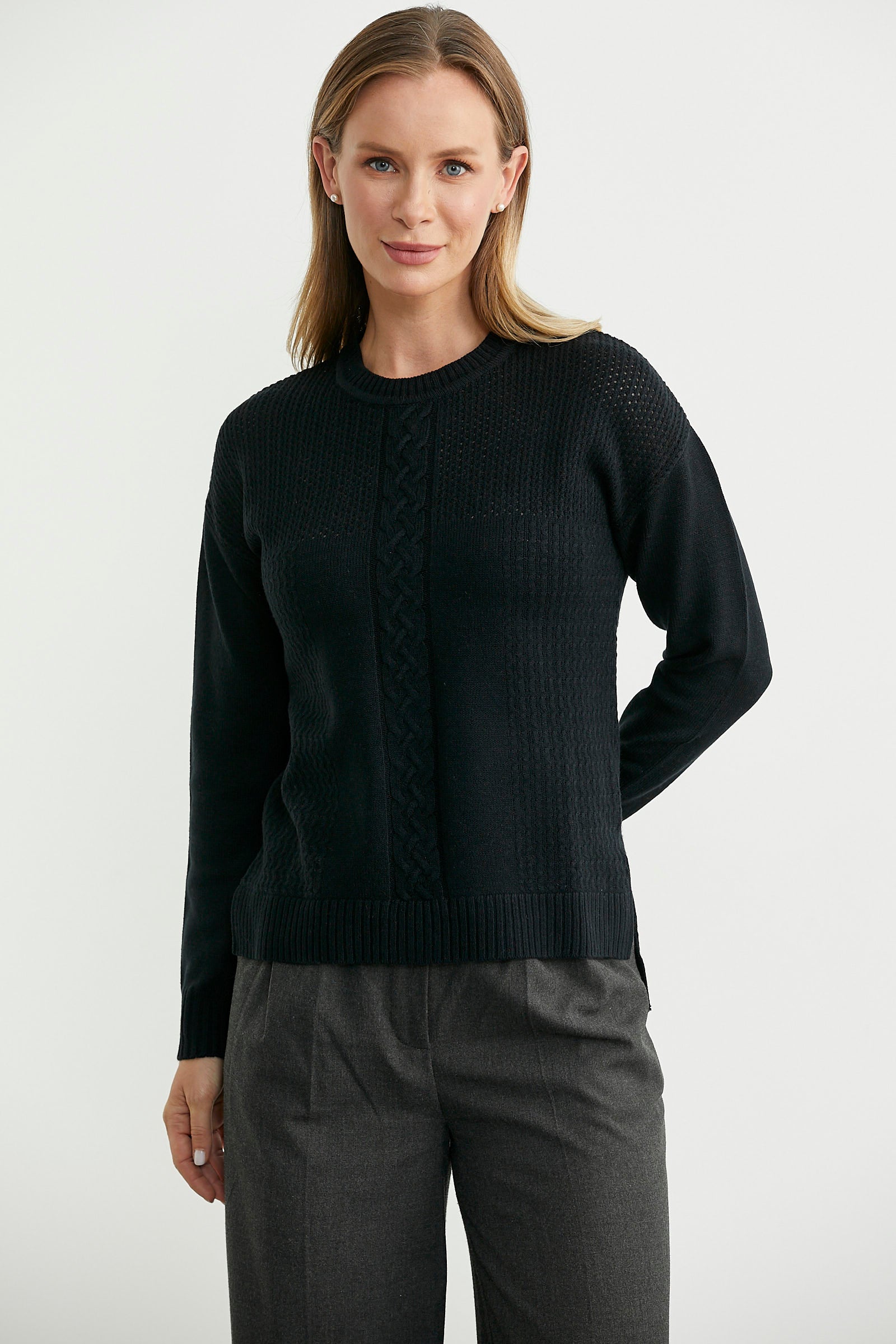 Motifli Arkası Uzun Triko Kazak - Siyah