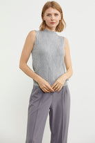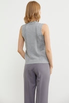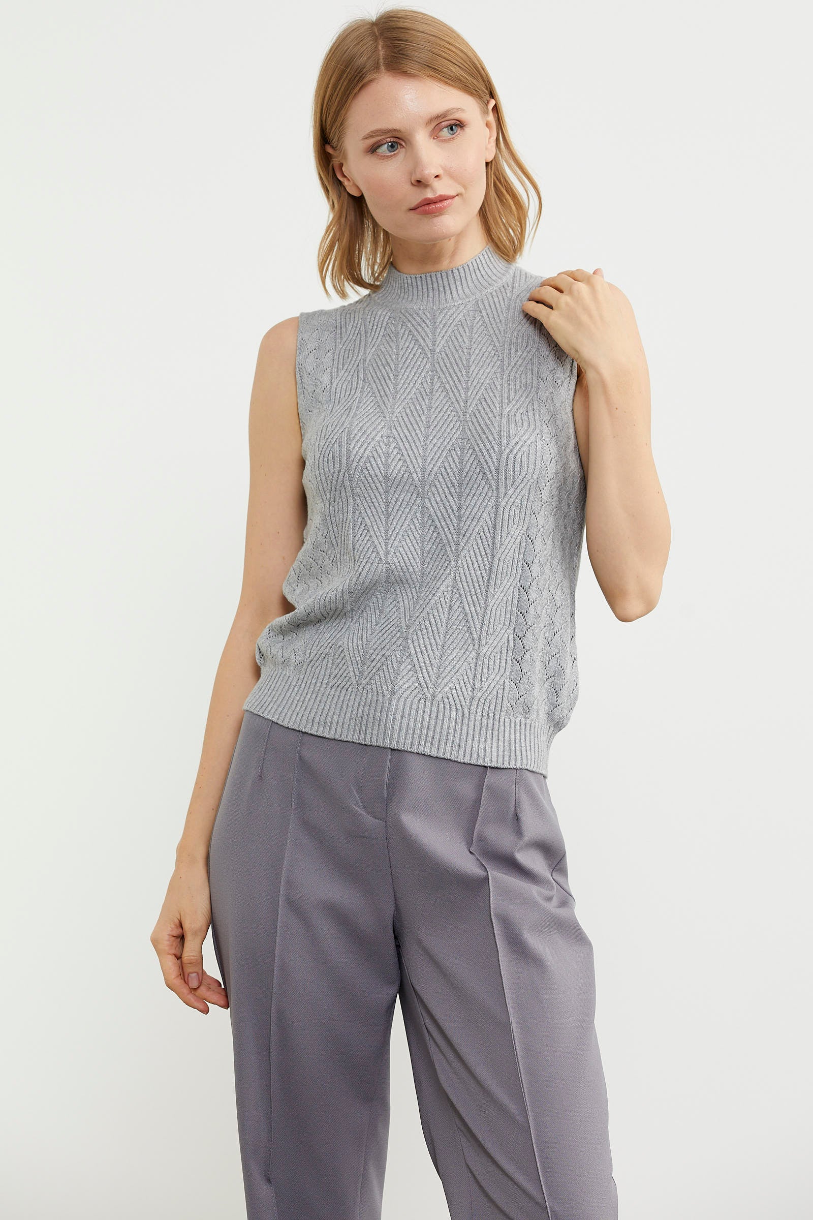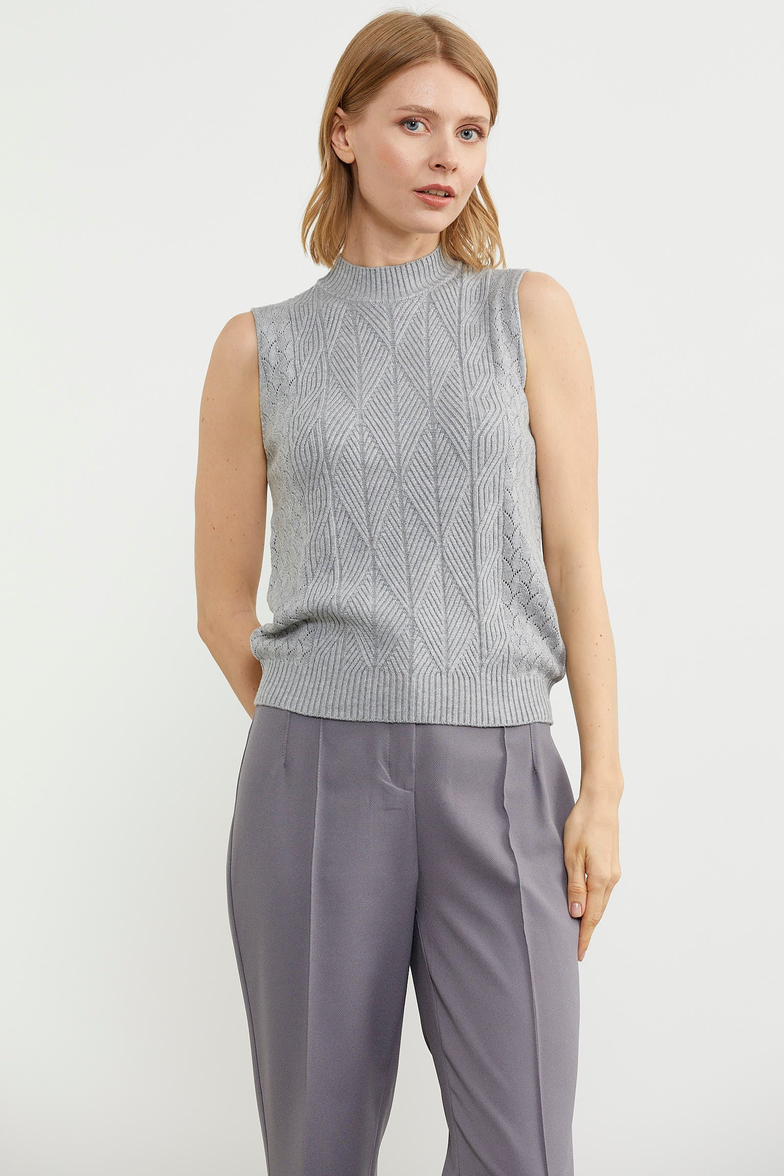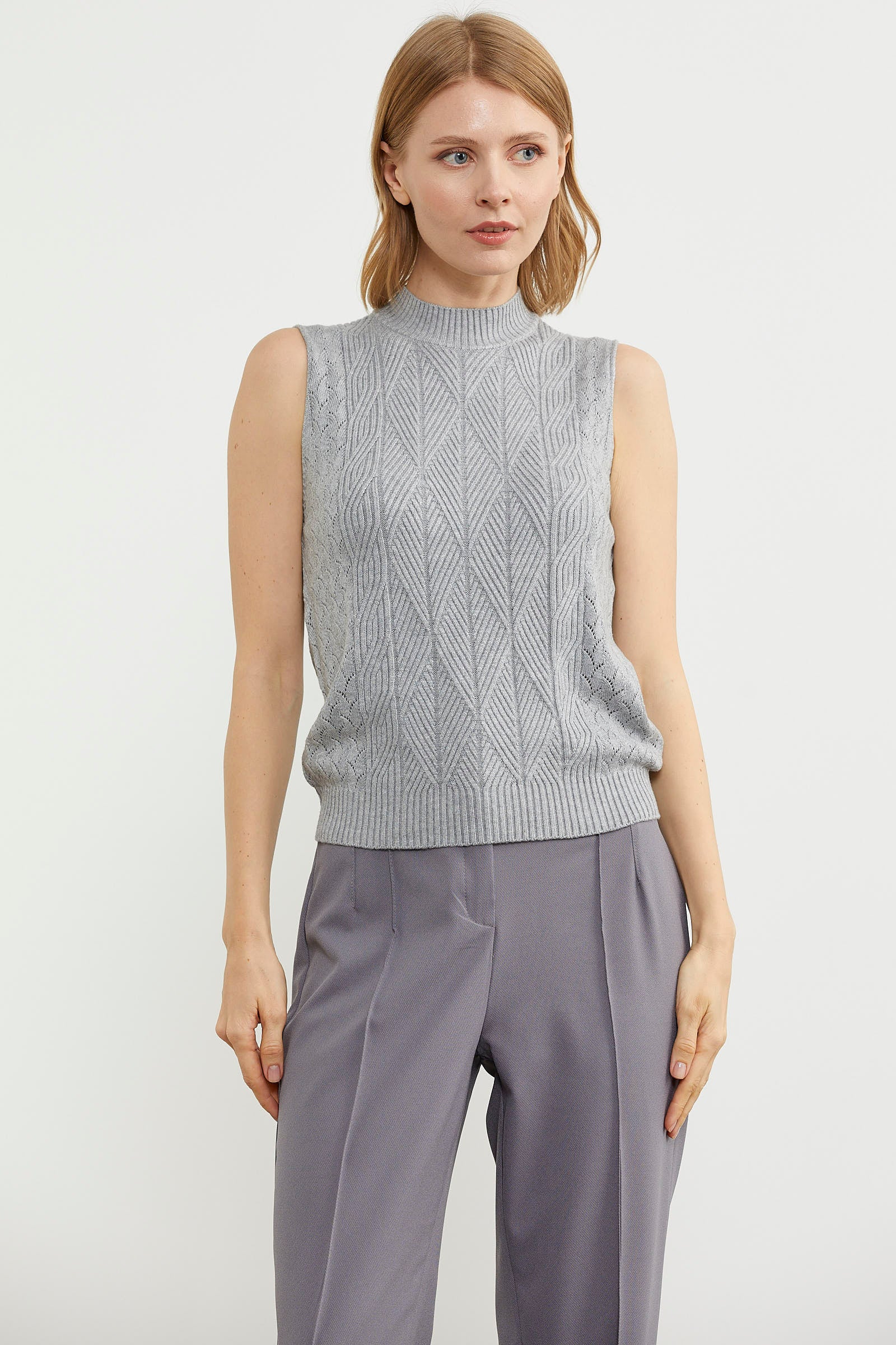 You will achieve a feminine look in your daily combinations while achieving the comfort of a sweater with the zero-sleeved elegant motif piece that gives a contemporary look with its high-neck design.
