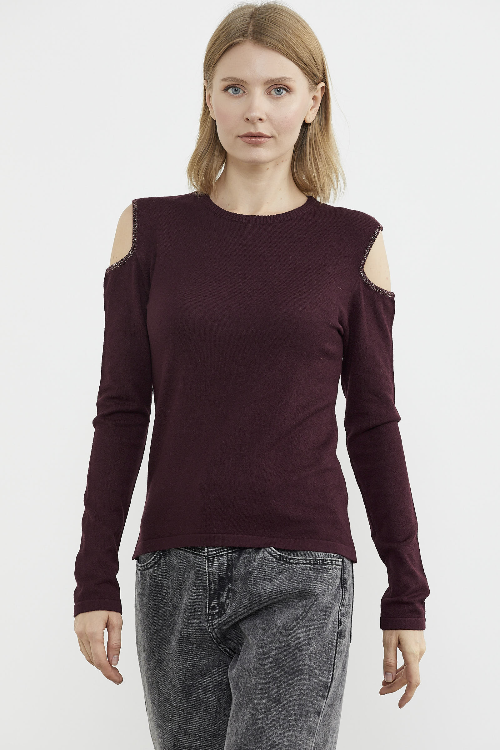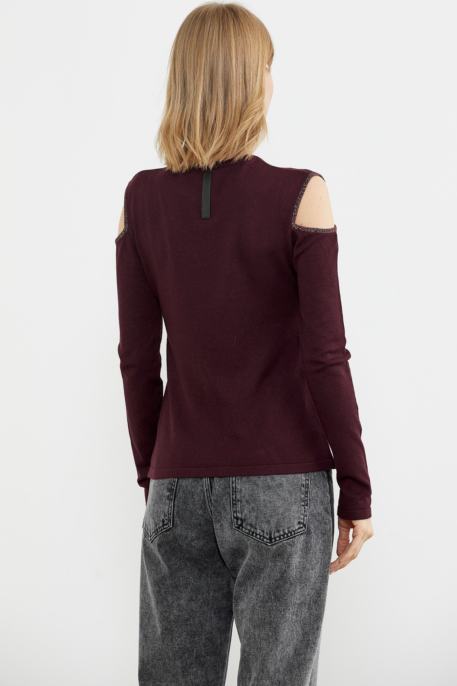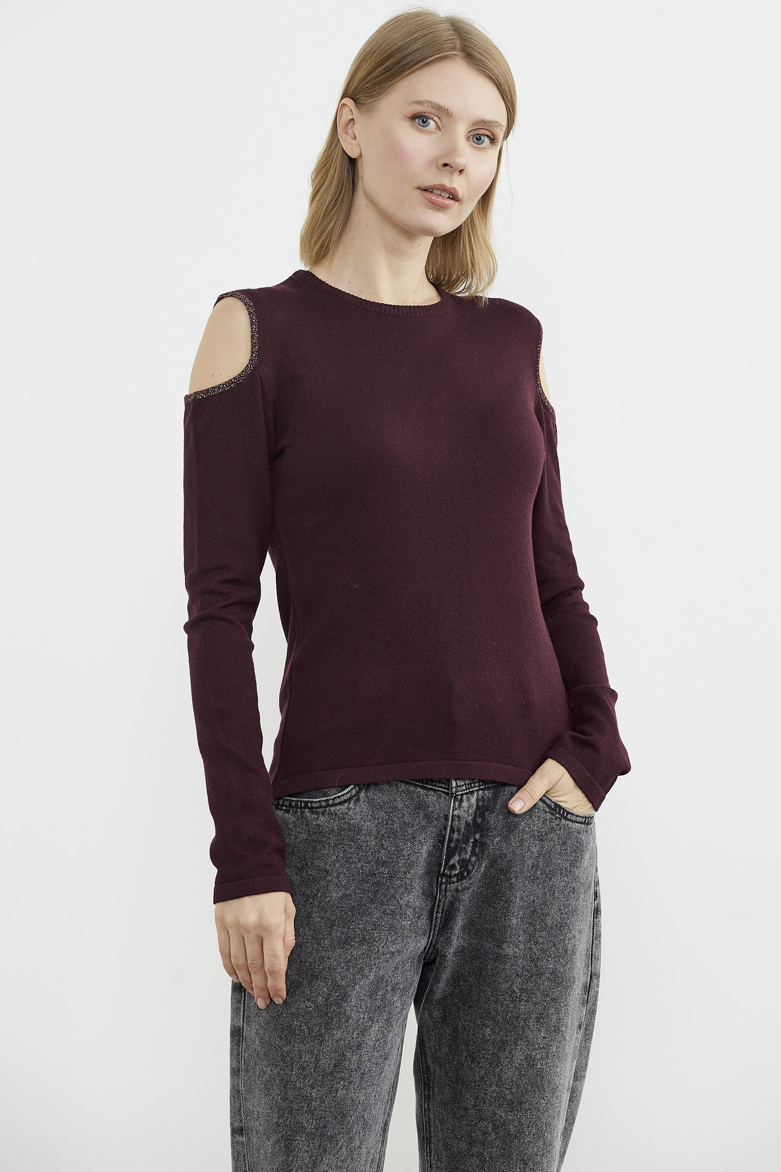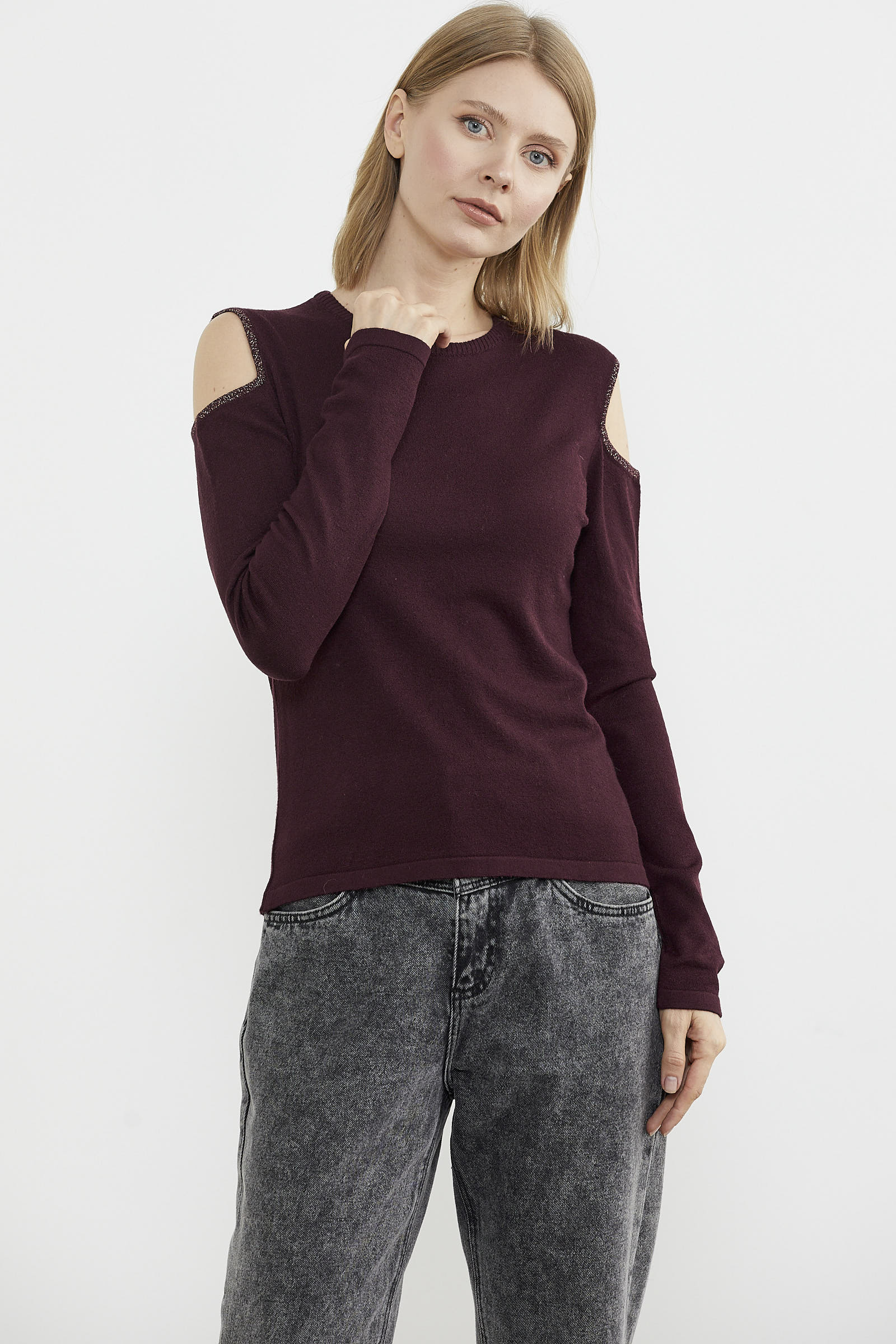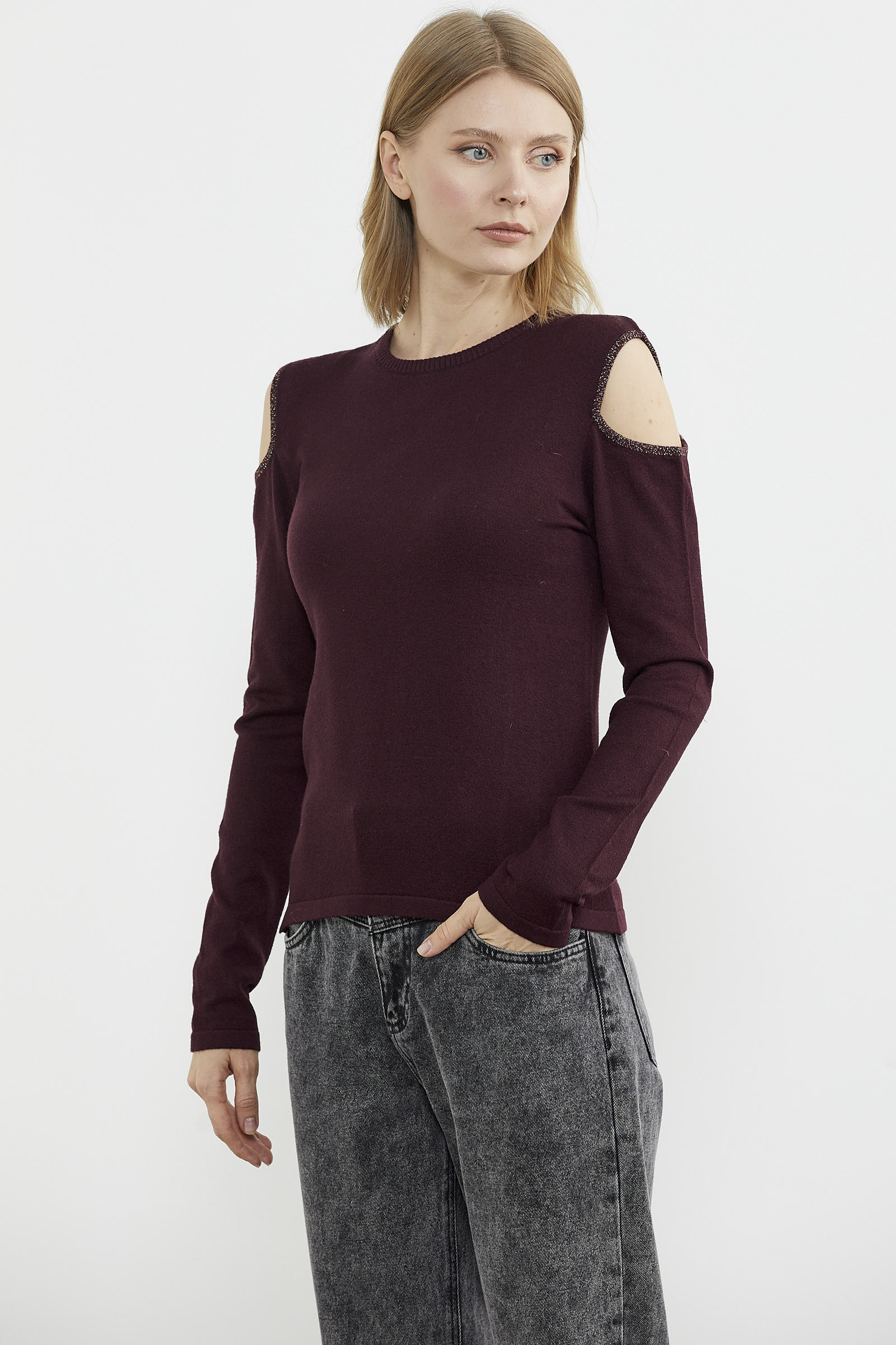 Basic Off-Shoulder Knitwear Sweater - Claret Red
