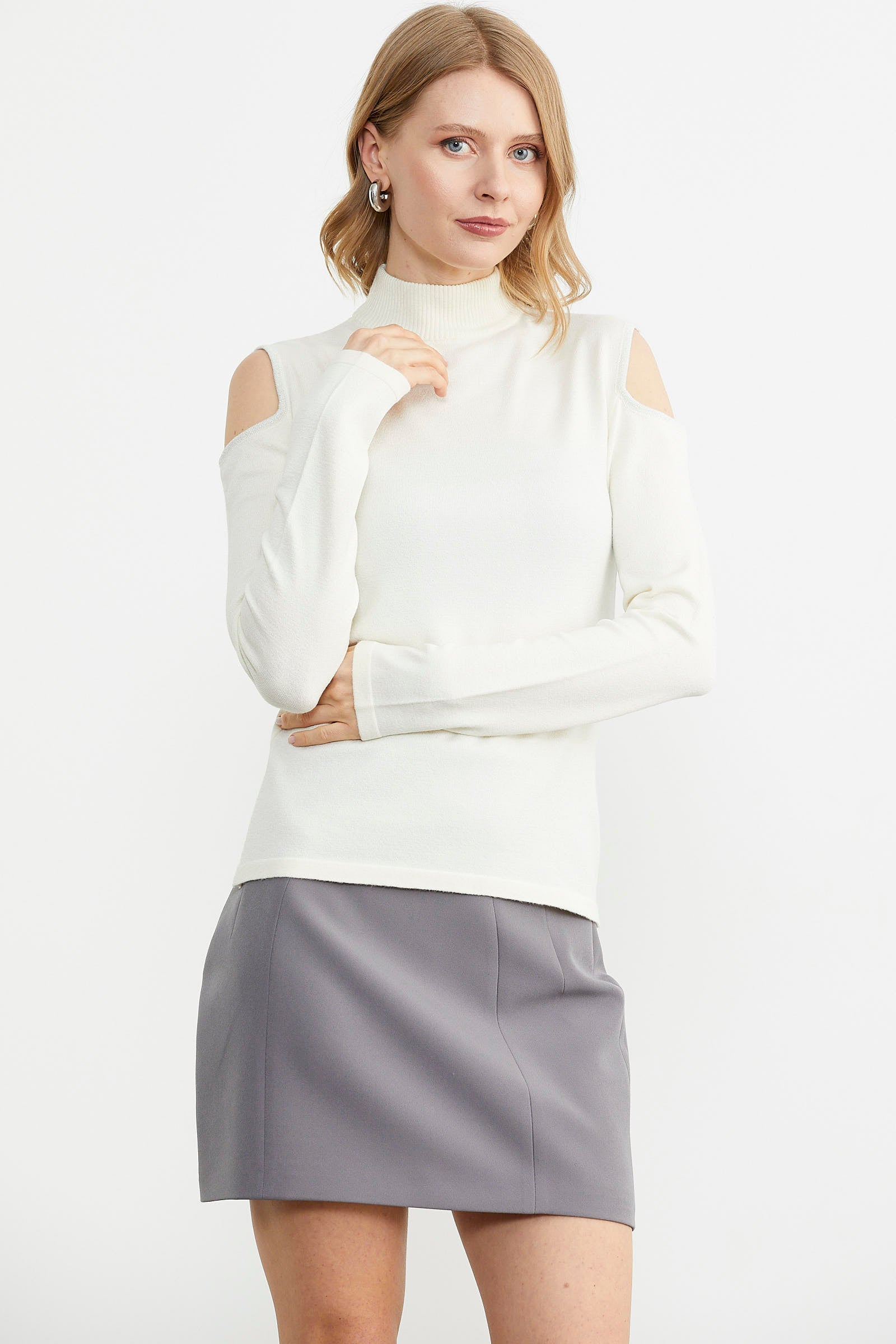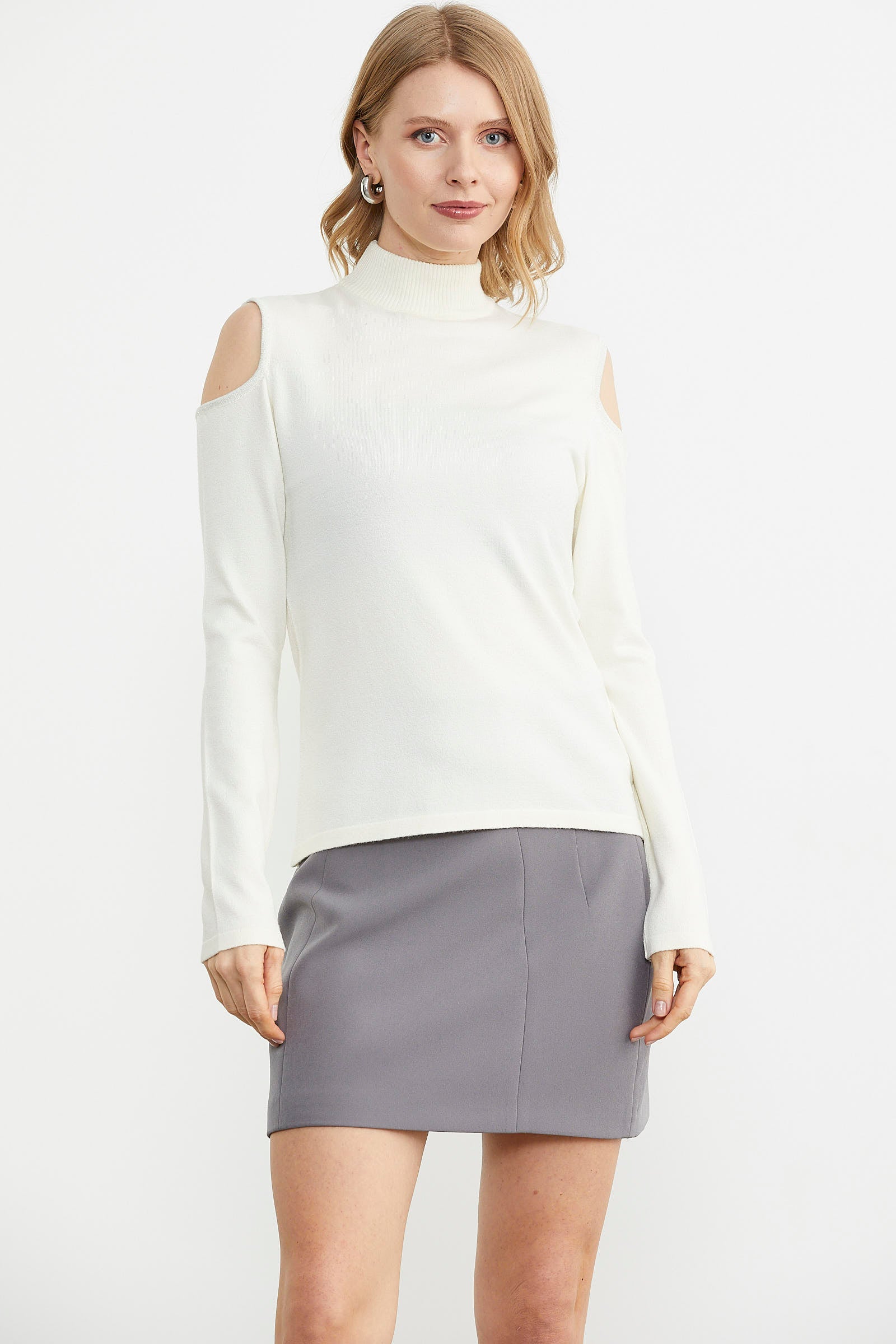 Off the Shoulder Knitted Sweater - Bone