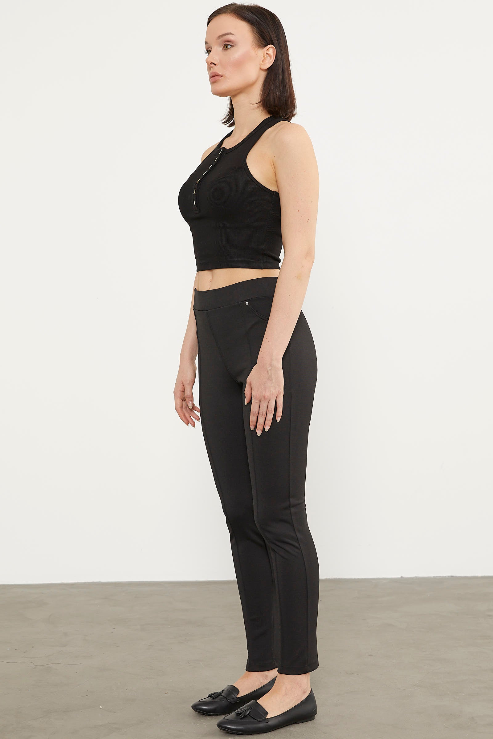 Do you want to be both comfortable and stylish? With front seam detailed, flexible, skinny leg tights, you can create modern combinations with complementary pieces while providing freedom of movement. You can choose the one that fits your style with different color alternatives.