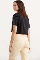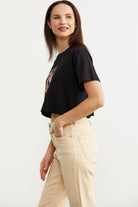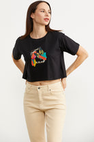 The oversize printed crop t-shirt is perfect for summer with its flowing structure and vibrant colors.