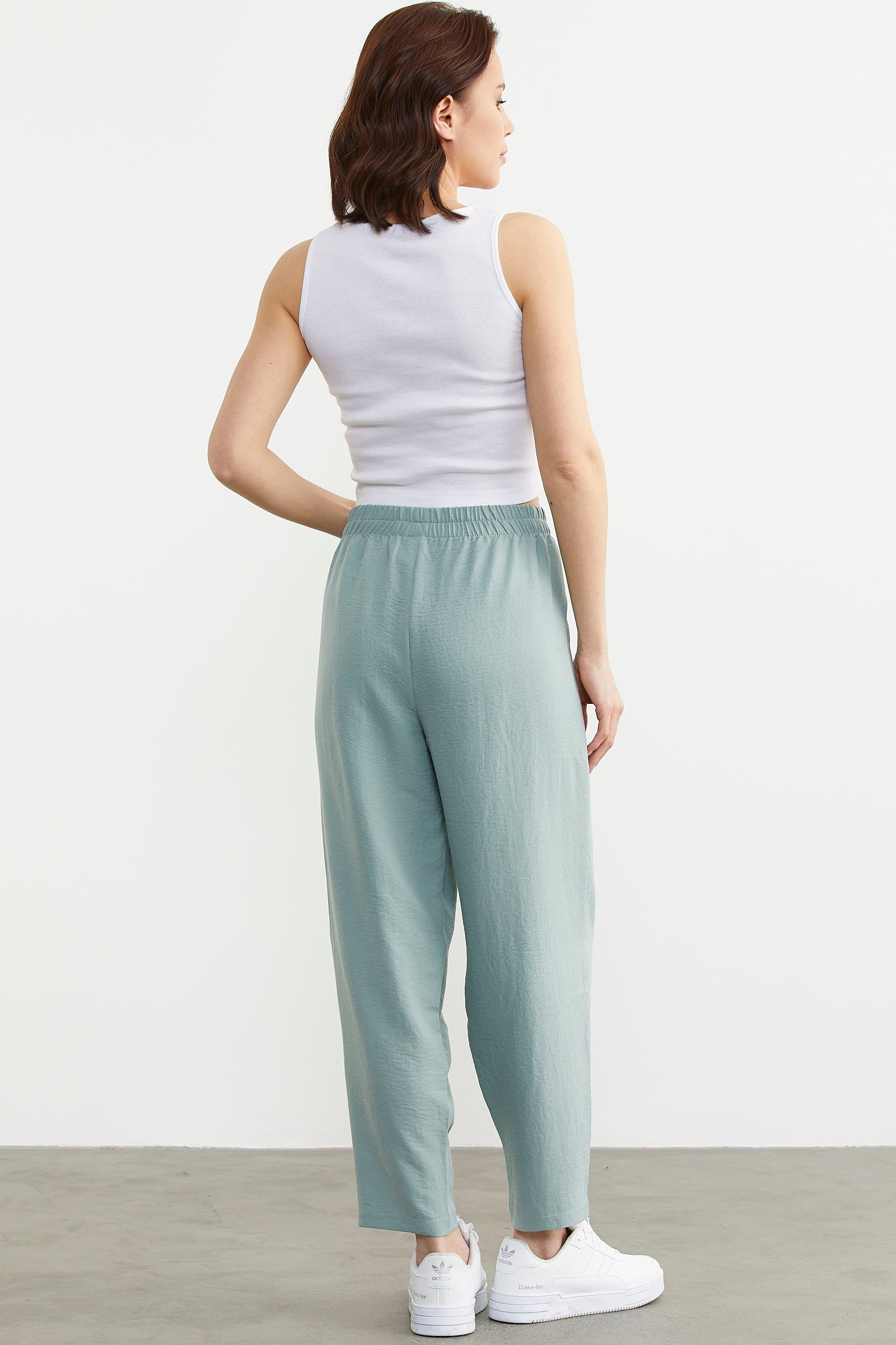 Crepe Trousers with Drawstring Detail - Aqua Green