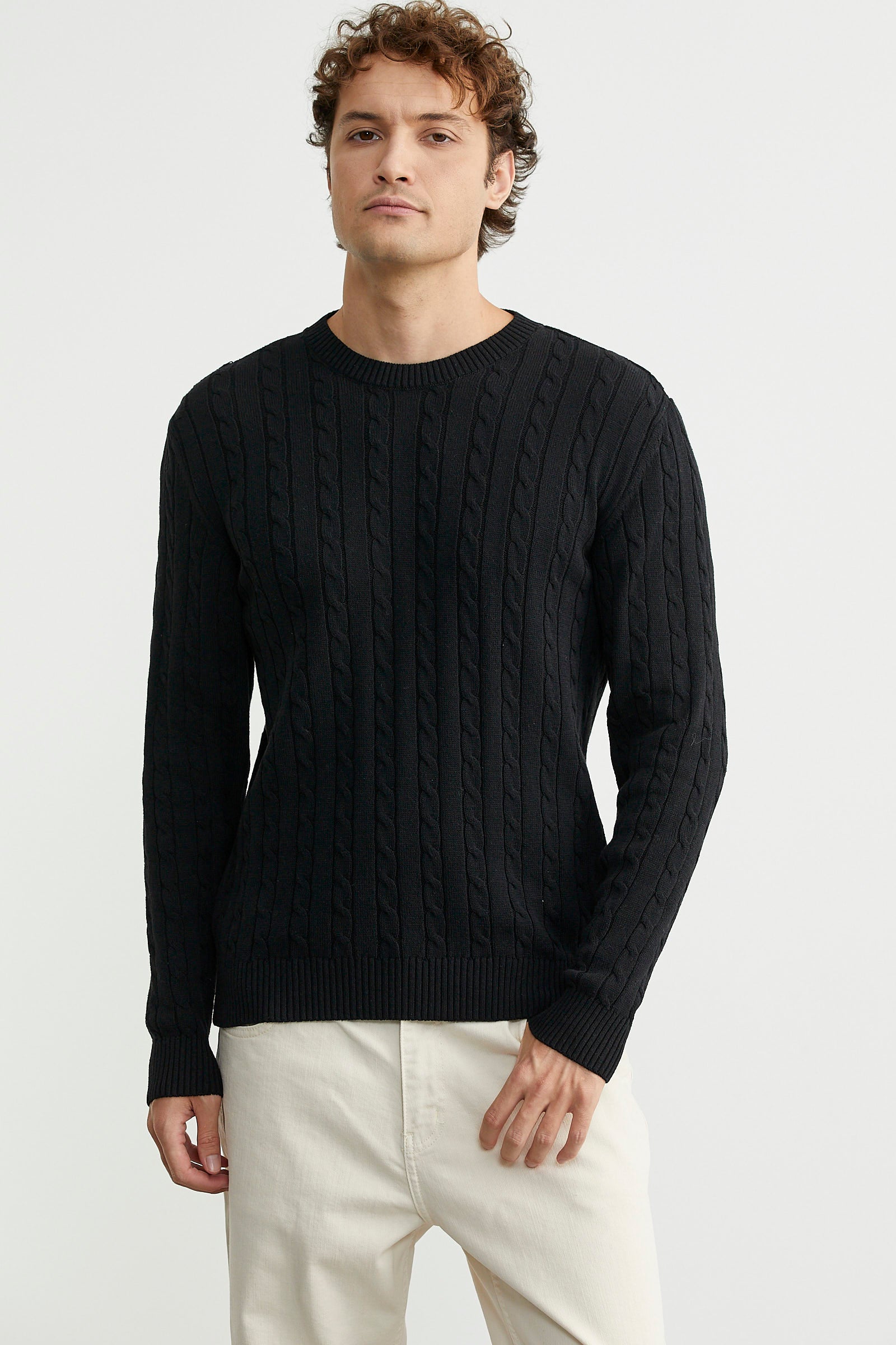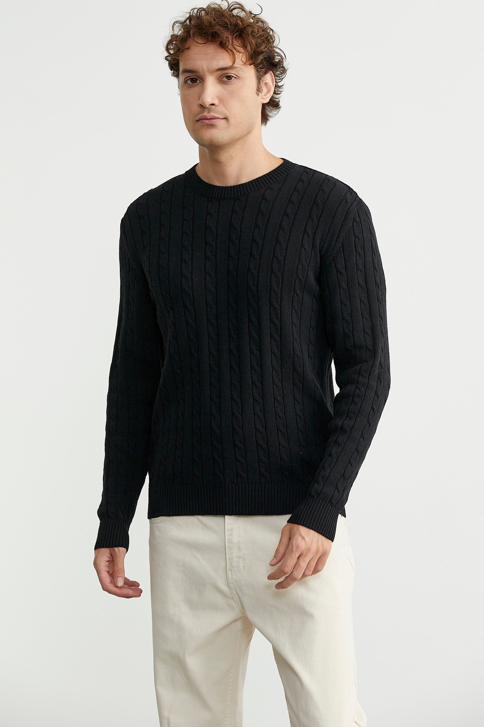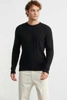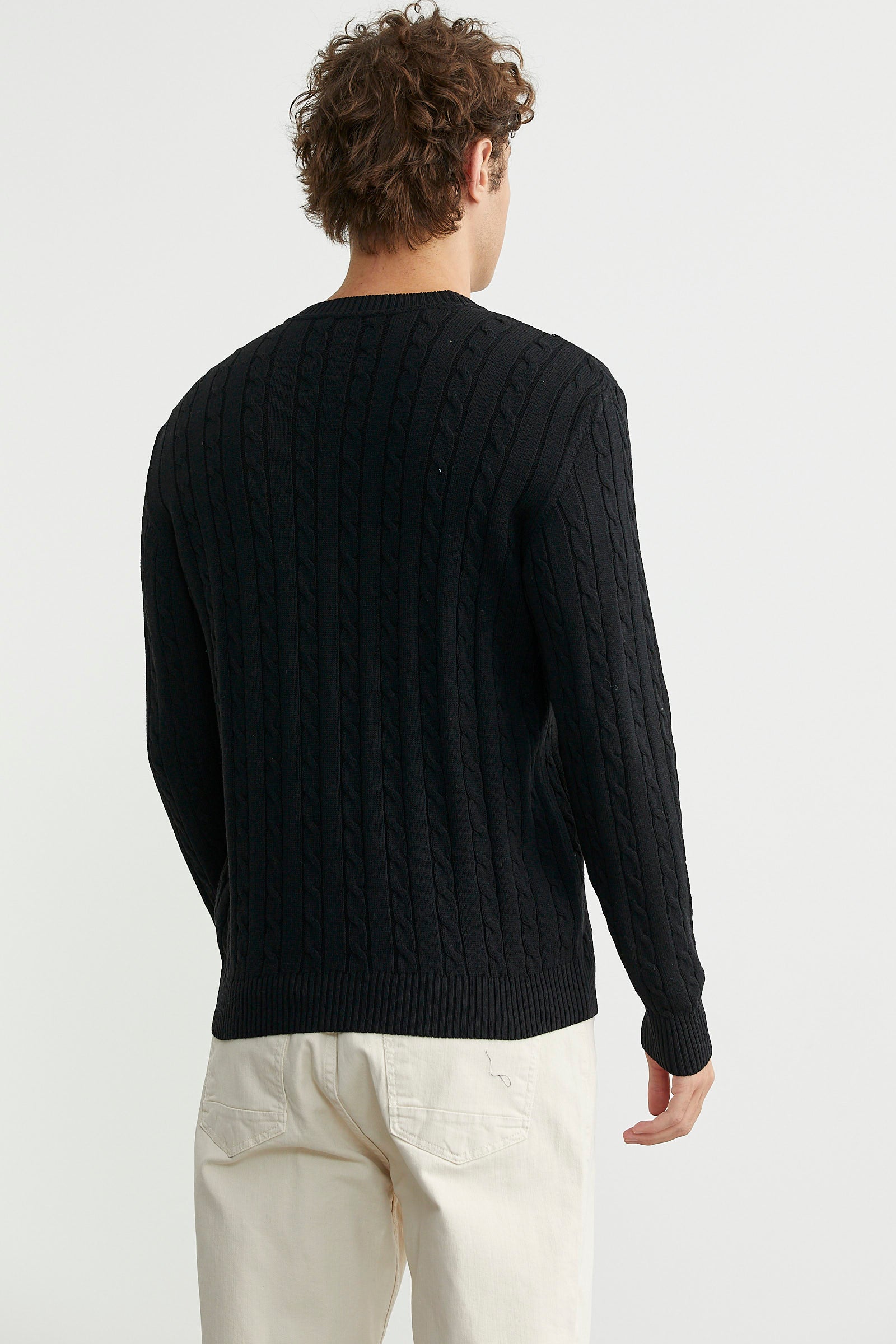 Pamuklu Saç Örgü Detaylı Triko Kazak - Siyah