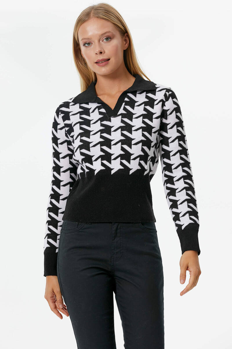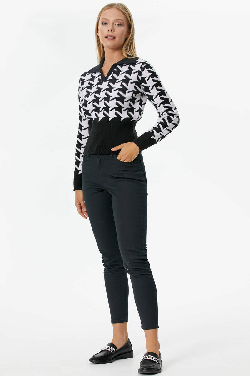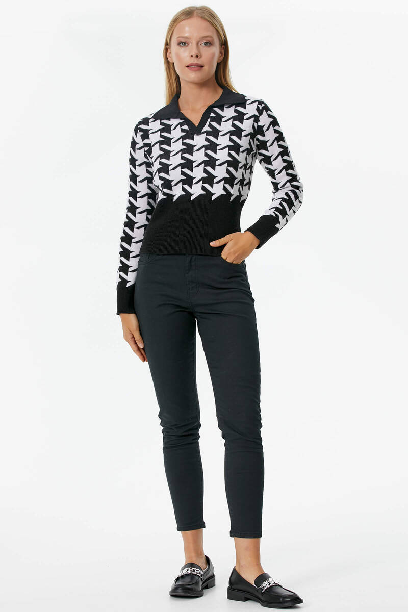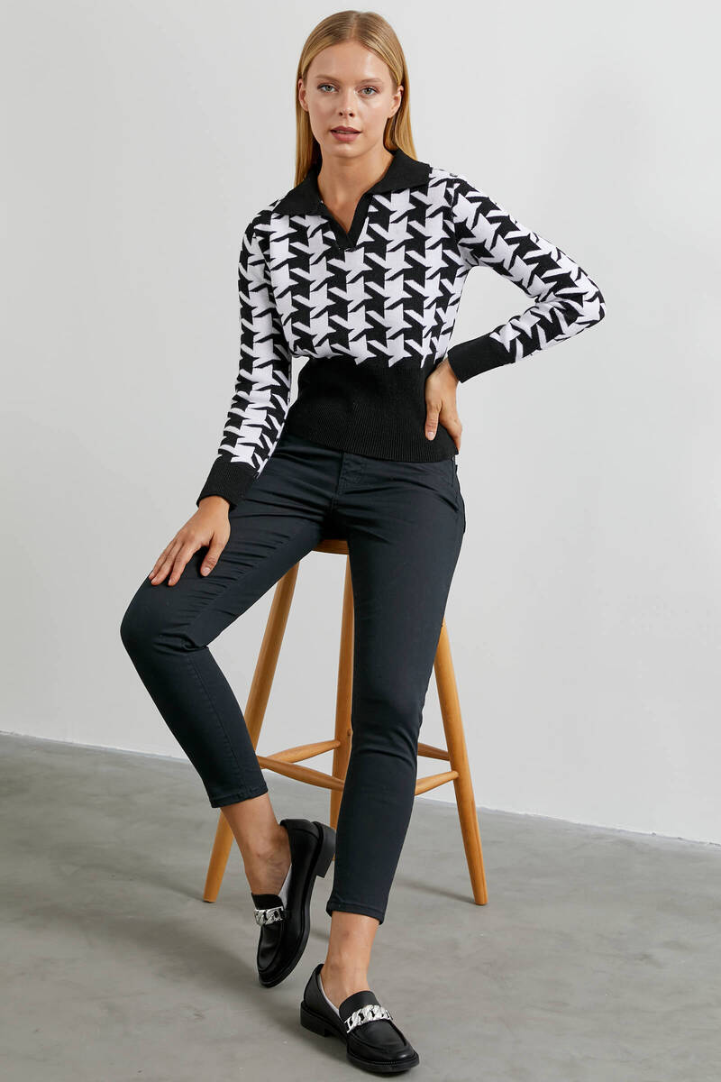 You can combine classic style crowbar-patterned knitwear with solid-colored black jeans to make them suitable for daily and comfortable use. It is very easy to get an elegant look in combinations with the crowbar pattern, which is the favorite of women.