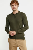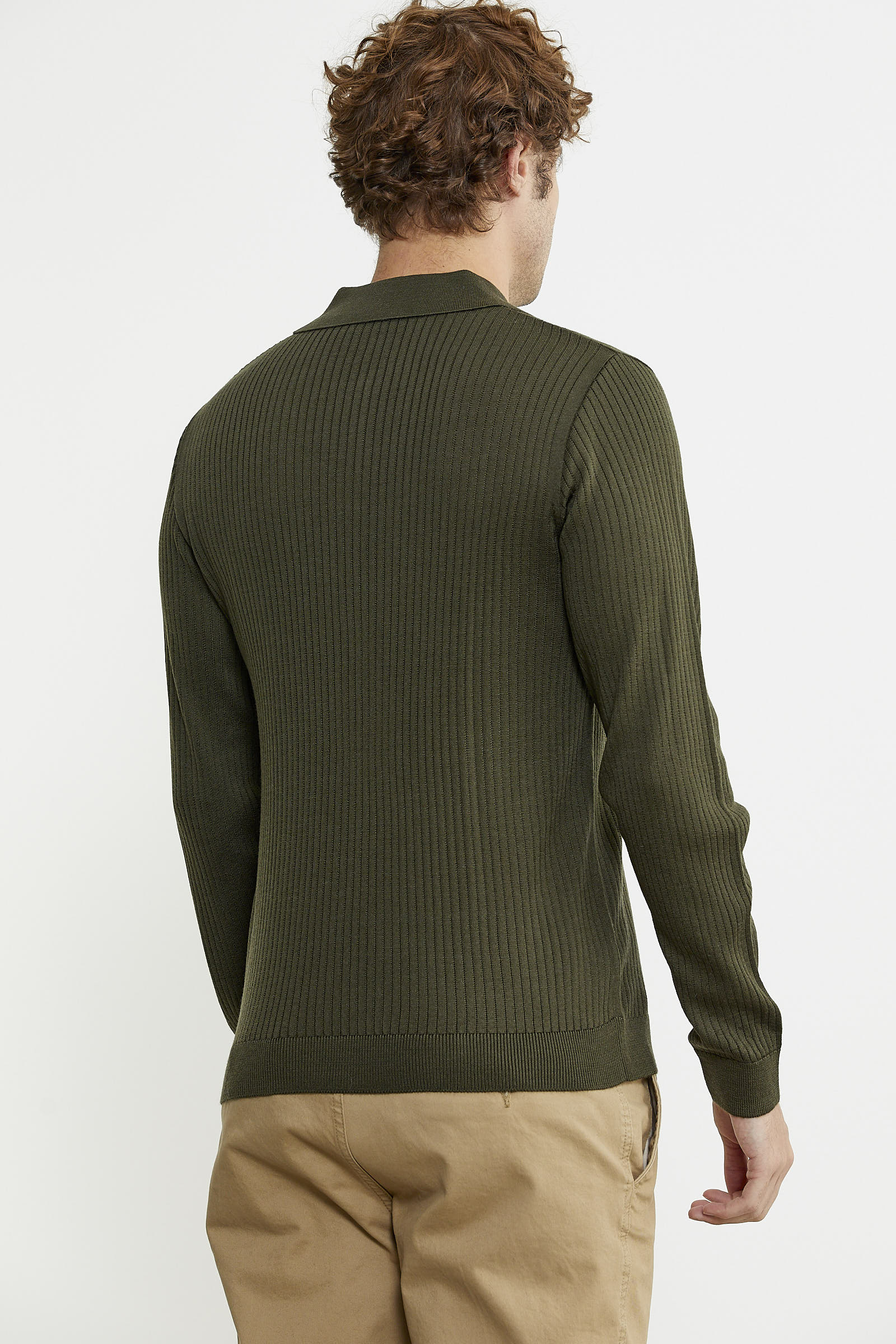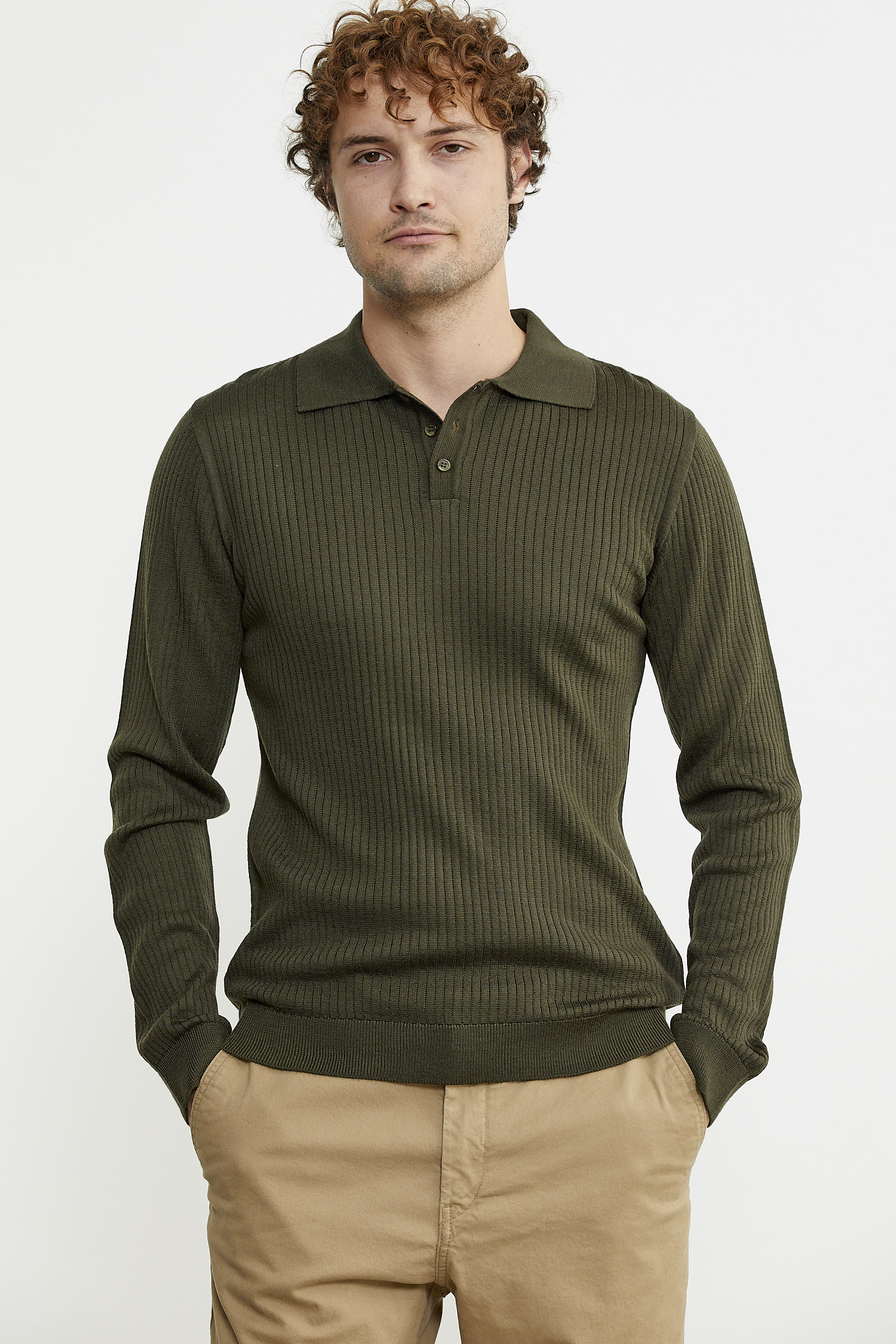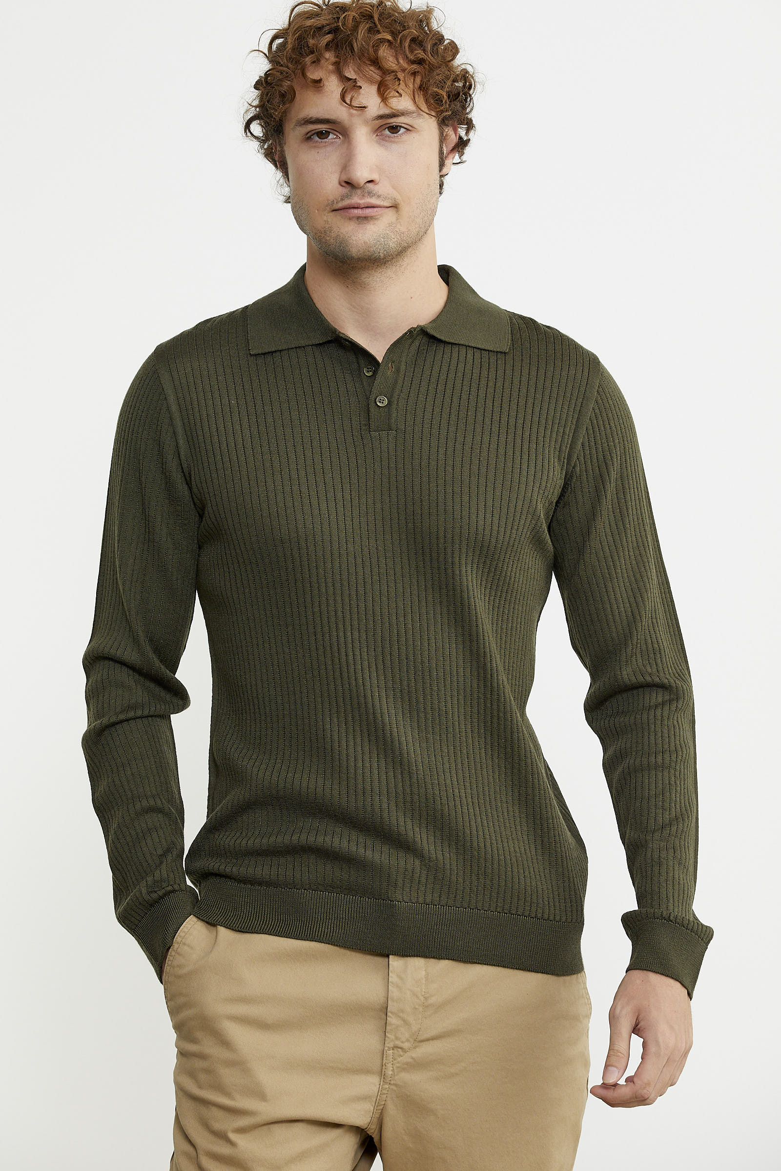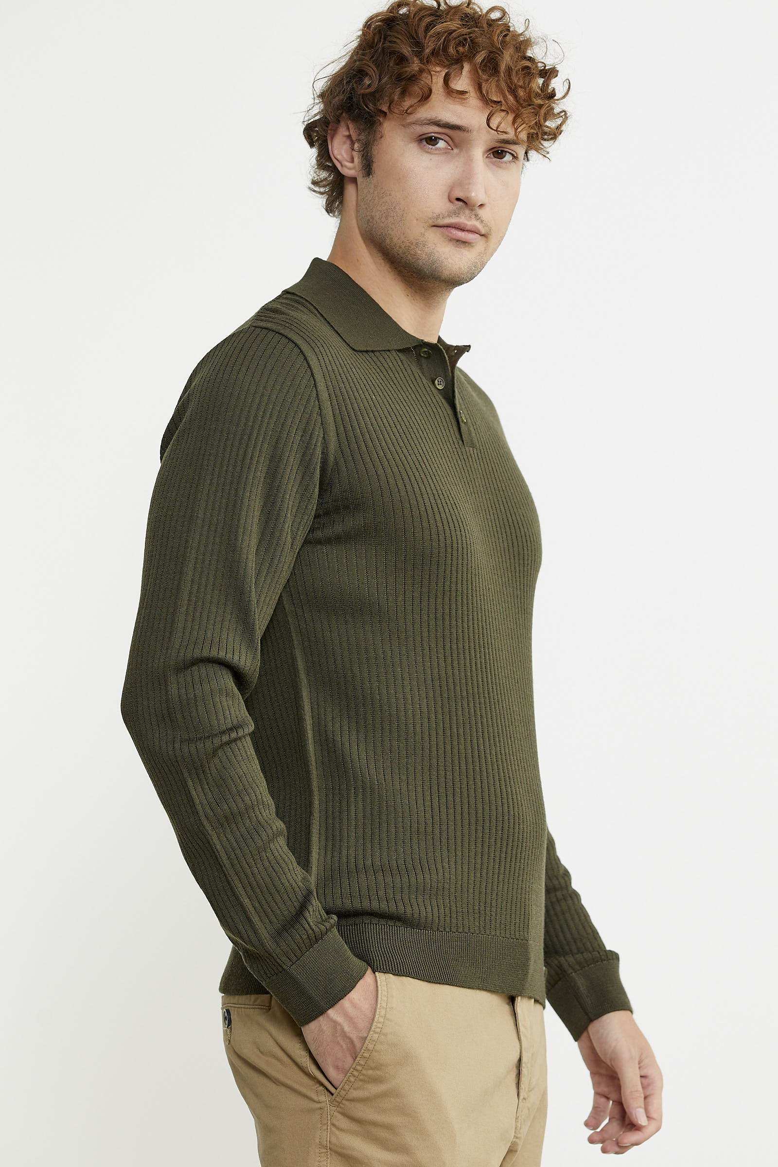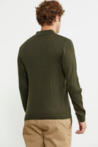Polo Neck Ribbed Knitwear Sweater - Khaki