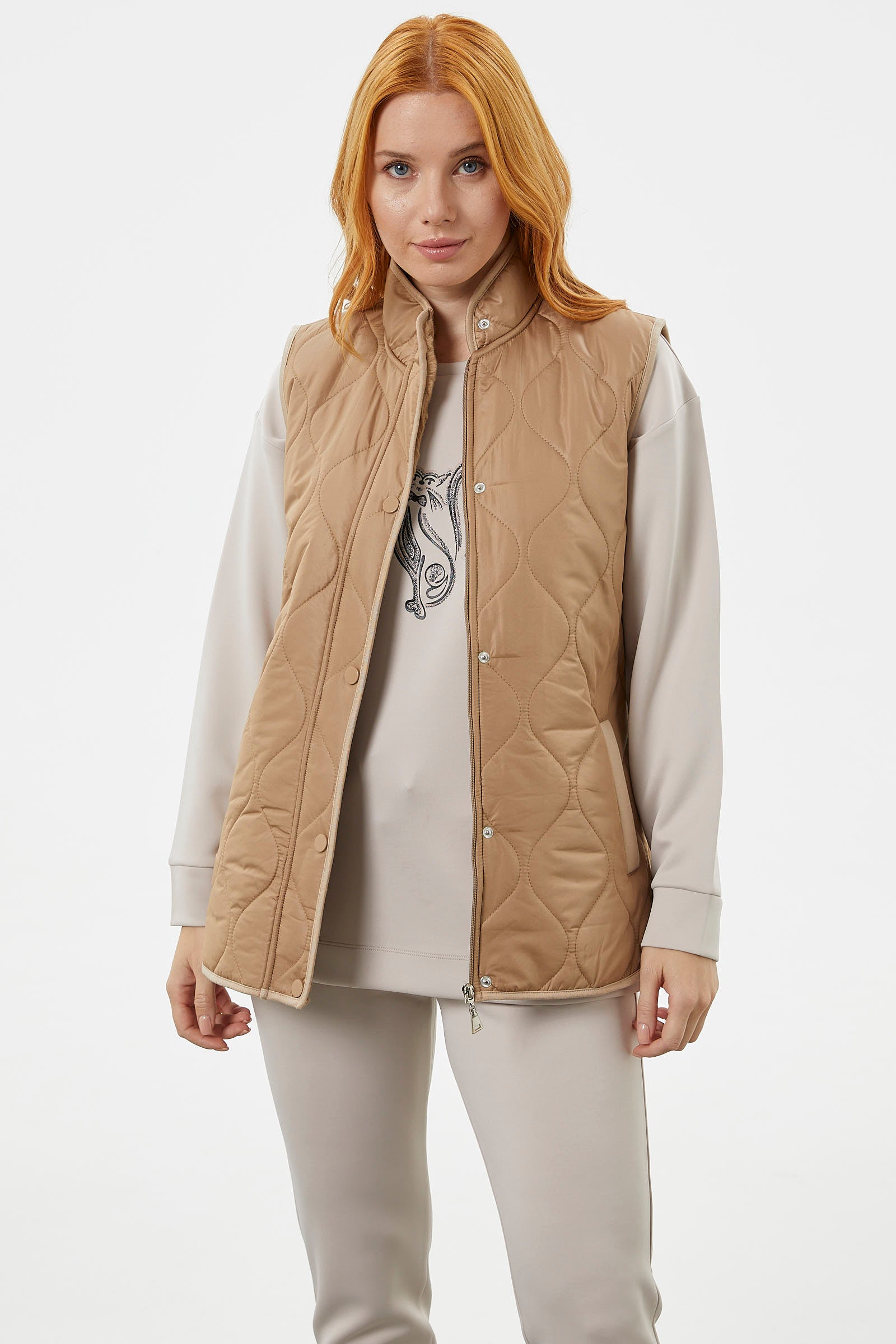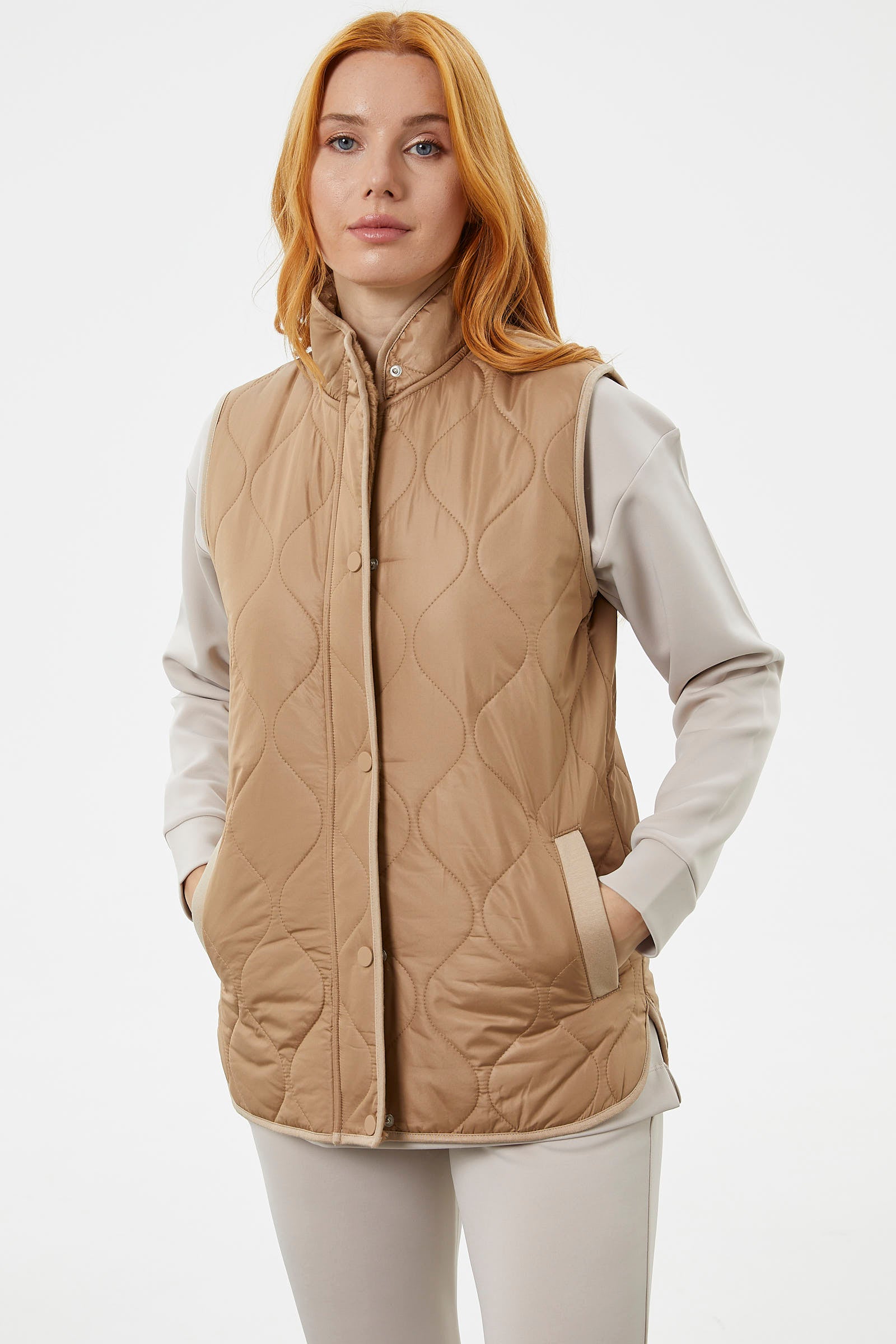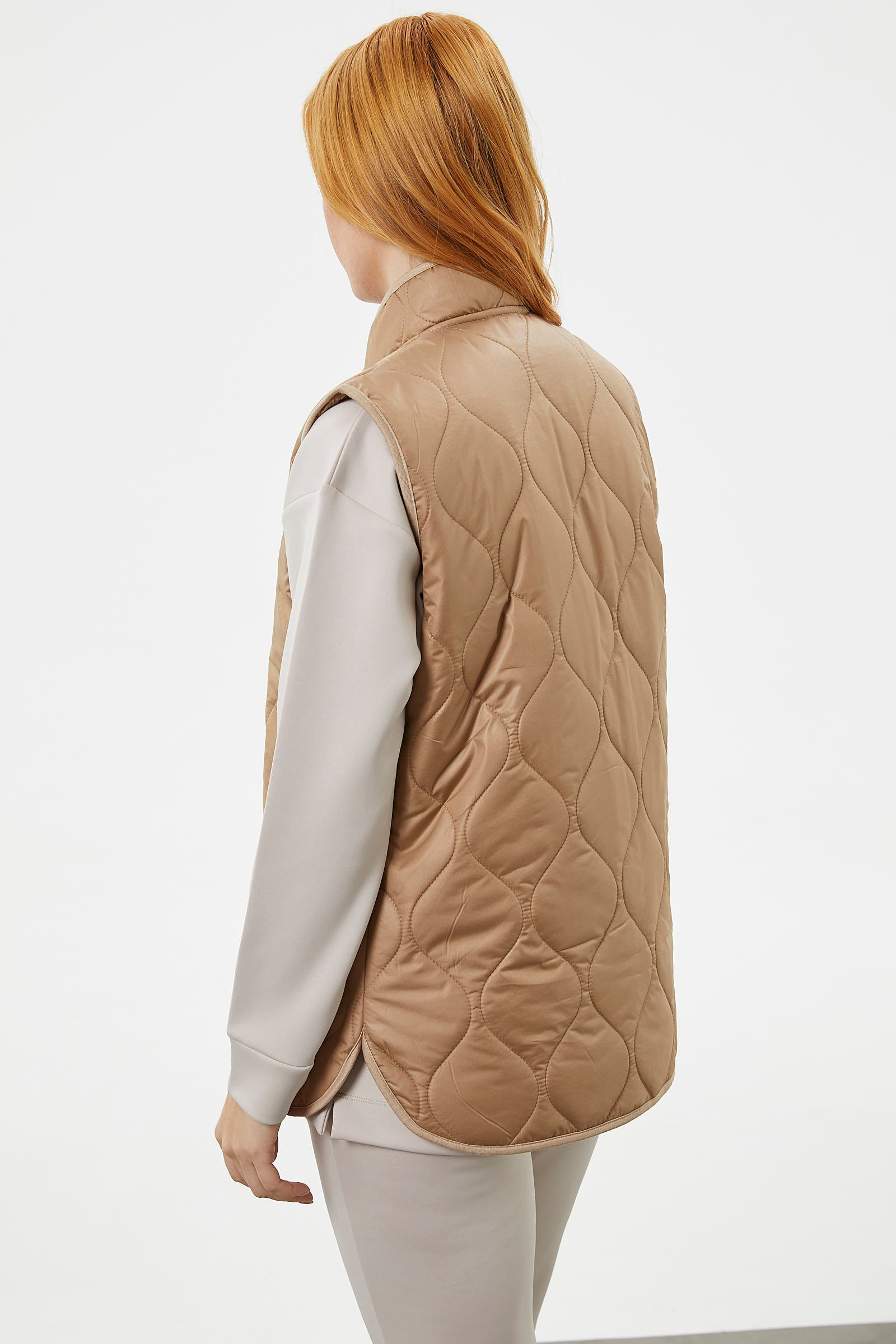 The slim-cut vest with front zipper and snaps, quilted pattern, high collar, two side pockets allows you to find the one that fits your combinations with many different color options. A must-have for your wardrobe as it will provide convenience and you will use it frequently.