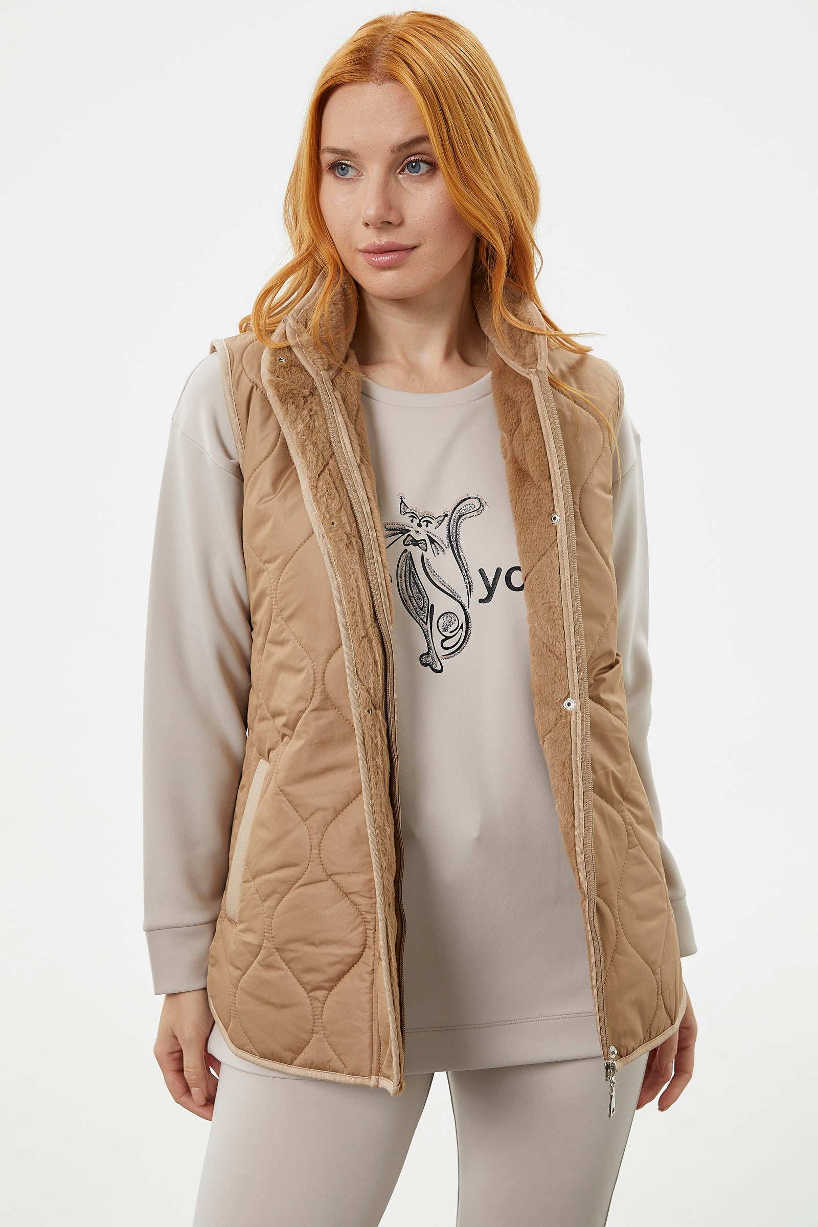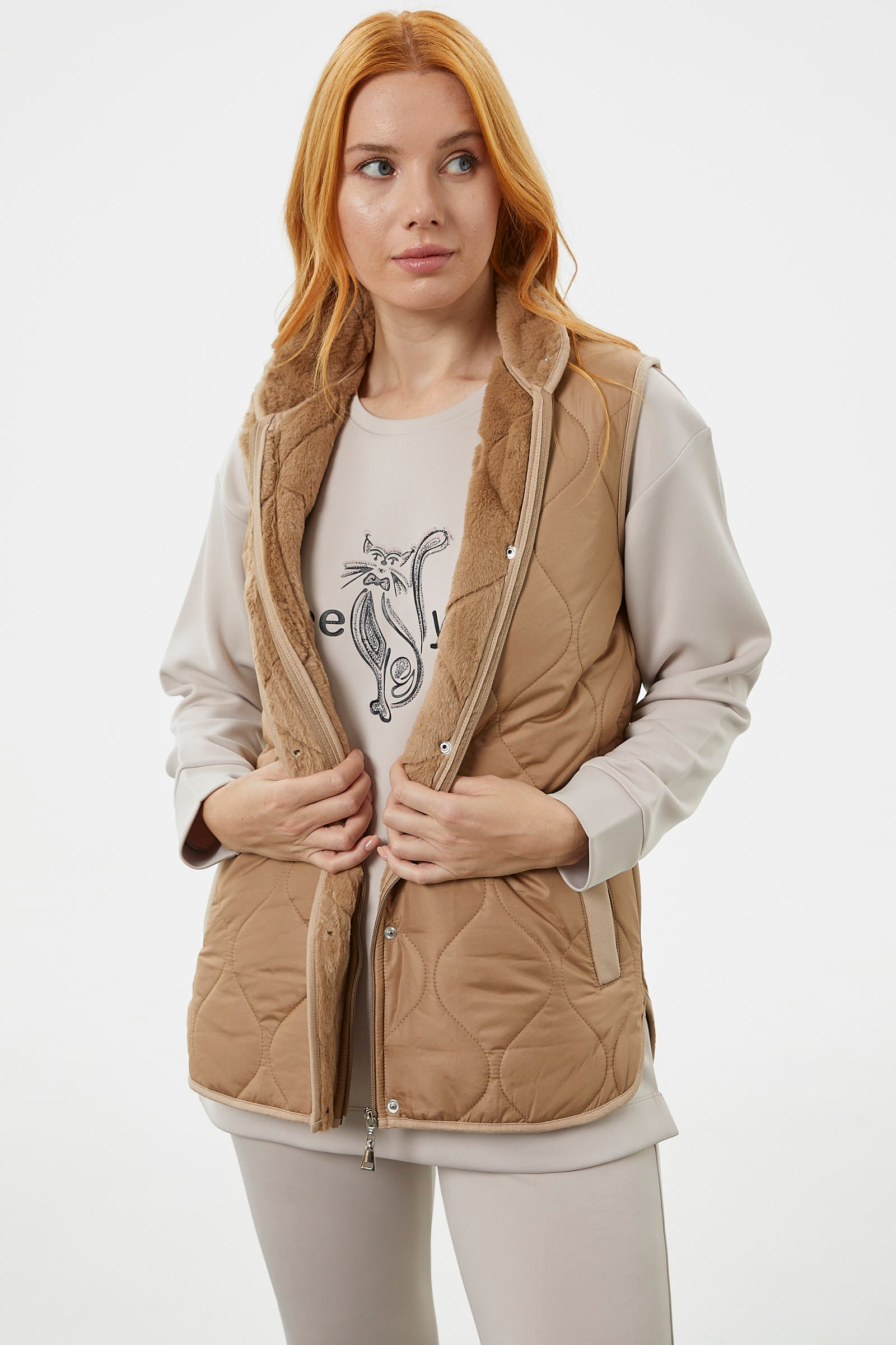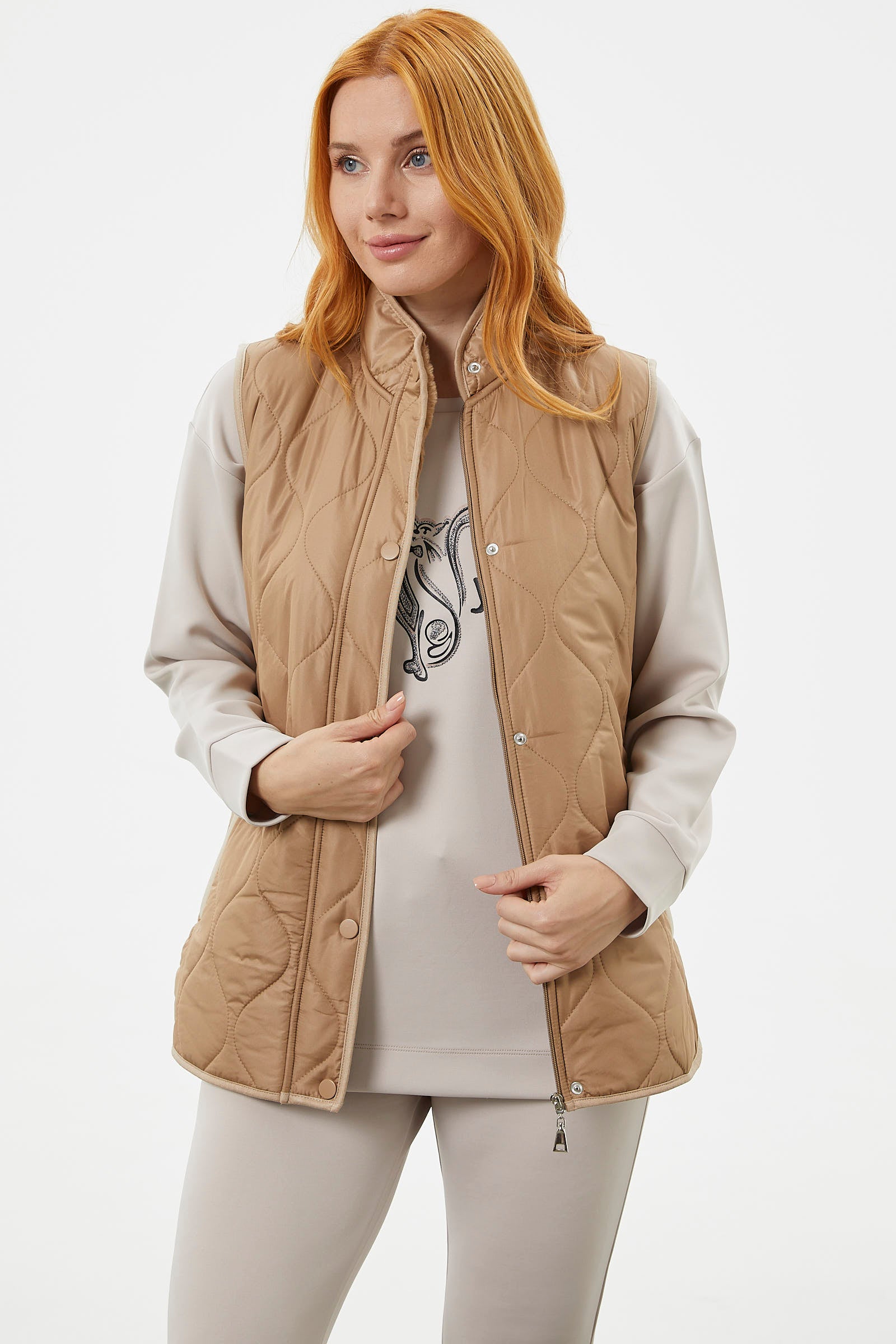 The slim-cut vest with front zipper and snaps, quilted pattern, high collar, two side pockets allows you to find the one that fits your combinations with many different color options. A must-have for your wardrobe as it will provide convenience and you will use it frequently.