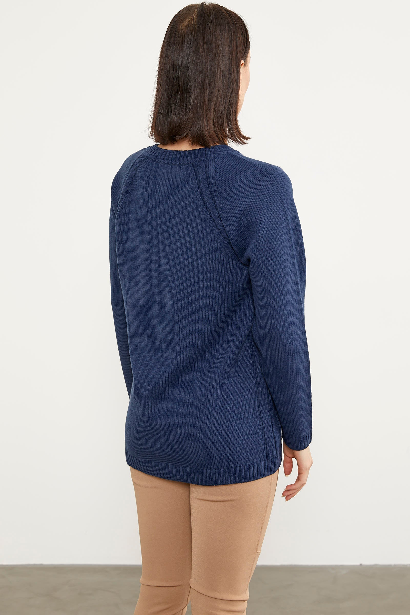 Easily combinable, crew neck, shoulder detail, tunic knit sweater; offers you comfort and flexibility thanks to its fabric content. You can take a look at other color options if you wish.