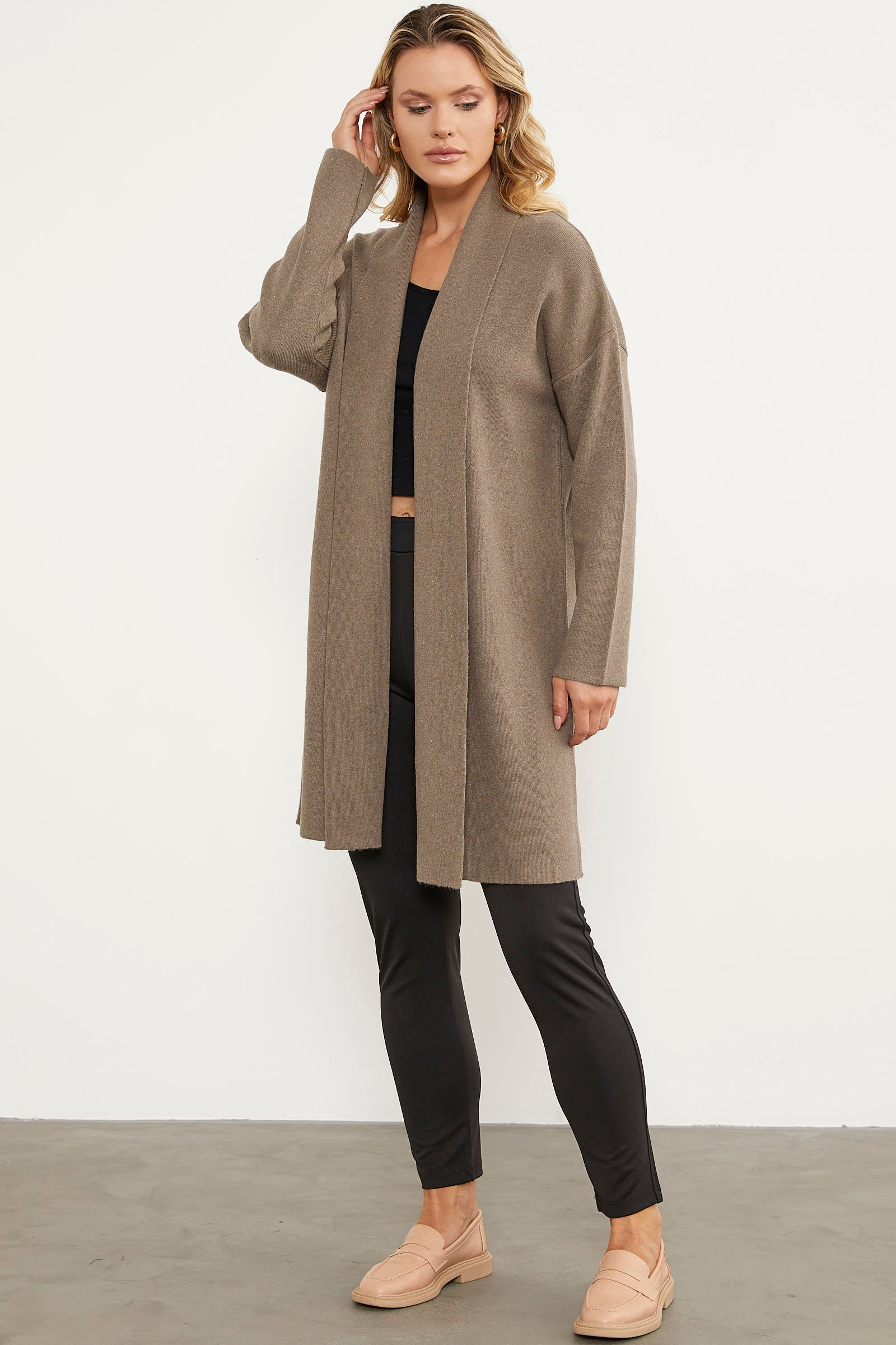 Plus Size Shawl Collar Wool Knitted Cardigan - Milky Coffee