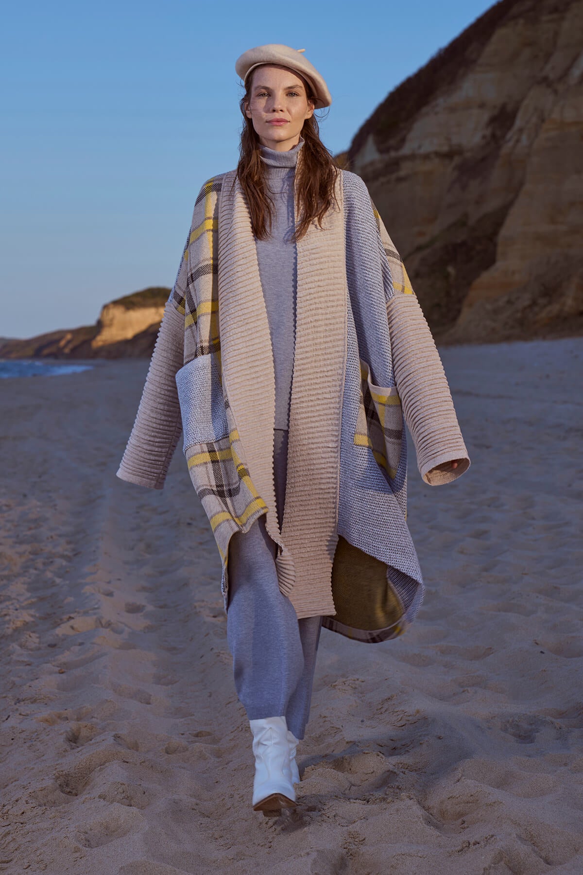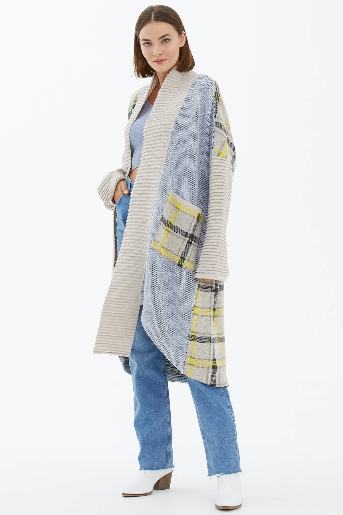Shawl Collar Belted Long Knitwear Cardigan - Medium Gray