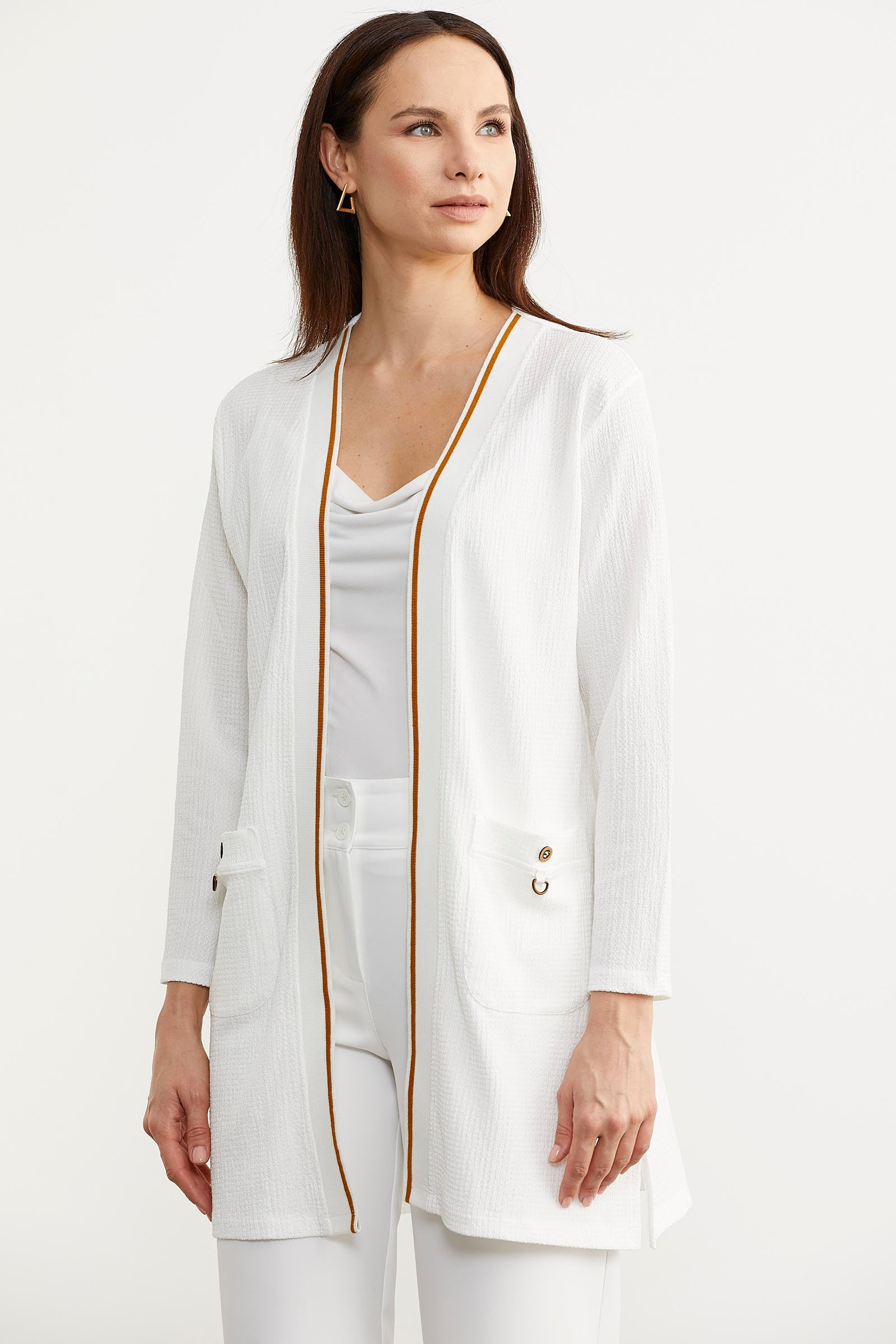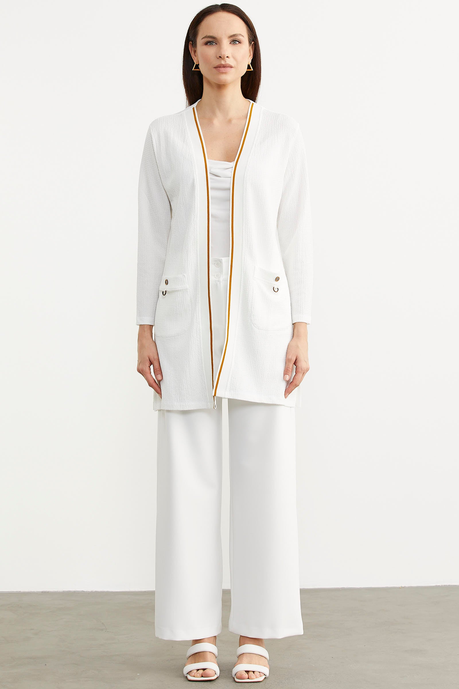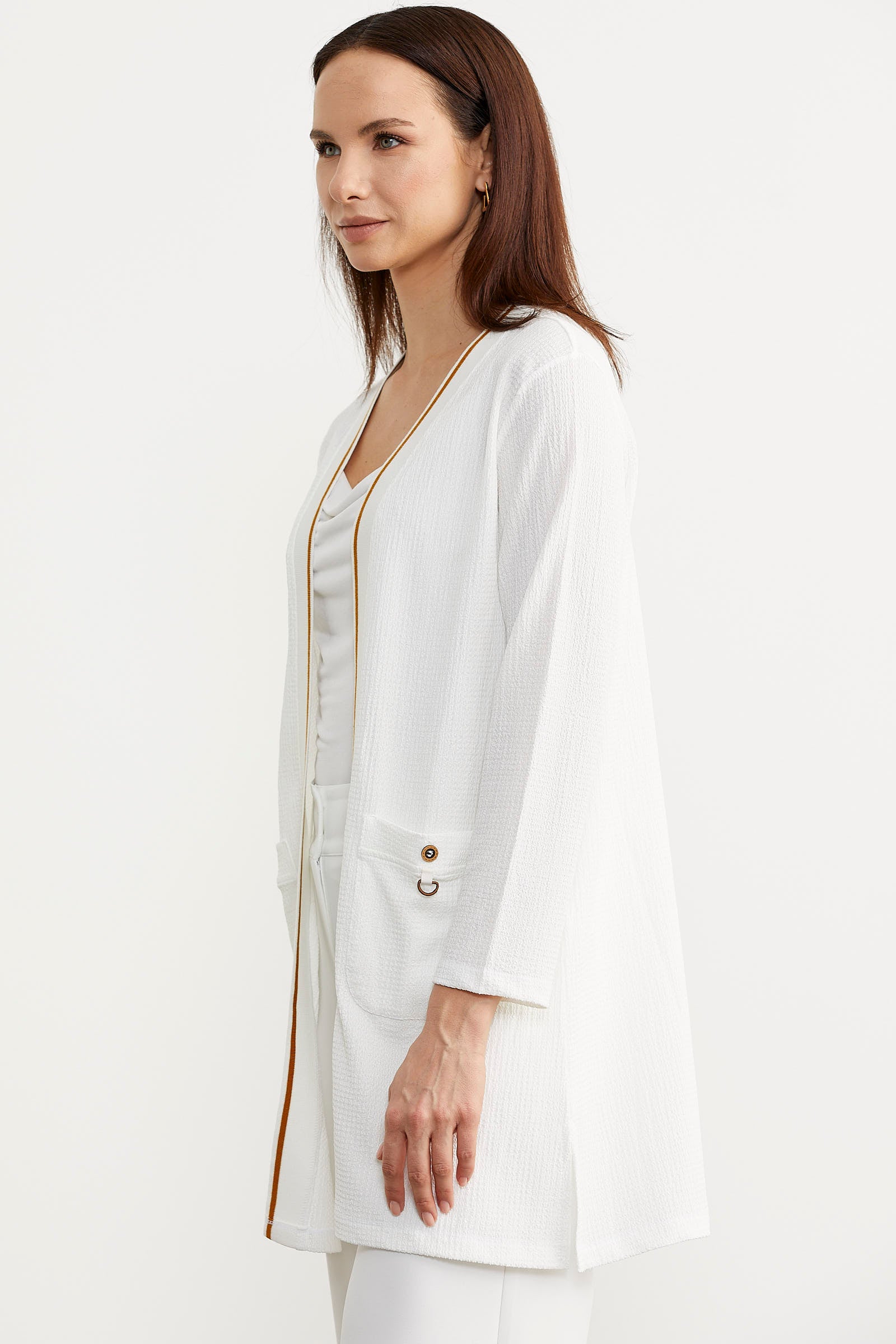 Knitted Striped Plus Size Crepe Jacket - Ecru