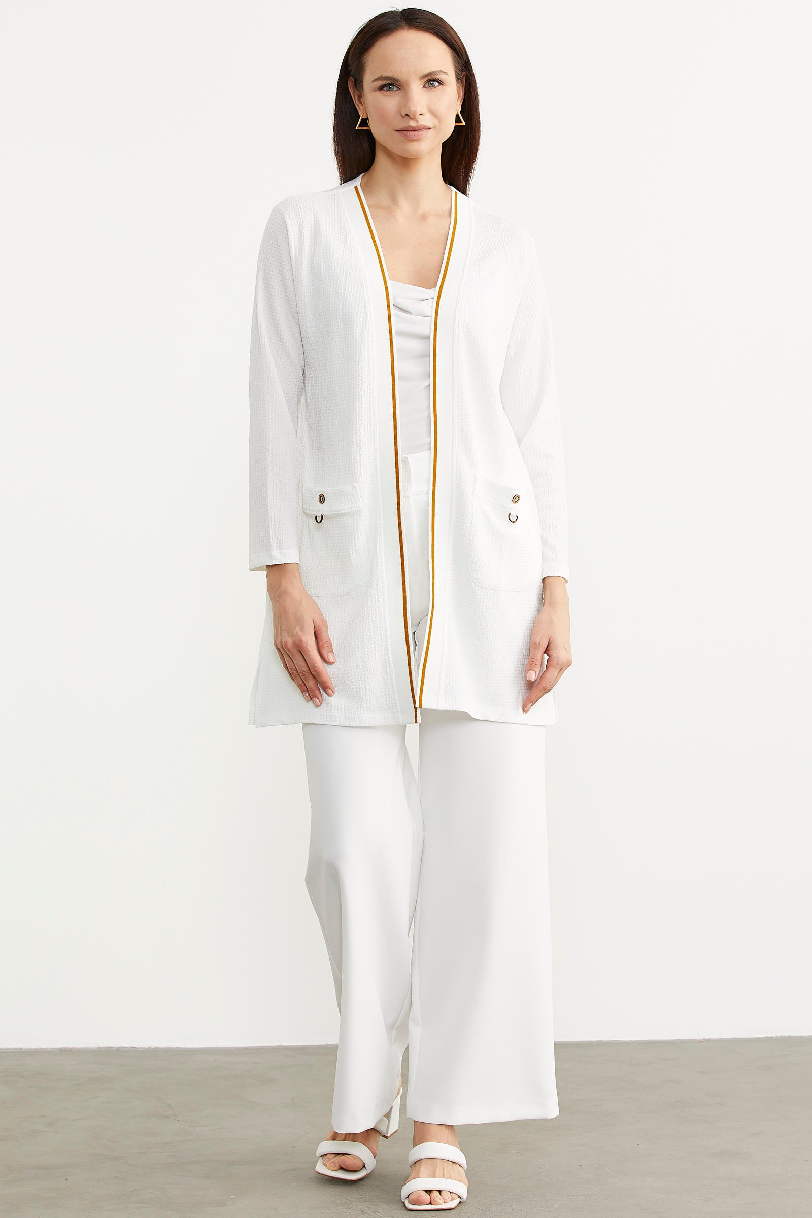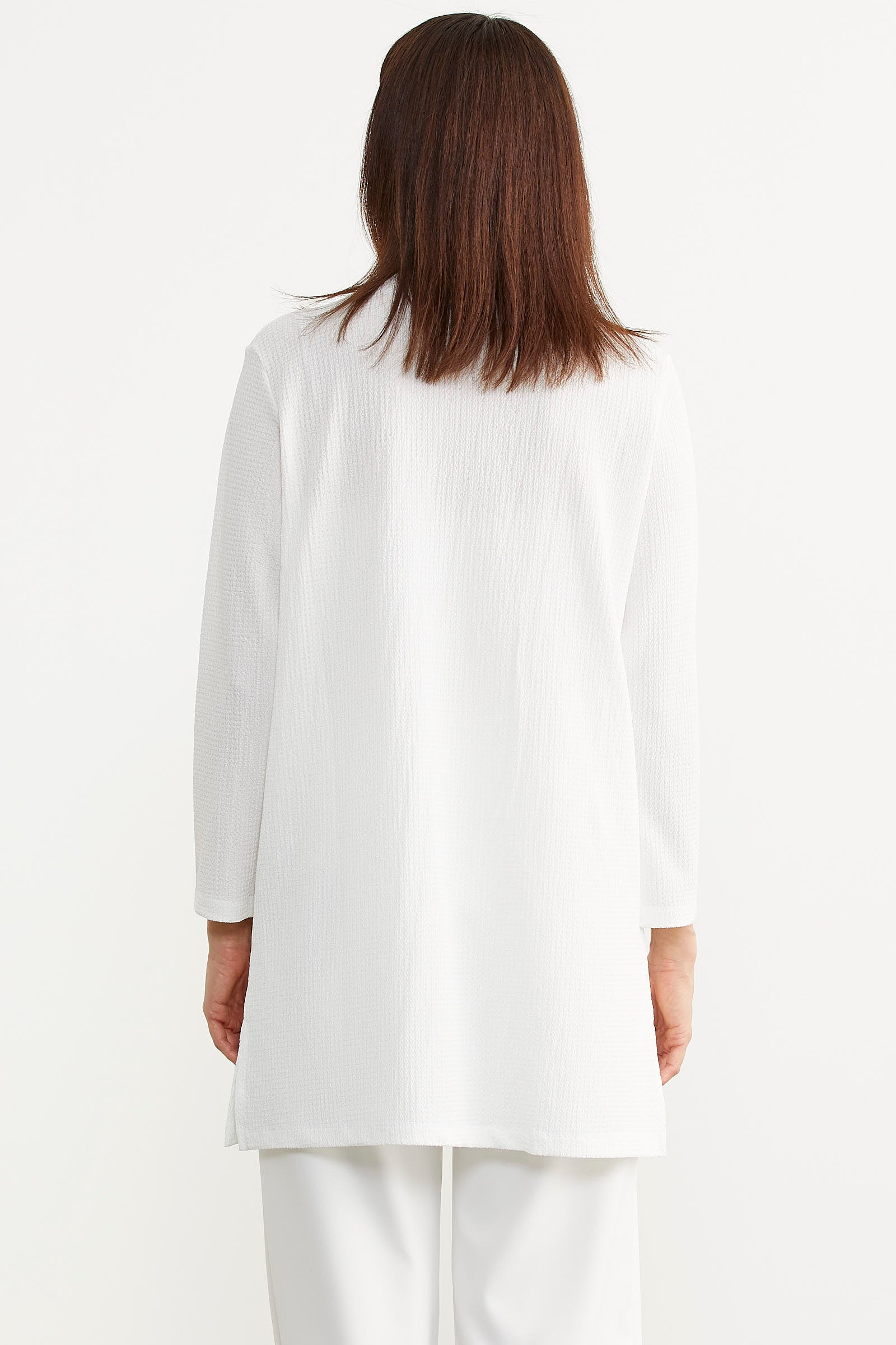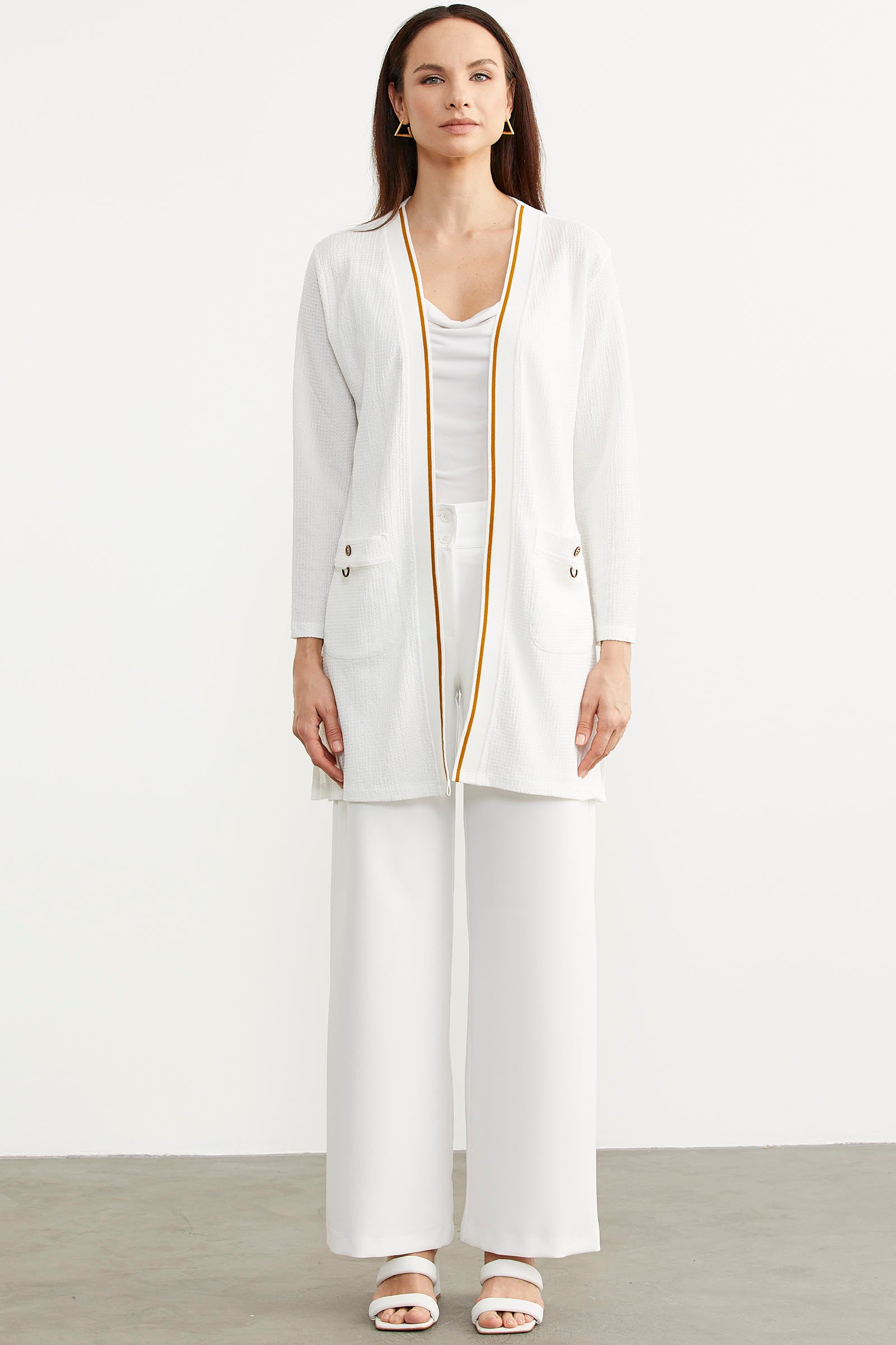 Knitted Striped Plus Size Crepe Jacket - Ecru