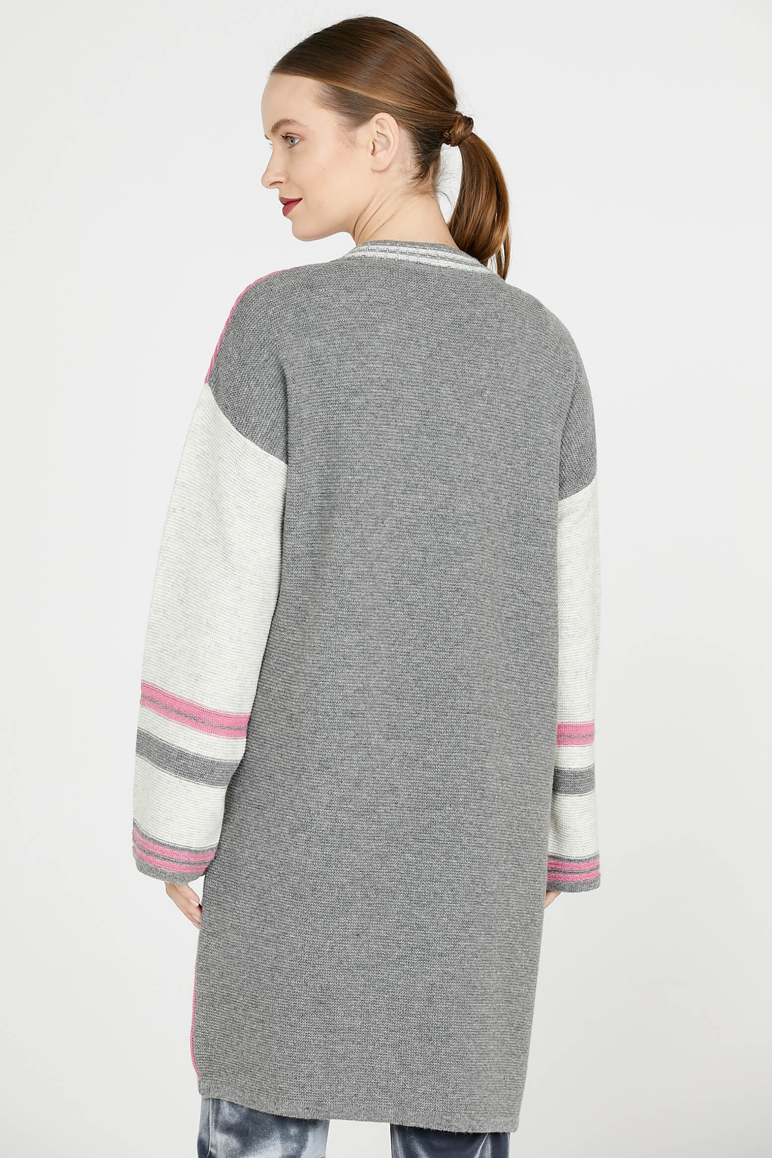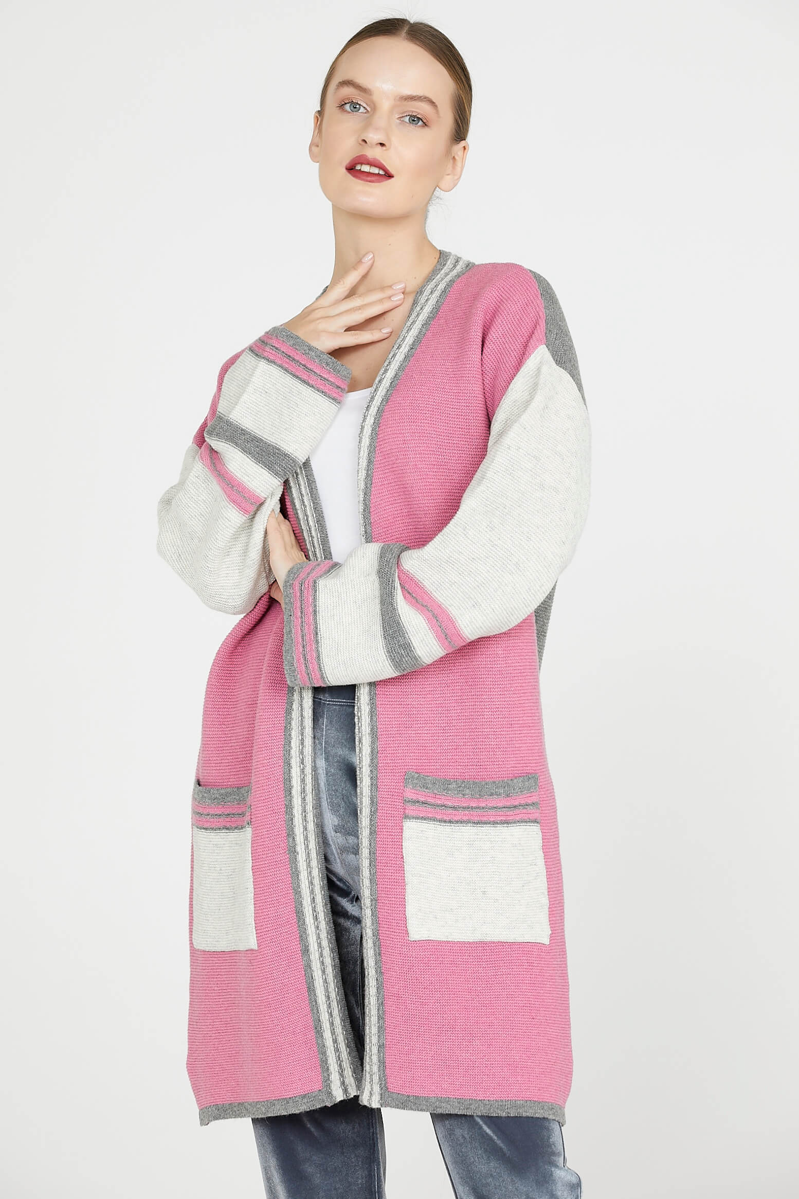 Long-sleeved knit cardigan is offered to stylish women. Drawing attention to a luxurious style with its wool blended texture, this standard pattern makes a difference with its design. Knitwear cardigan, which gains privilege with its large patch pockets, gives a striking look with your trousers and takes your style one step ahead.