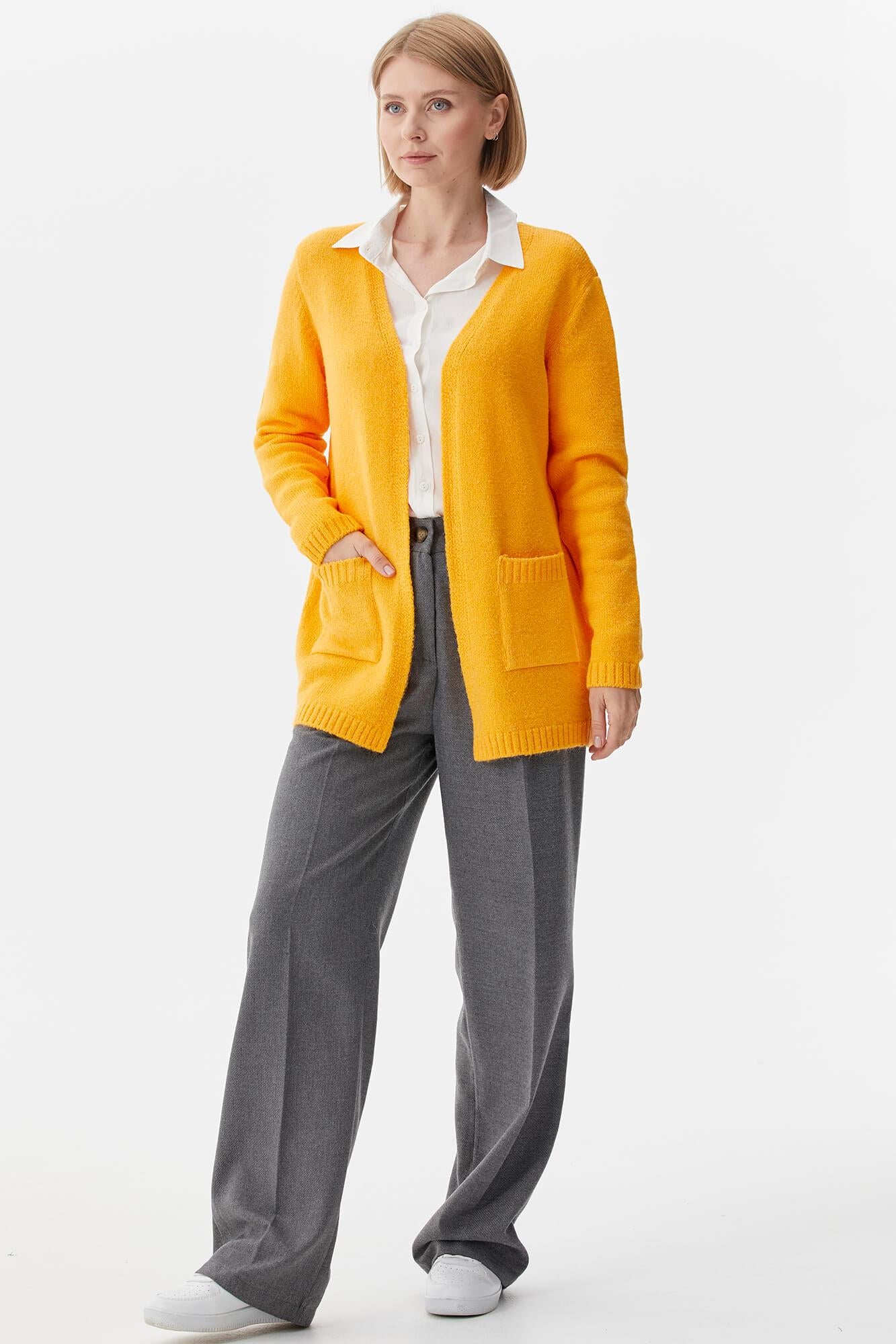 Create elegant looks with a knitwear jacket that offers comfort with its soft texture, v-neck, long sleeves, and adds movement to its plain form with its pocket detail on the front. Fabric Content: 90% Acrylic 10% Cotton Pattern: Straight Collar Type: V-Neck Sleeve Type: Long Sleeve Product Length: 71 cm Pattern Type: Standard Pattern Pocket: Pocketed Mannequin Size: Std Mannequin Dimensions: Height: 175 cm Bust: 87 cm Waist: 63 cm