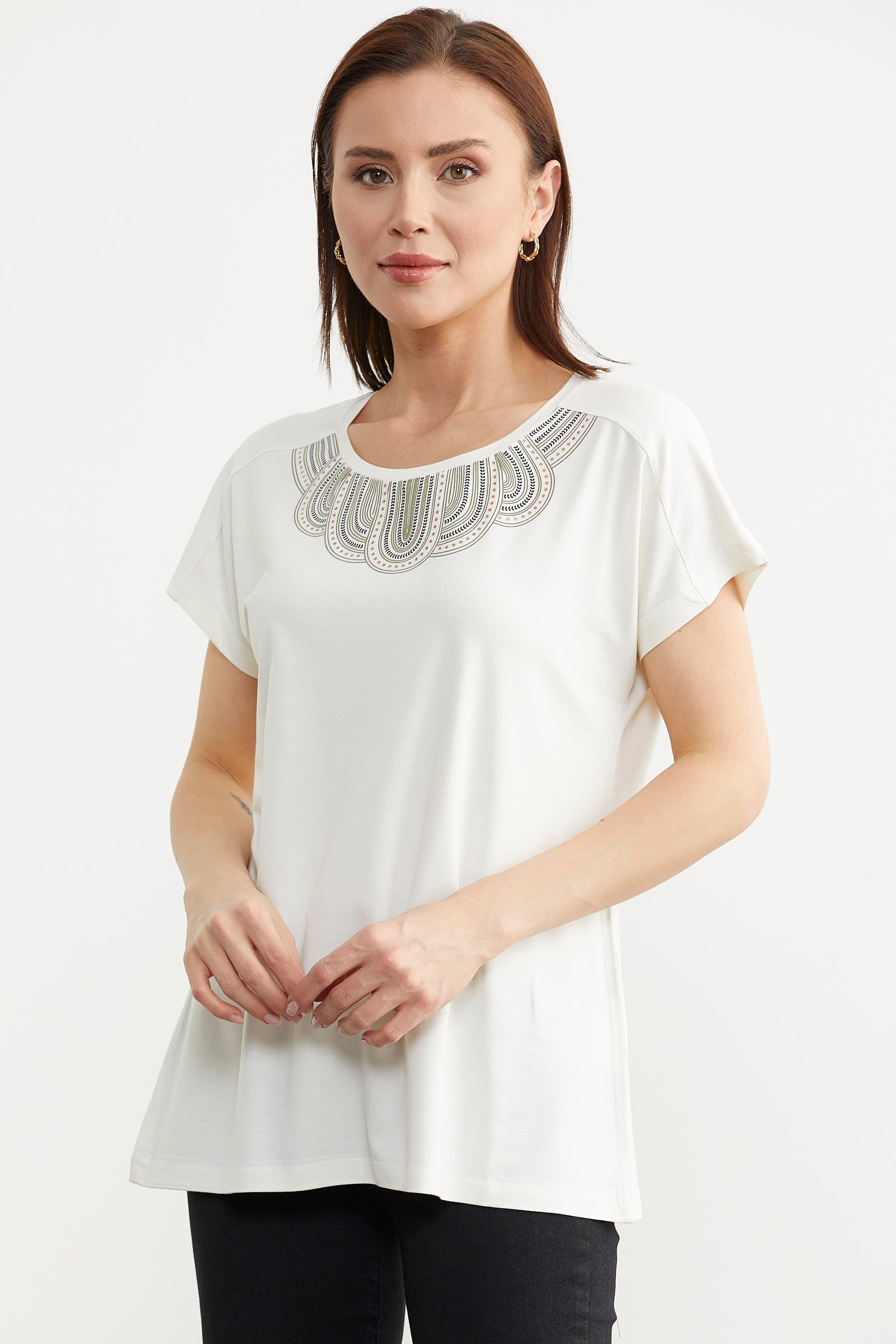Collar Detailed Flowy Combed Cotton T-Shirt - Ecru