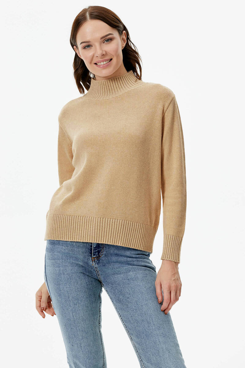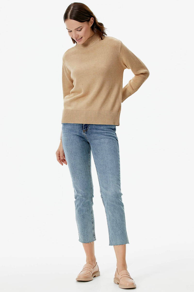 The most comfortable piece of a stylish look with its low shoulder and glitter detail. You can adapt the knitwear, which provides high-dose protection in cold weather conditions with its half turtleneck, to your daily style by completing it with jeans.