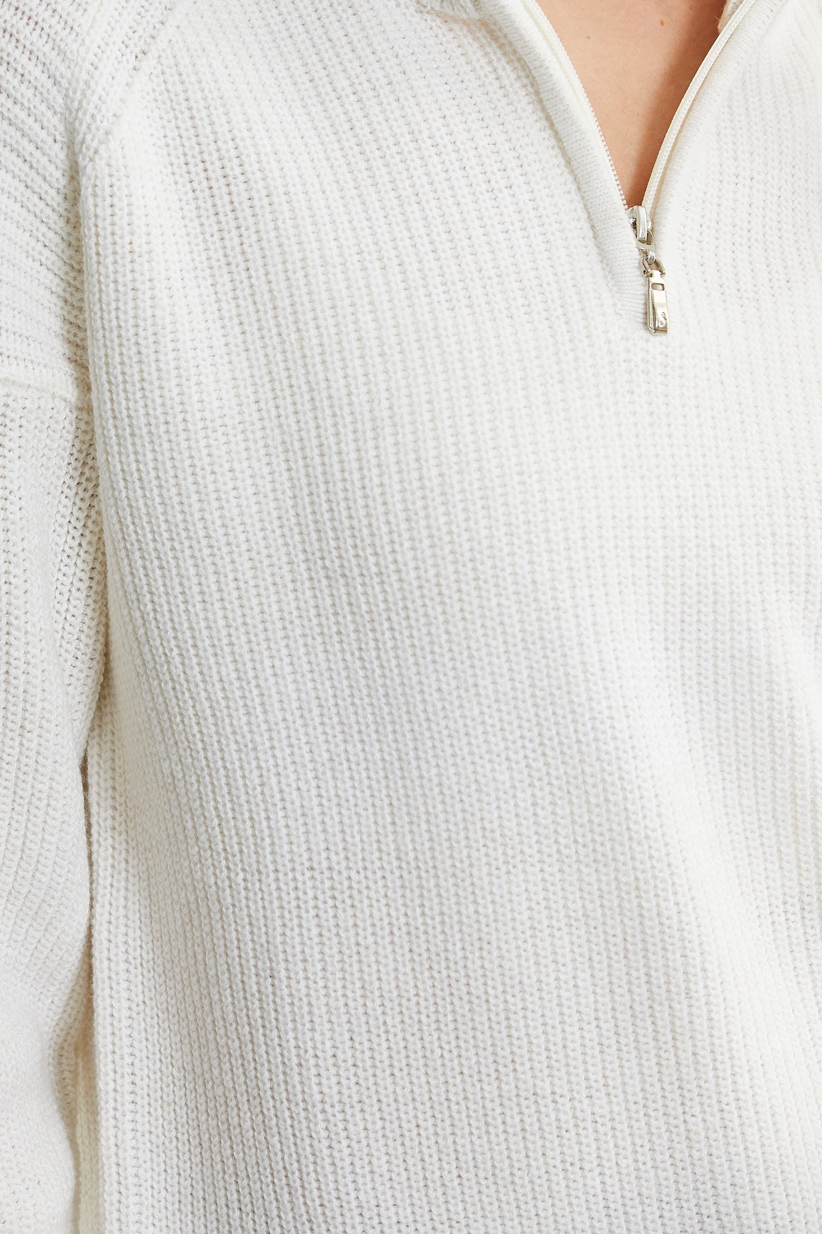 Half Turtleneck Zippered Wool Knit Sweater - Bone