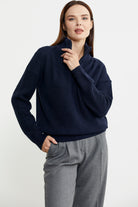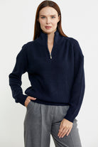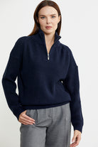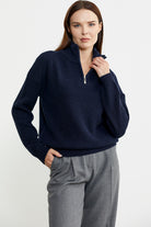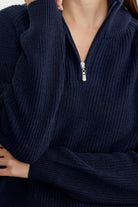 Half Turtleneck Zippered Wool Knitwear Sweater - Navy Blue