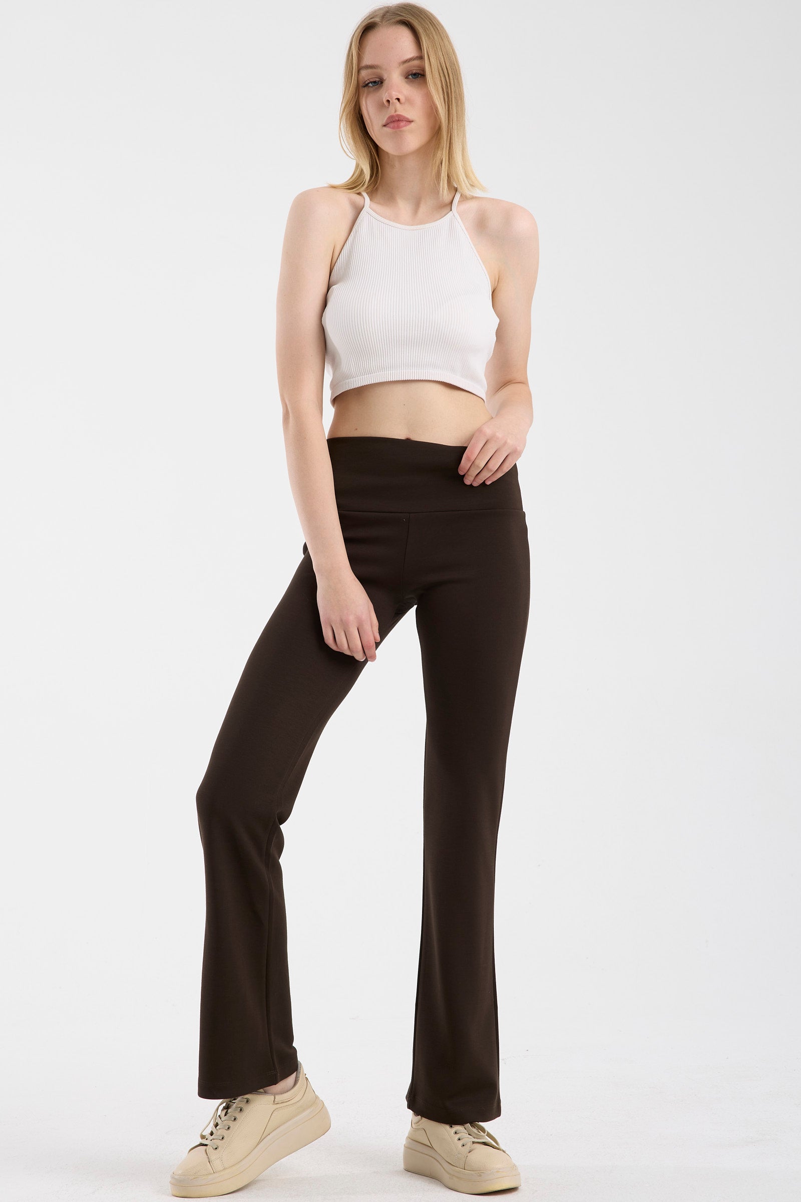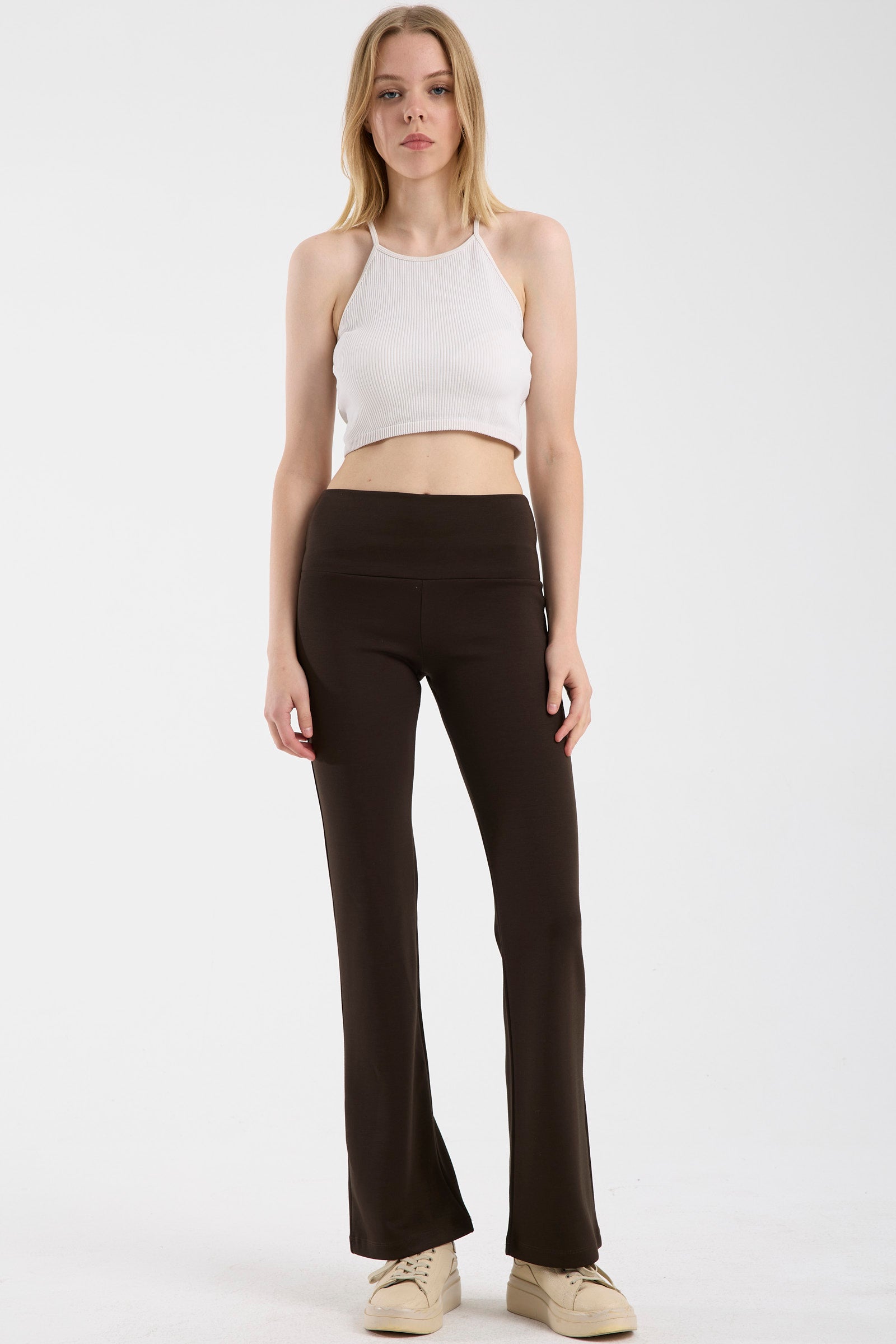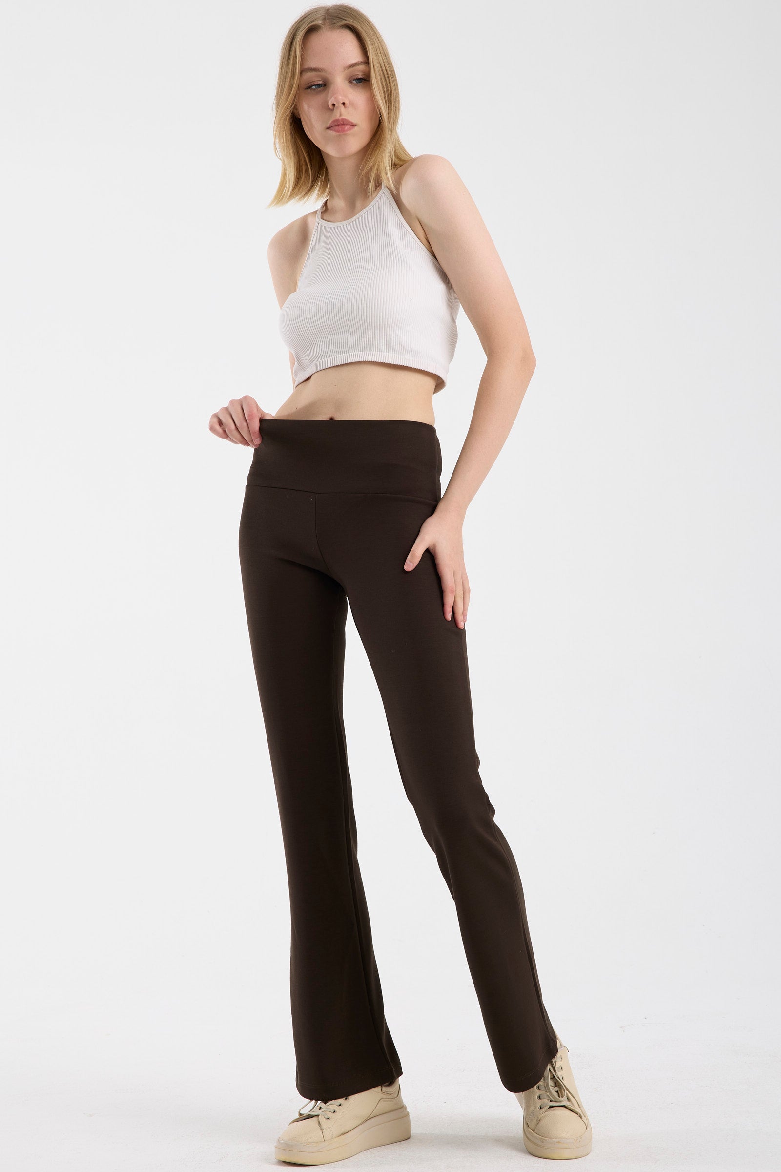 Yüksel Bel Yumuşak Dokulu Eşofman Alt - Kahve