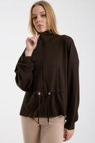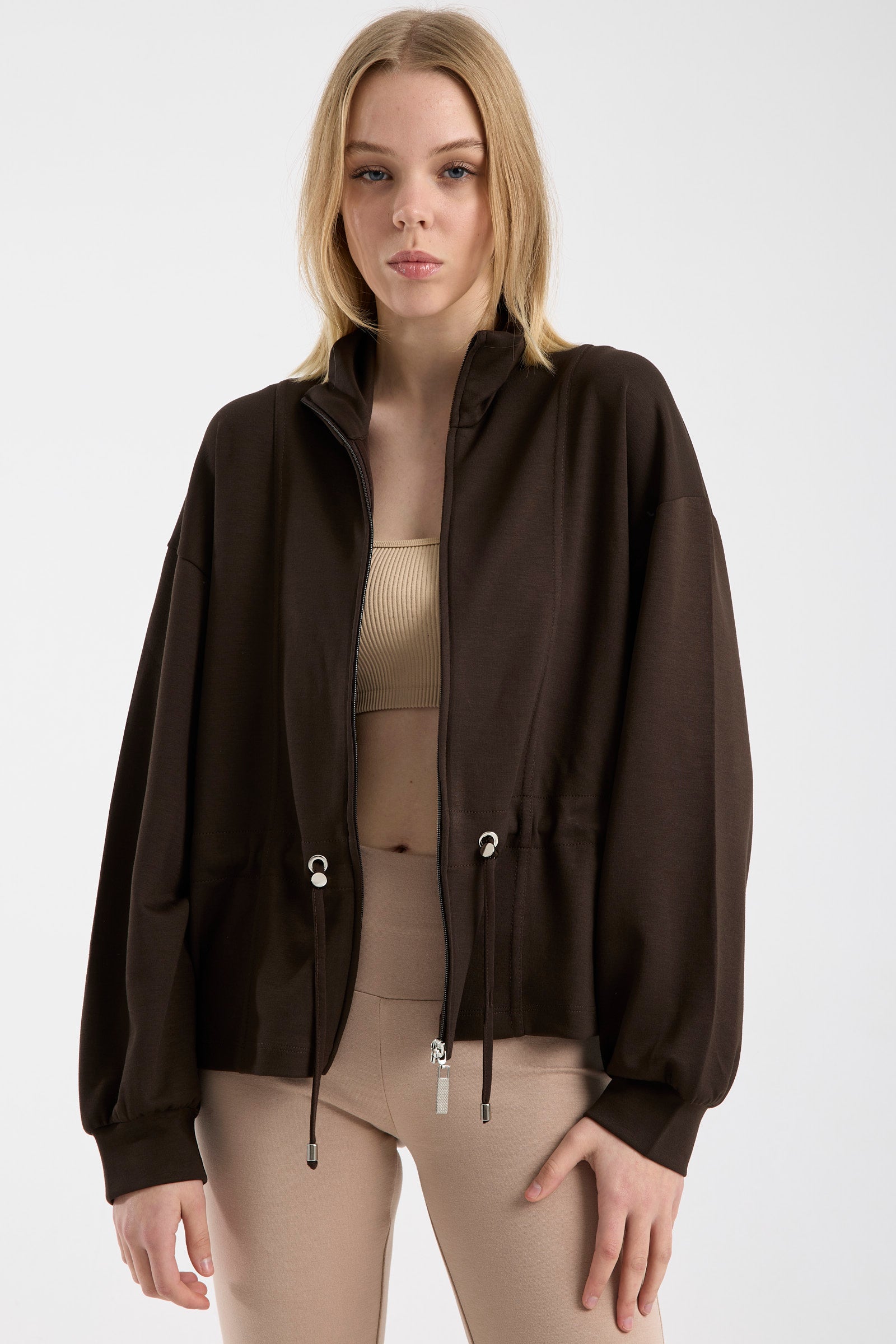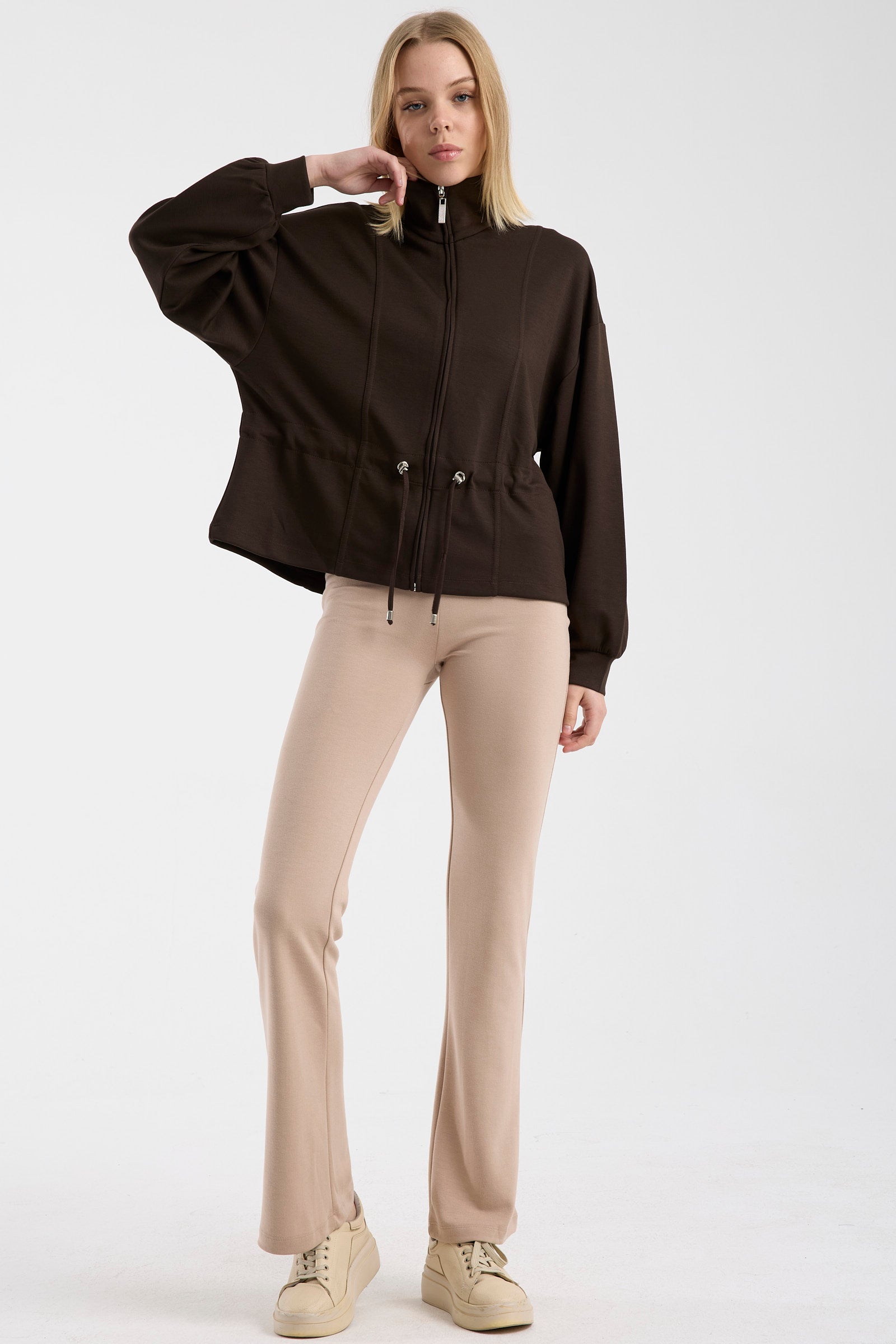 Yumuşak Dokulu Beli Ayarlanabilir Sweatshirt - Kahve