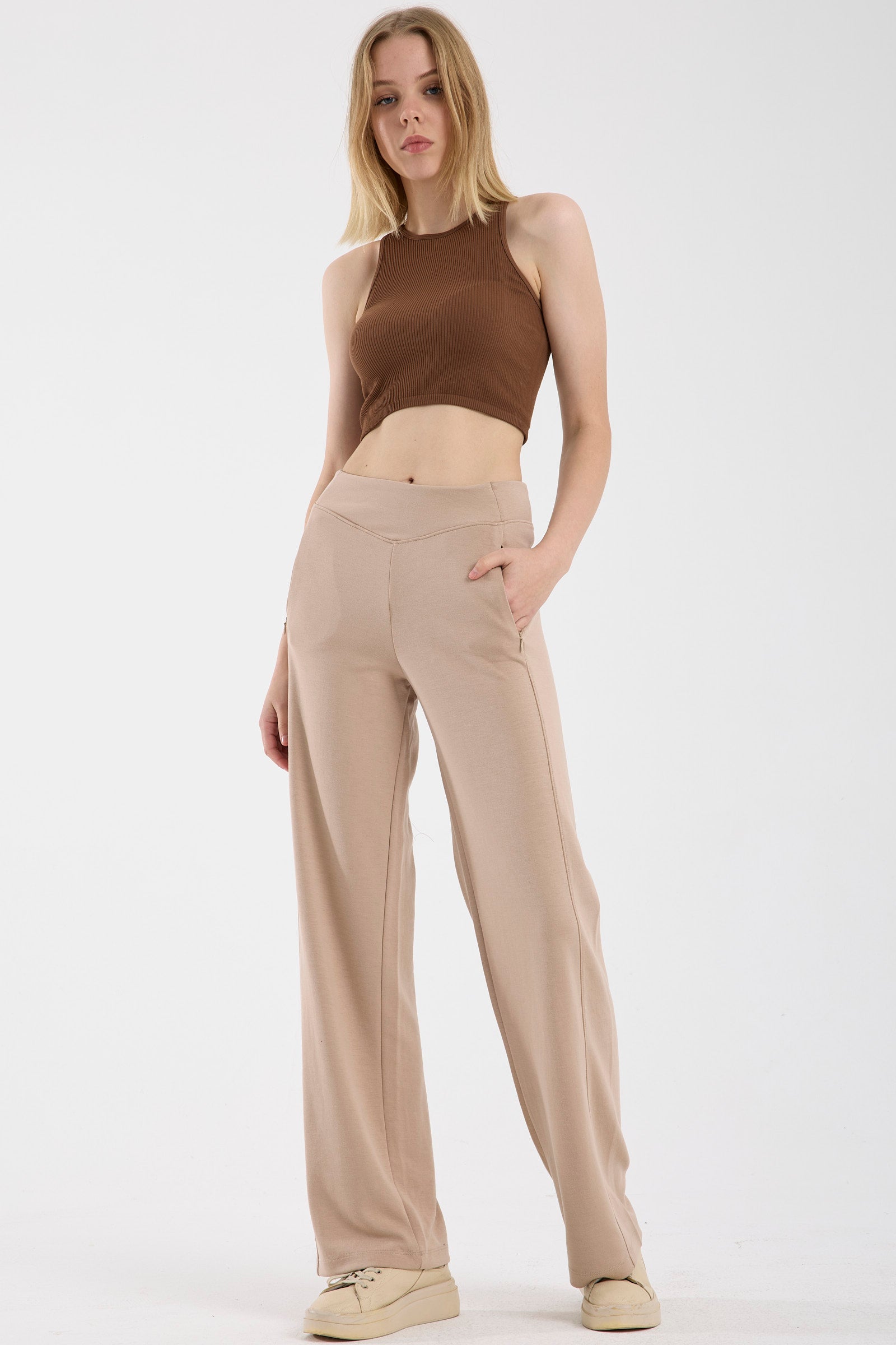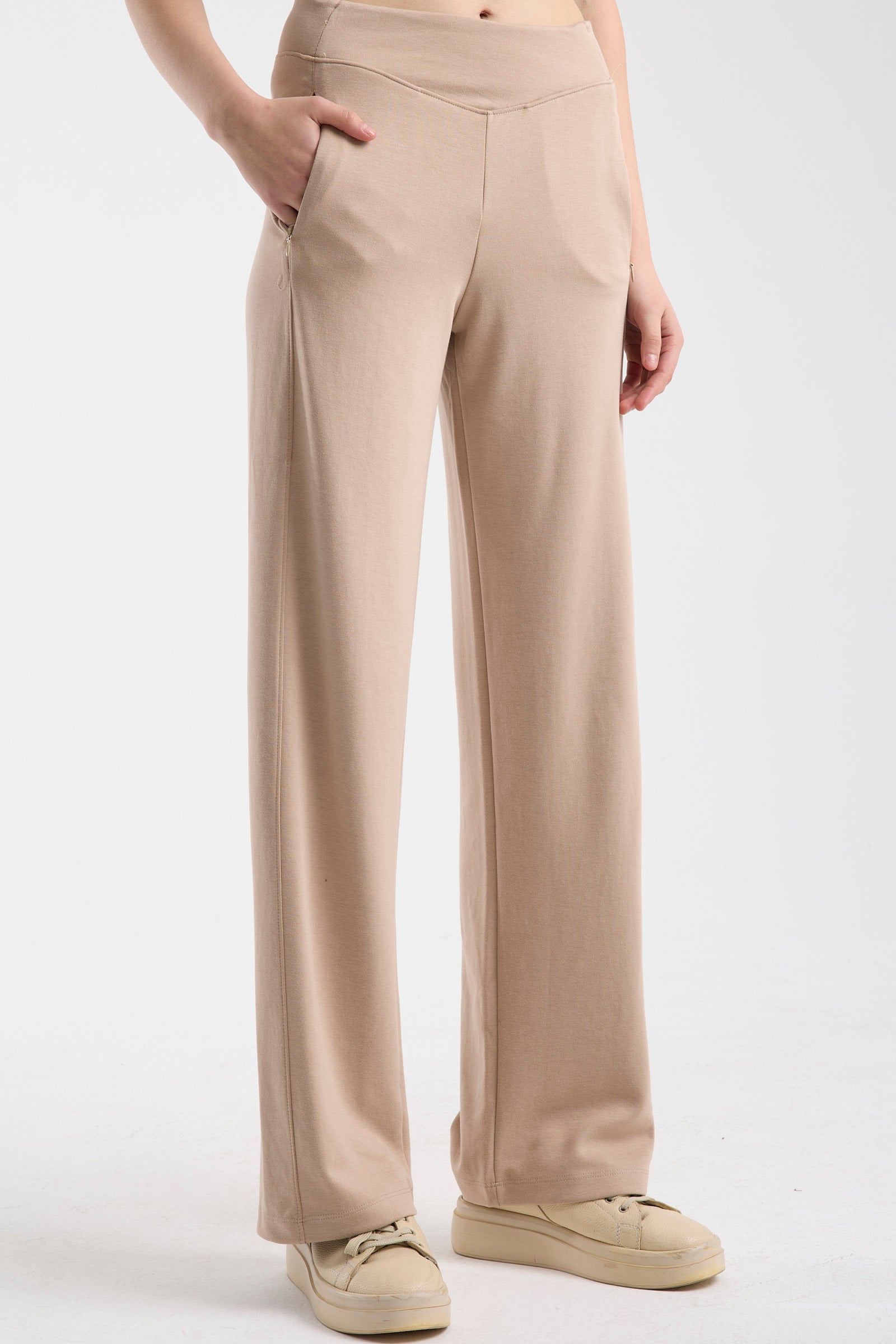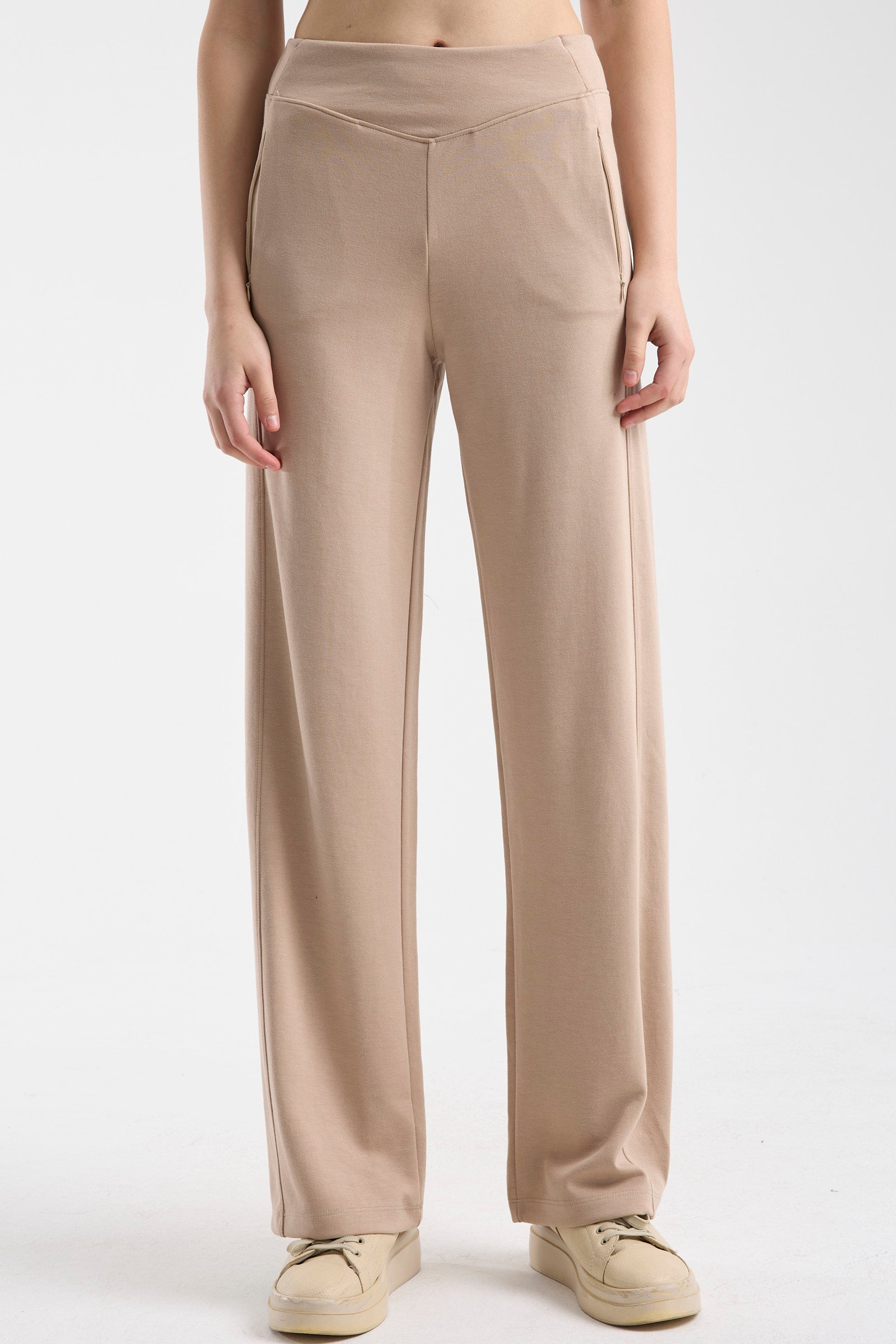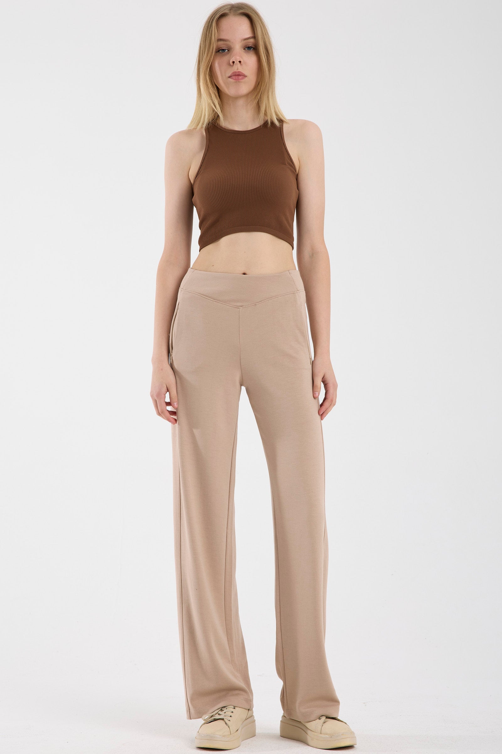 Yumuşak Dokulu Bol Paça Eşofman Alt - Bej