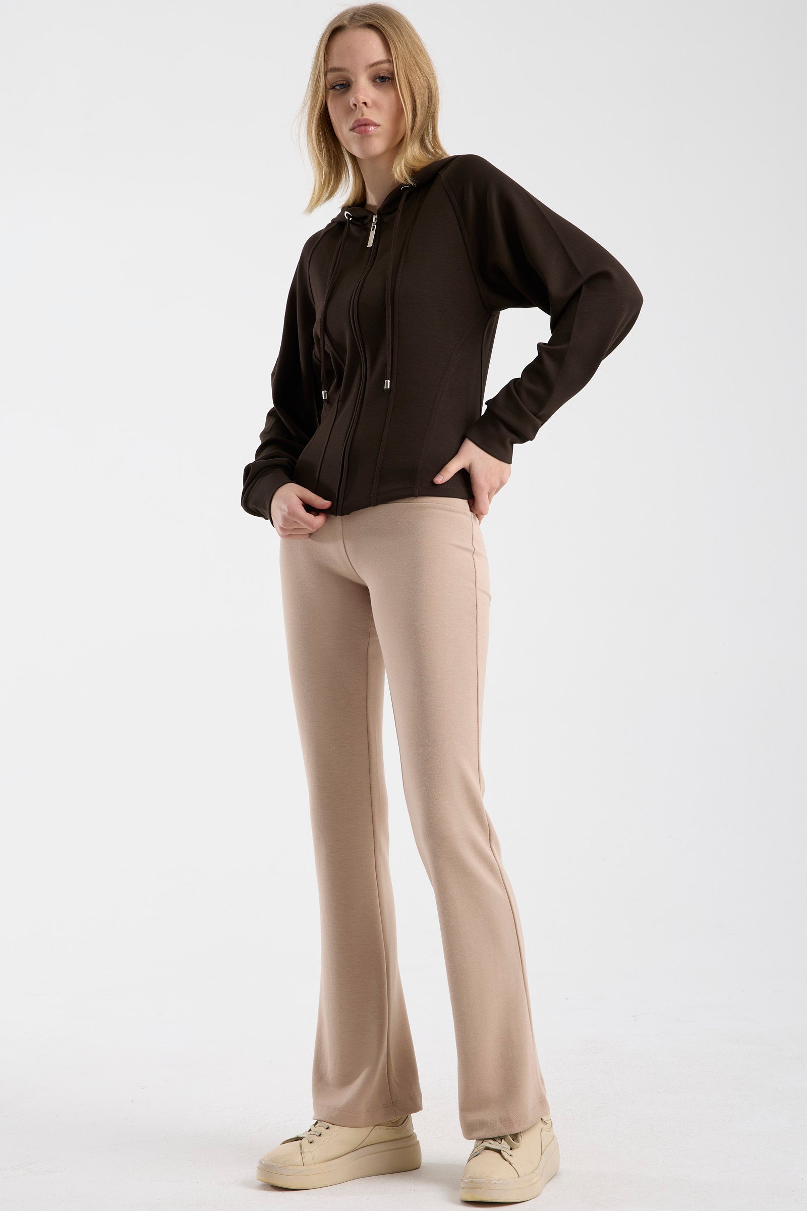 Yumuşak Dokulu Crop Sweatshirt - Kahve