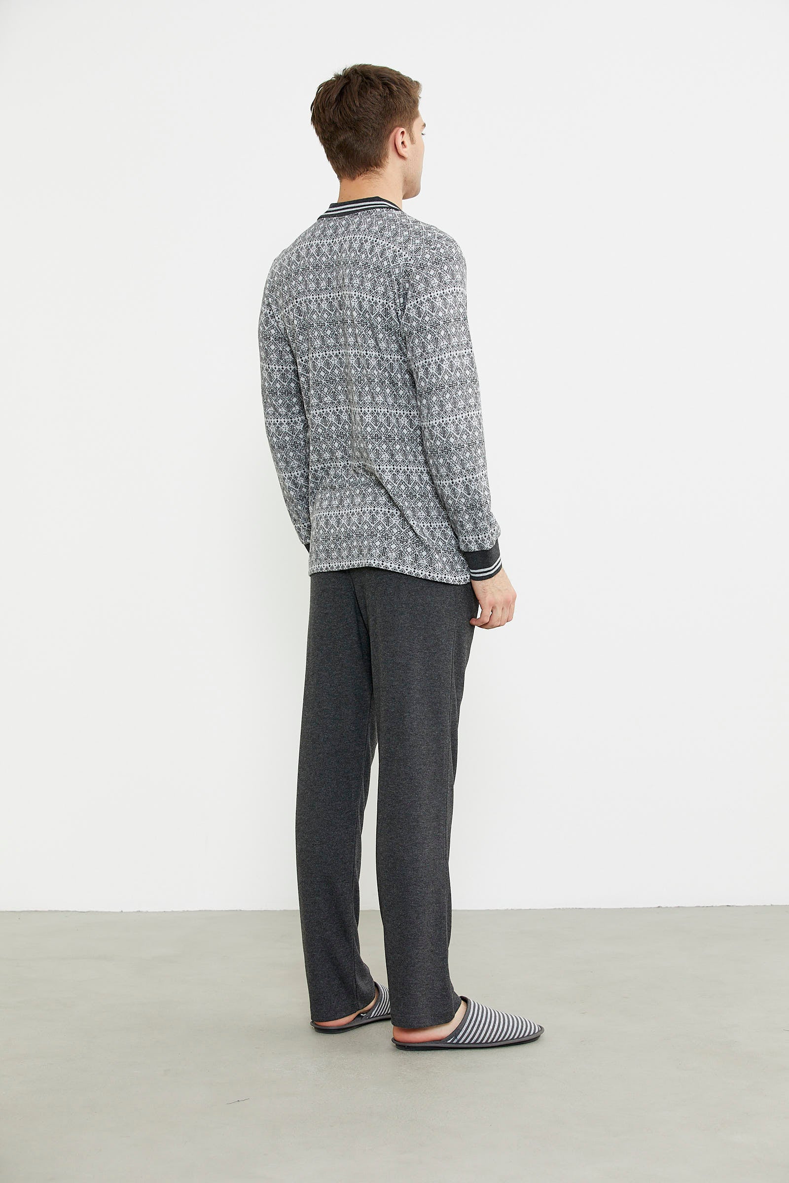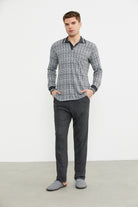 Soft Texture Polo Collar Pajama Set - Anthracite