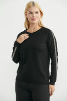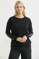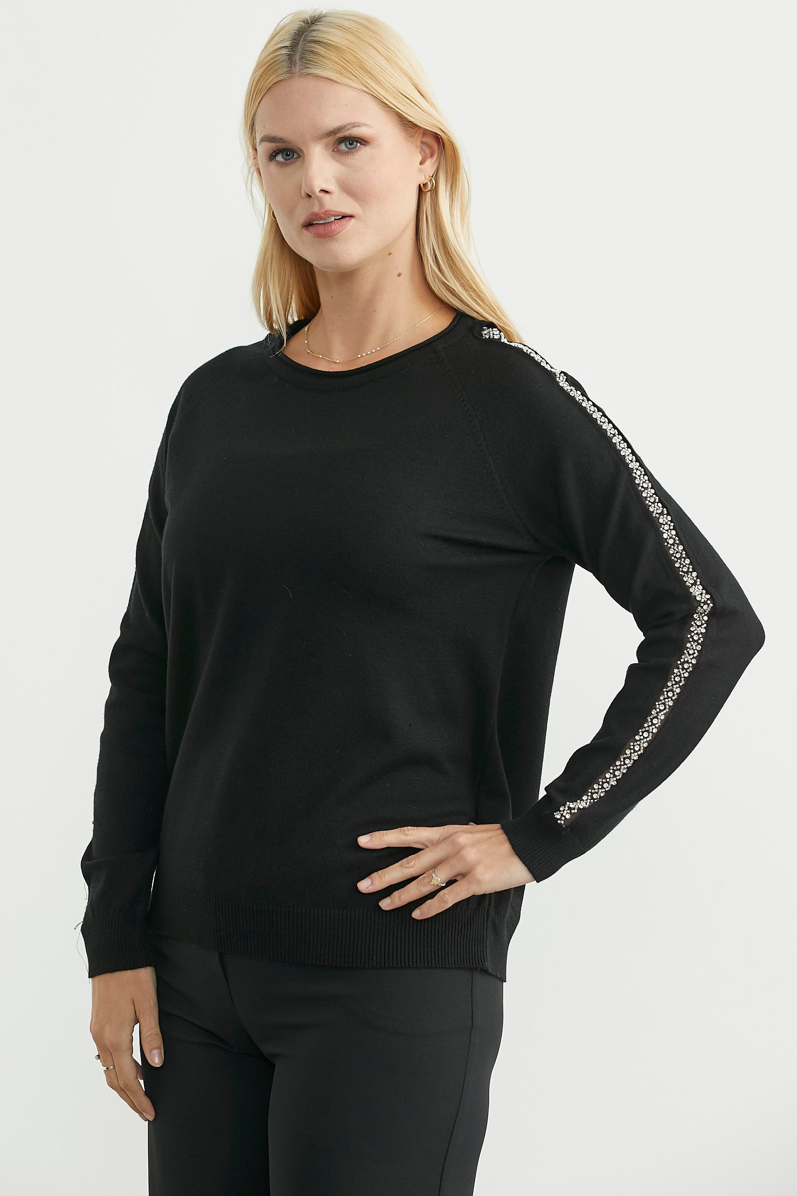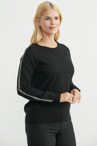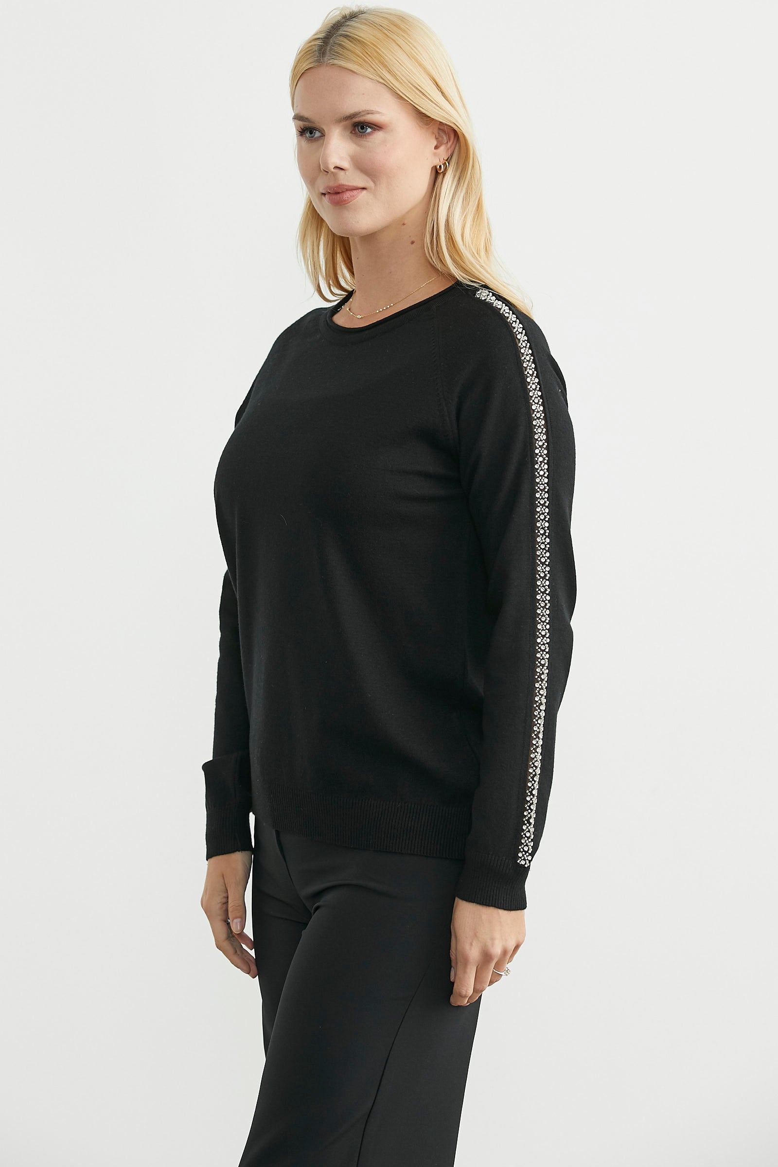 Yuvarlak Yaka Kol Detaylı Triko Kazak - Siyah