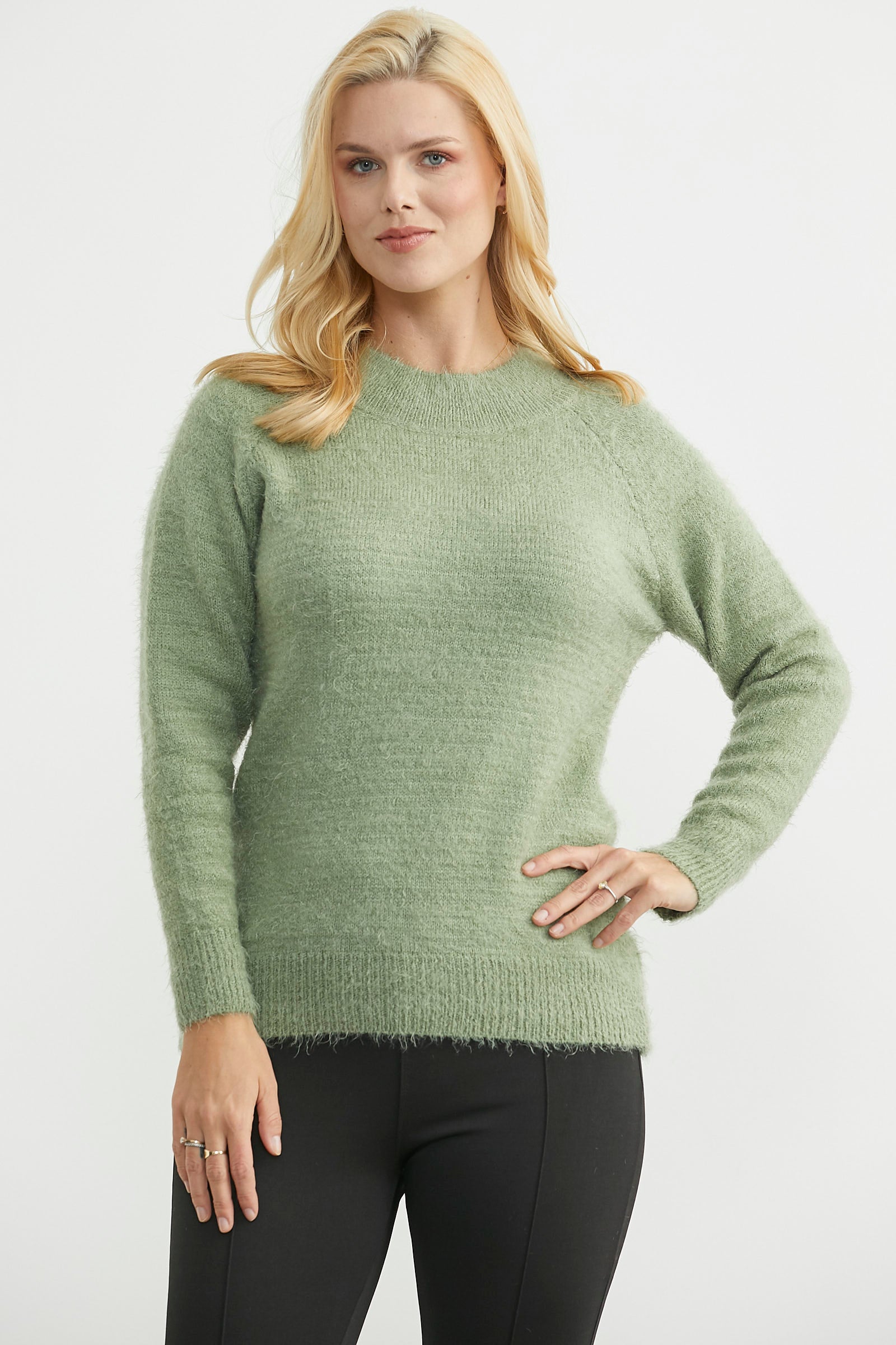 Yuvarlak Yaka Yumoş Basic Triko Kazak - Çağla Yeşili