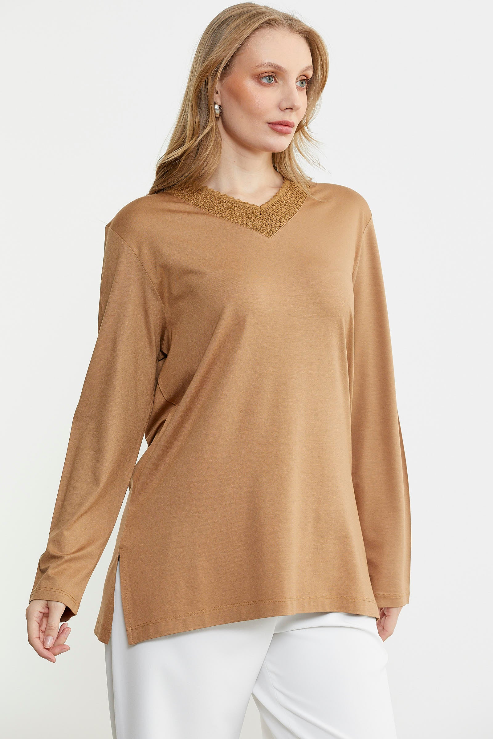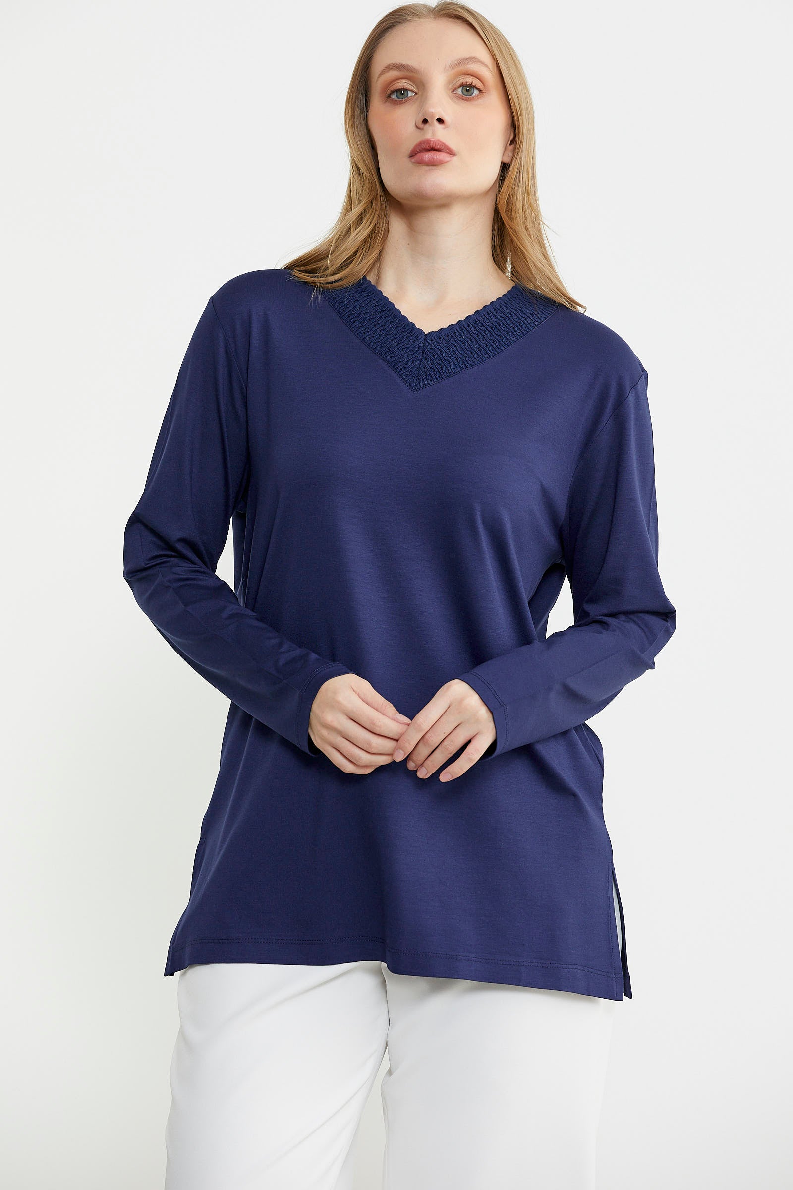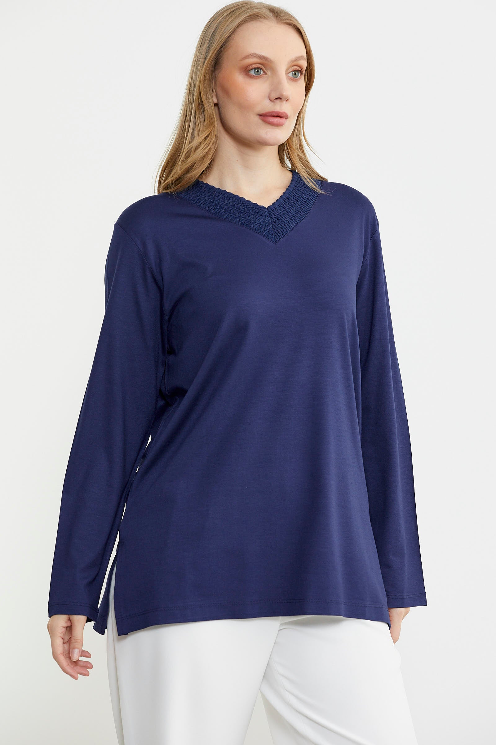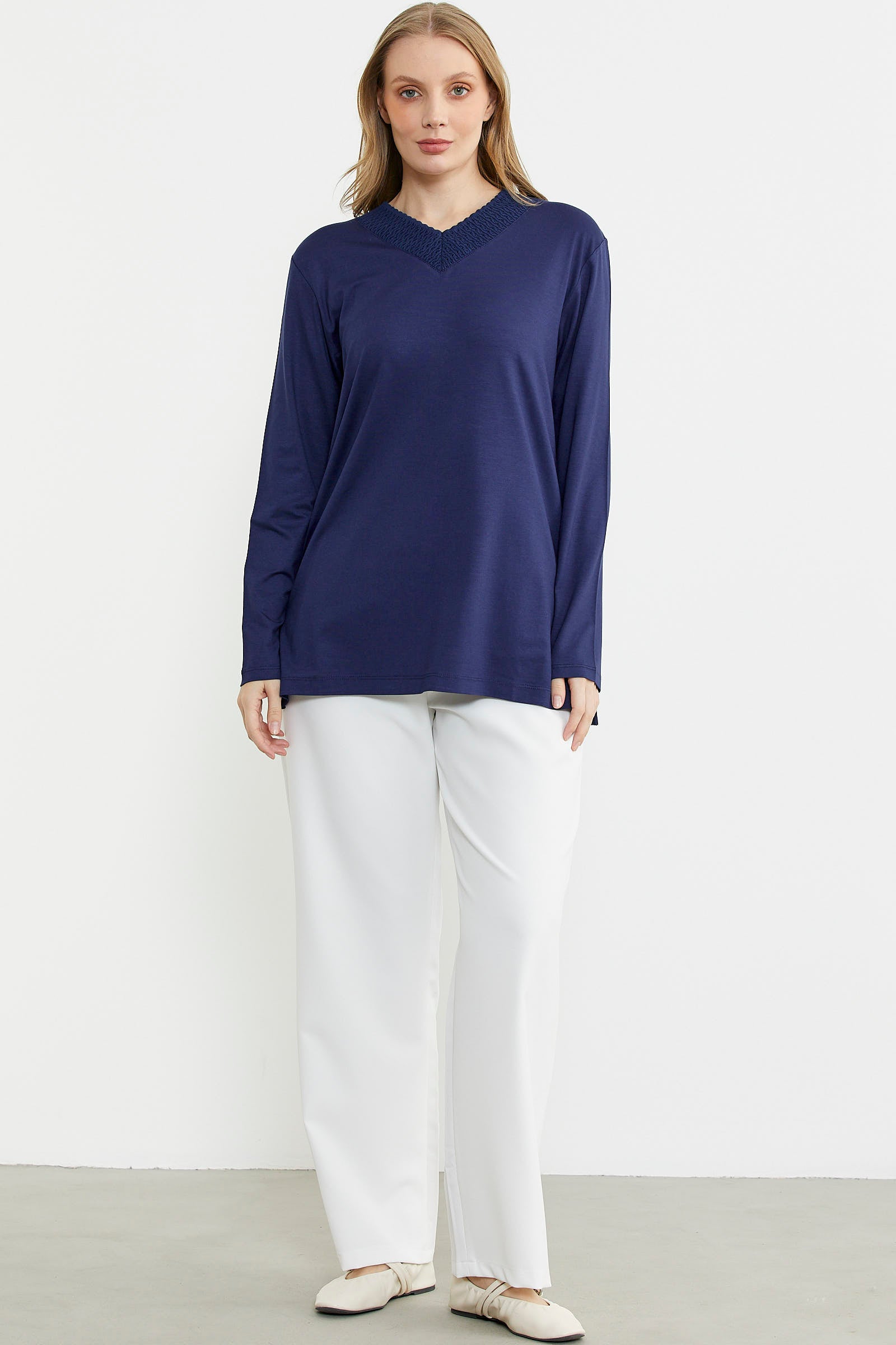 Klasik bir stil anlayışına sahip olan kadınlar, özellikle küçük dokunuşlarla hareketlendirilmiş basic modellere yöneliyorlar. Sementa’nın bu tanıma uygun modelleri arasında, v yaka kadın bluz tasarımları, balıkçı yaka kadın bluz tasarımları ile fermuarlı kadın bluz modelleri fazlasıyla ilgi görüyor. Söz konusu hareketliliği kimi zaman baskılar, kimi zaman ise kadın uzun kollu bluz tasarımların kol kısımlarına eklenen küçük desenler sağlıyor.