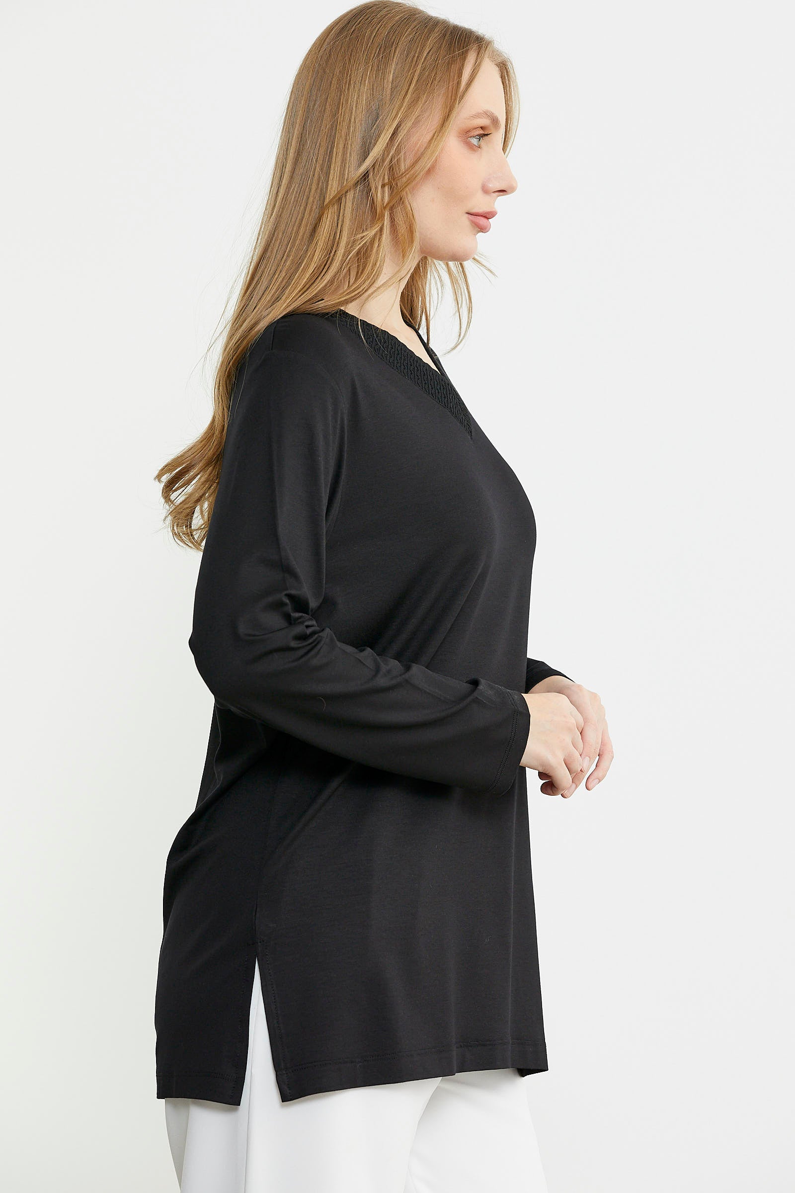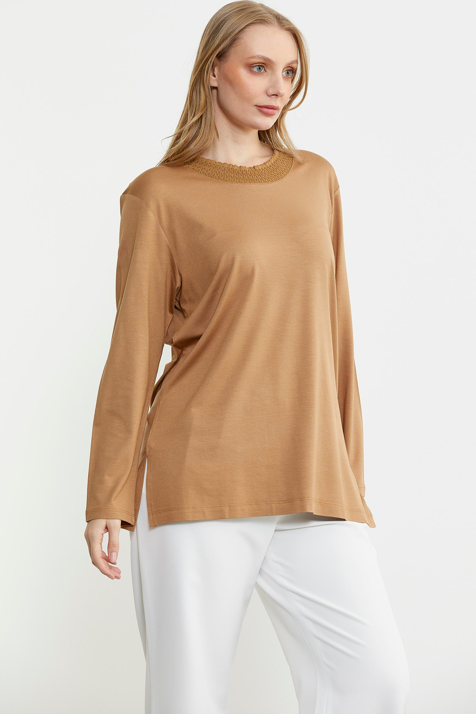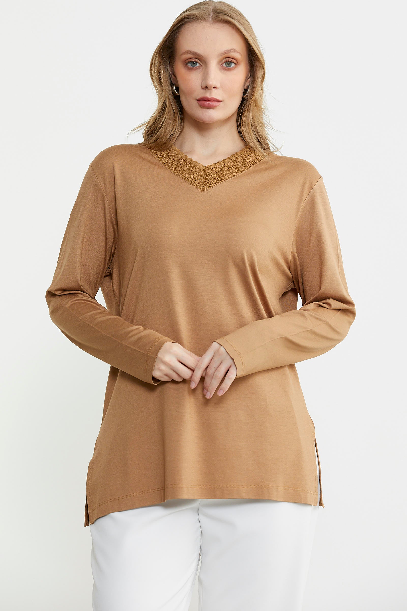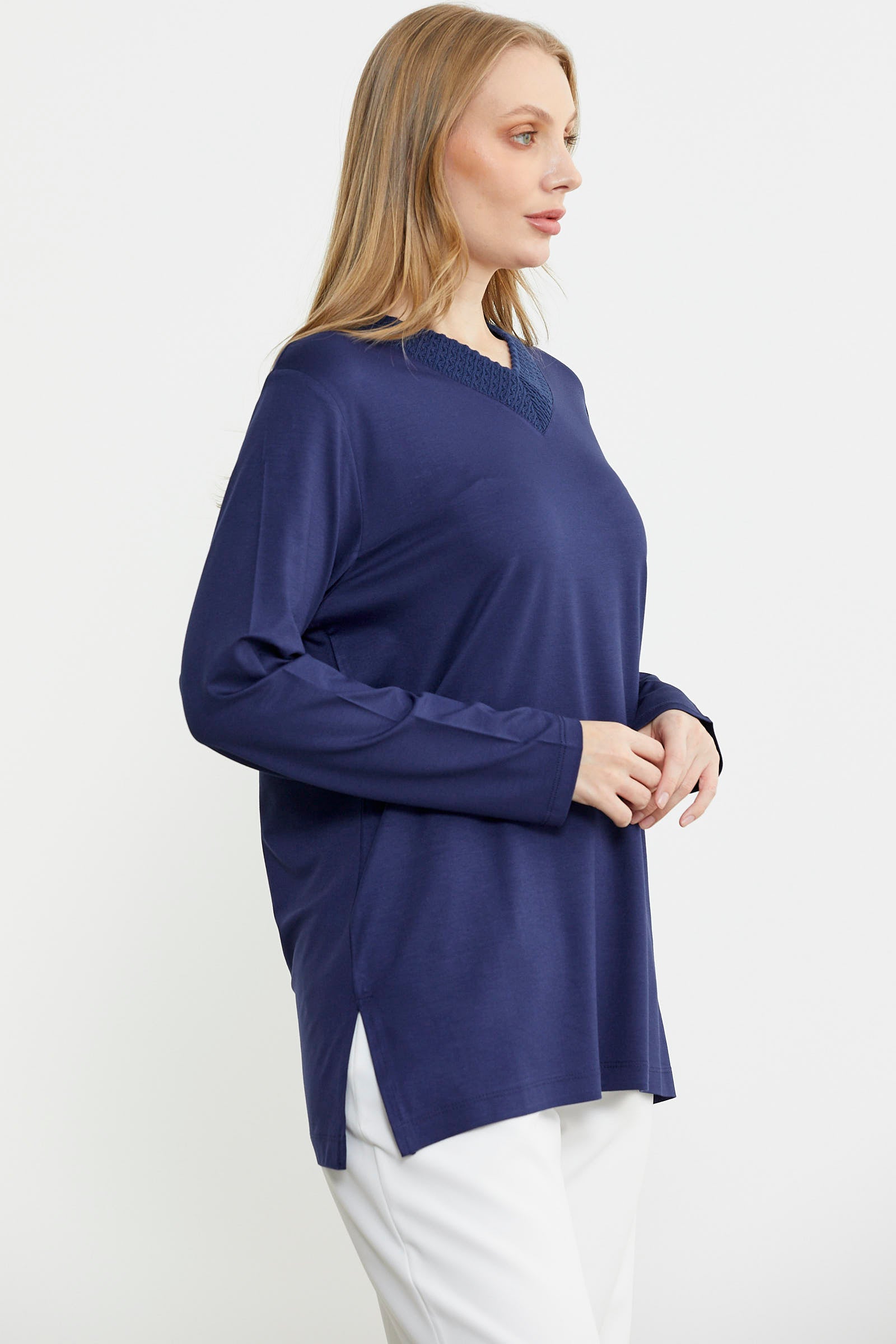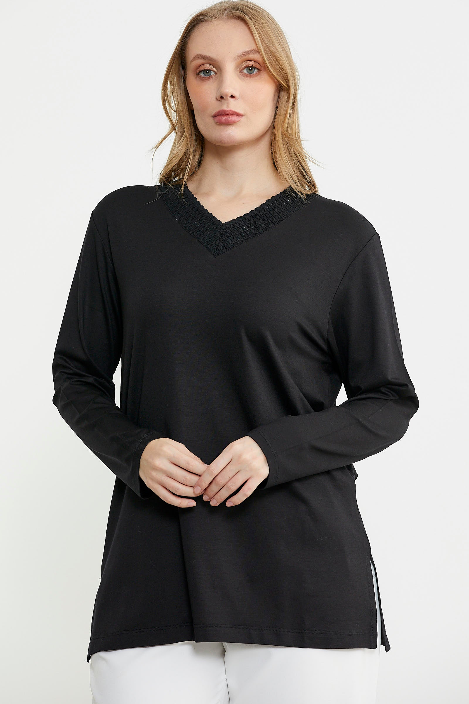 Klasik bir stil anlayışına sahip olan kadınlar, özellikle küçük dokunuşlarla hareketlendirilmiş basic modellere yöneliyorlar. Sementa’nın bu tanıma uygun modelleri arasında, v yaka kadın bluz tasarımları, balıkçı yaka kadın bluz tasarımları ile fermuarlı kadın bluz modelleri fazlasıyla ilgi görüyor. Söz konusu hareketliliği kimi zaman baskılar, kimi zaman ise kadın uzun kollu bluz tasarımların kol kısımlarına eklenen küçük desenler sağlıyor.