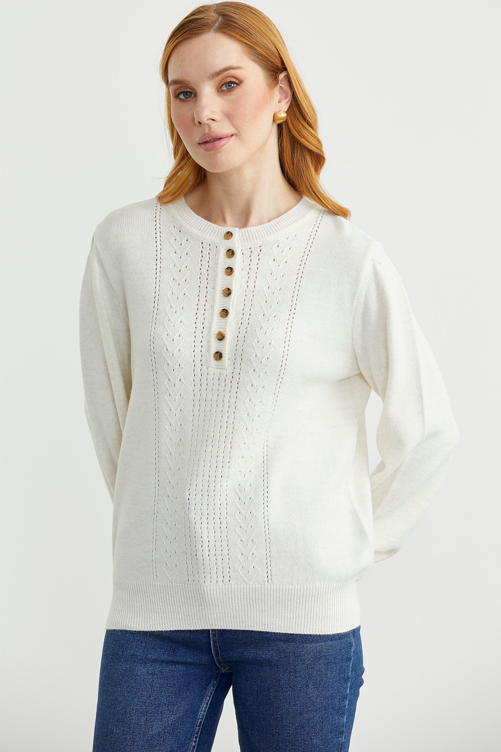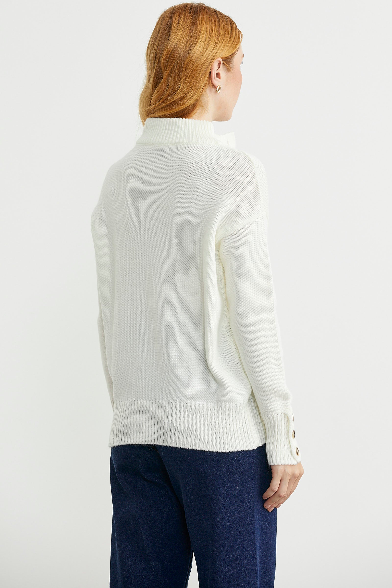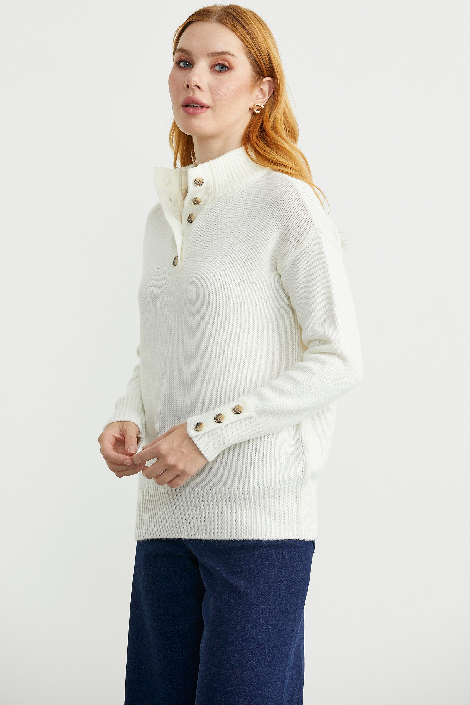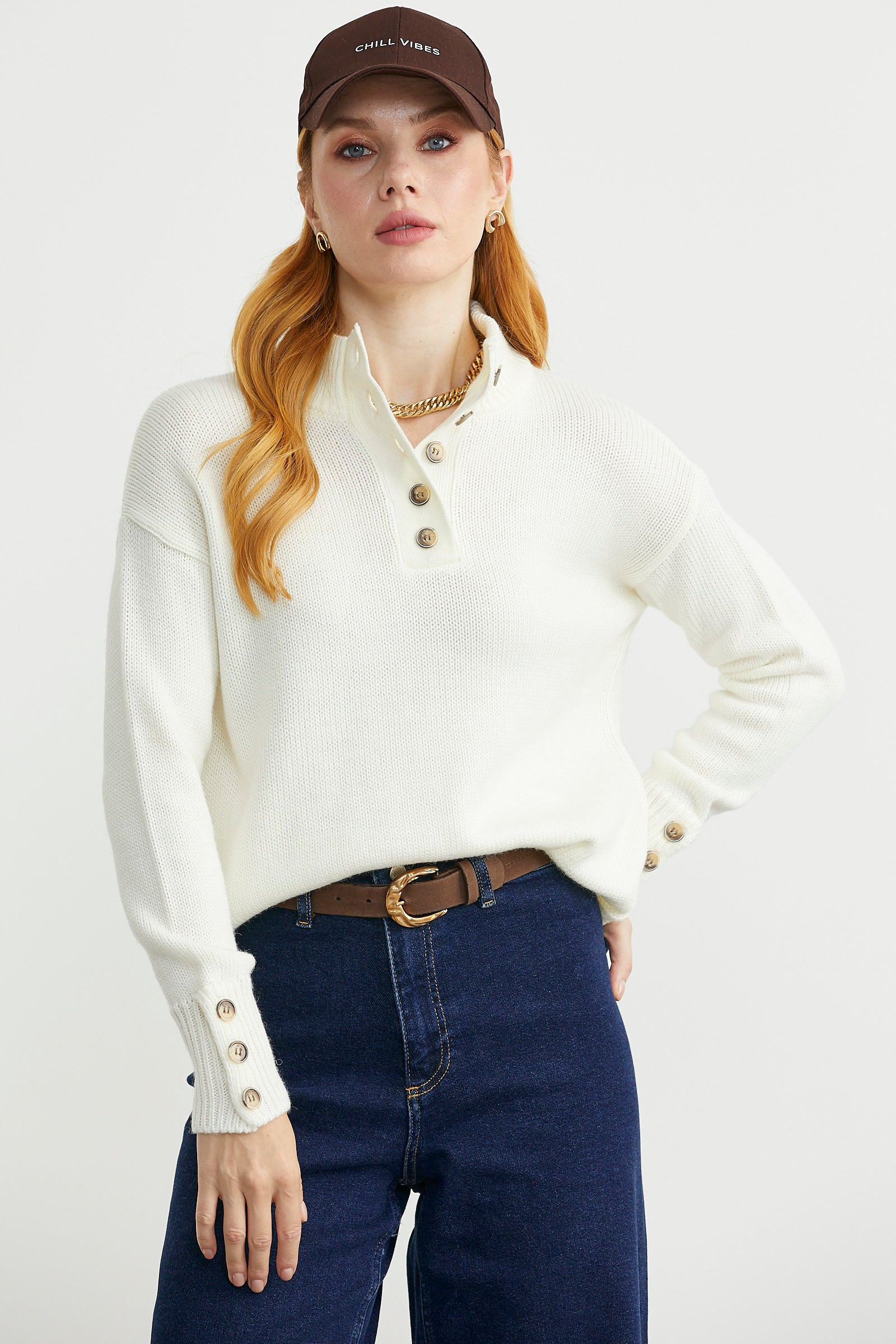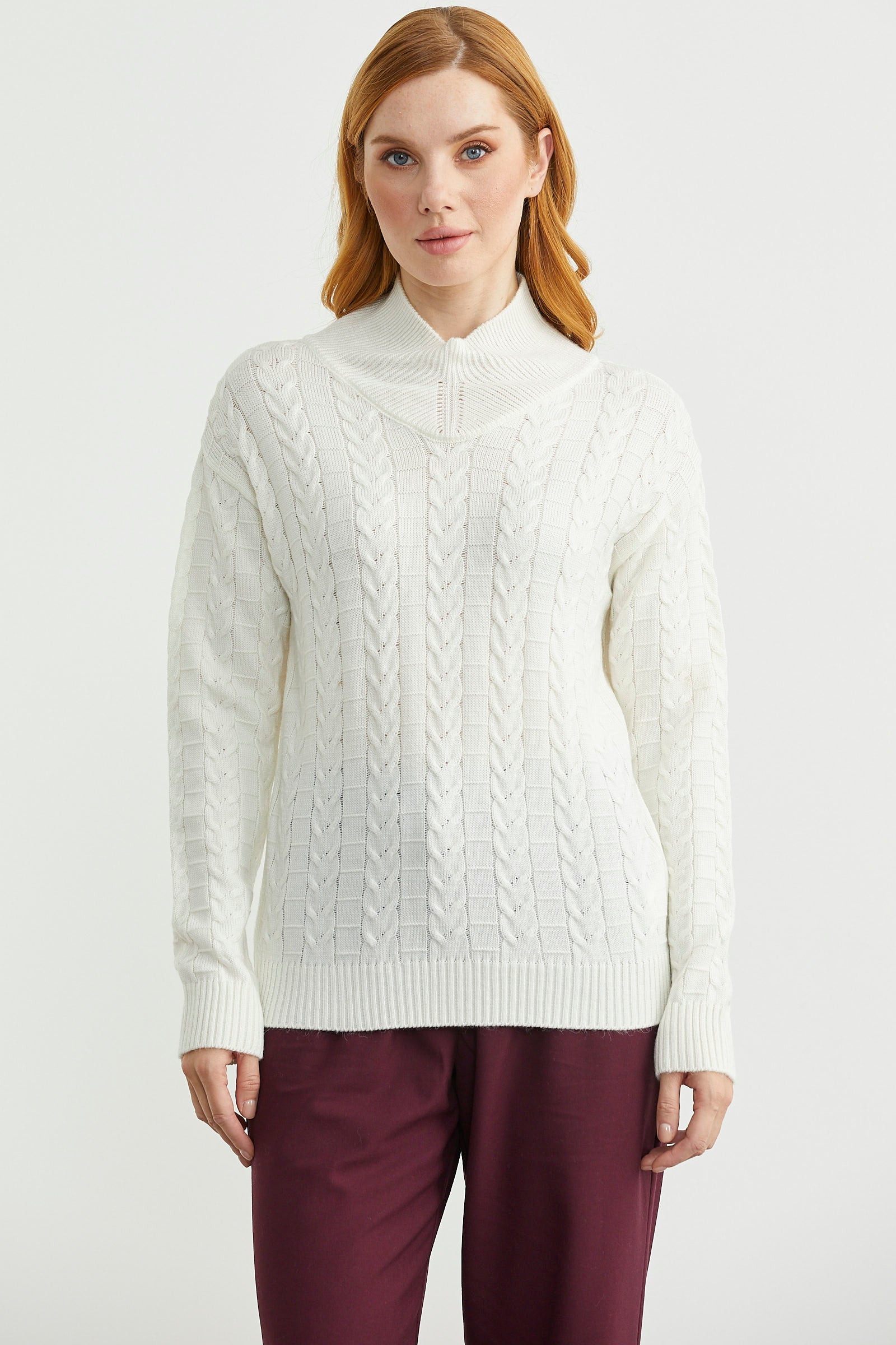 Ayrıca yarım balıkçı yaka kadın kazak tasarımları içinde yer alıp, son derece çarpıcı bir duruşu olan yaka ucu büzgü detaylı kazak da, sezonun trend ve favori ürünleri arasında! Bu ürünümüzde ayrıca desenler de, şık ve zarif duruşlarıyla göz dolduruyor. Renk seçenekleri arasında ise siyah, lacivert, bordo, pudra ve vizon yer alıyor.