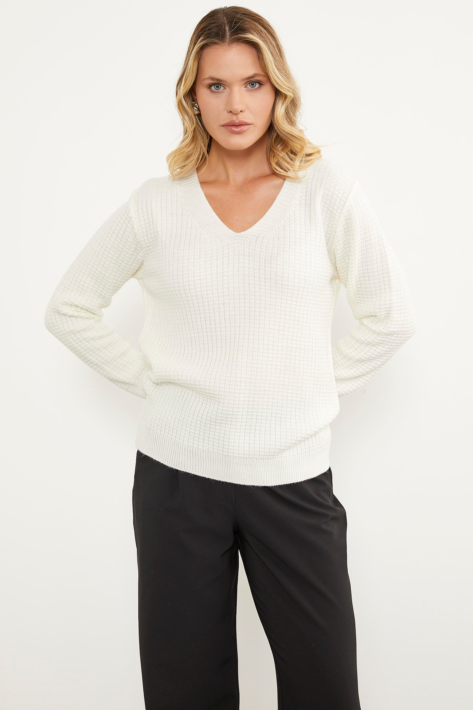 Dikdörtgen vücut şekline sahipseniz, yani vücudunuzun belirgin hatları yoksa kazak seçiminizi buna uygun olarak yapmalısınız. Bu durumda, hatlarınızı öne çıkartacak biçimde, olgun ya da genç kadın kazak modelleri arasından dar bir tasarımı seçmelisiniz. İnce hatlarınızı belirginleştirecek kadın triko kazak modelleri içinden dar ve yatay desenleri olan çizgili kadın kazak tasarımlarına da yönelebilirsiniz. Renk tercihinizi ise yine hatlarınızı ortaya çıkarmak üzere beyaz kadın kazak seçeneklerinden yana kullanabilirsiniz. Bunların yanı sıra kalın kadın kazak seçimleriniz ile gösterişli bir görünüm elde edebilirsiniz. Kazağın üzerinde, fırfır, büzgü, püskül gibi hareketlendirici detayların olması da bu noktada size avantaj sağlar.