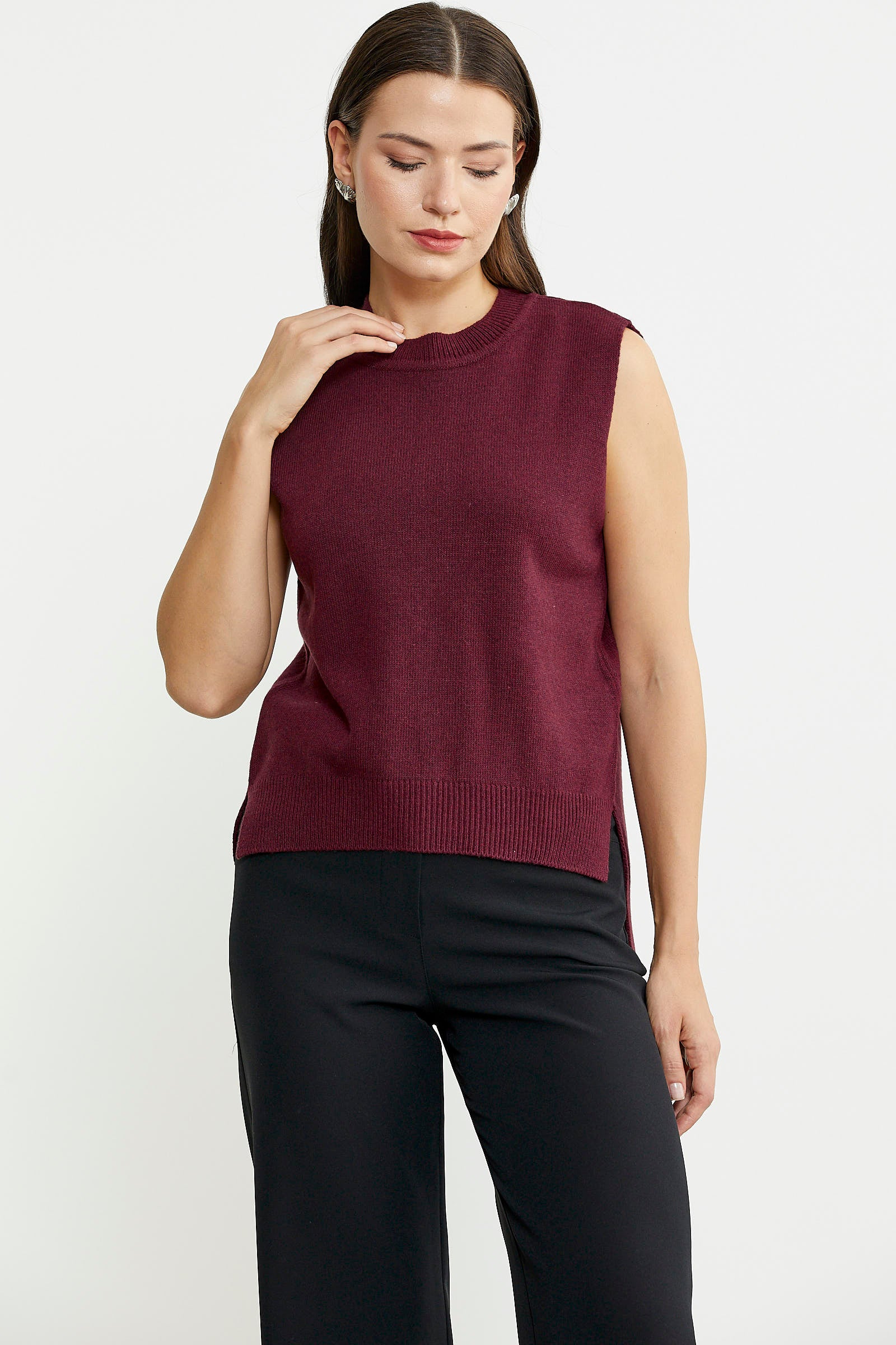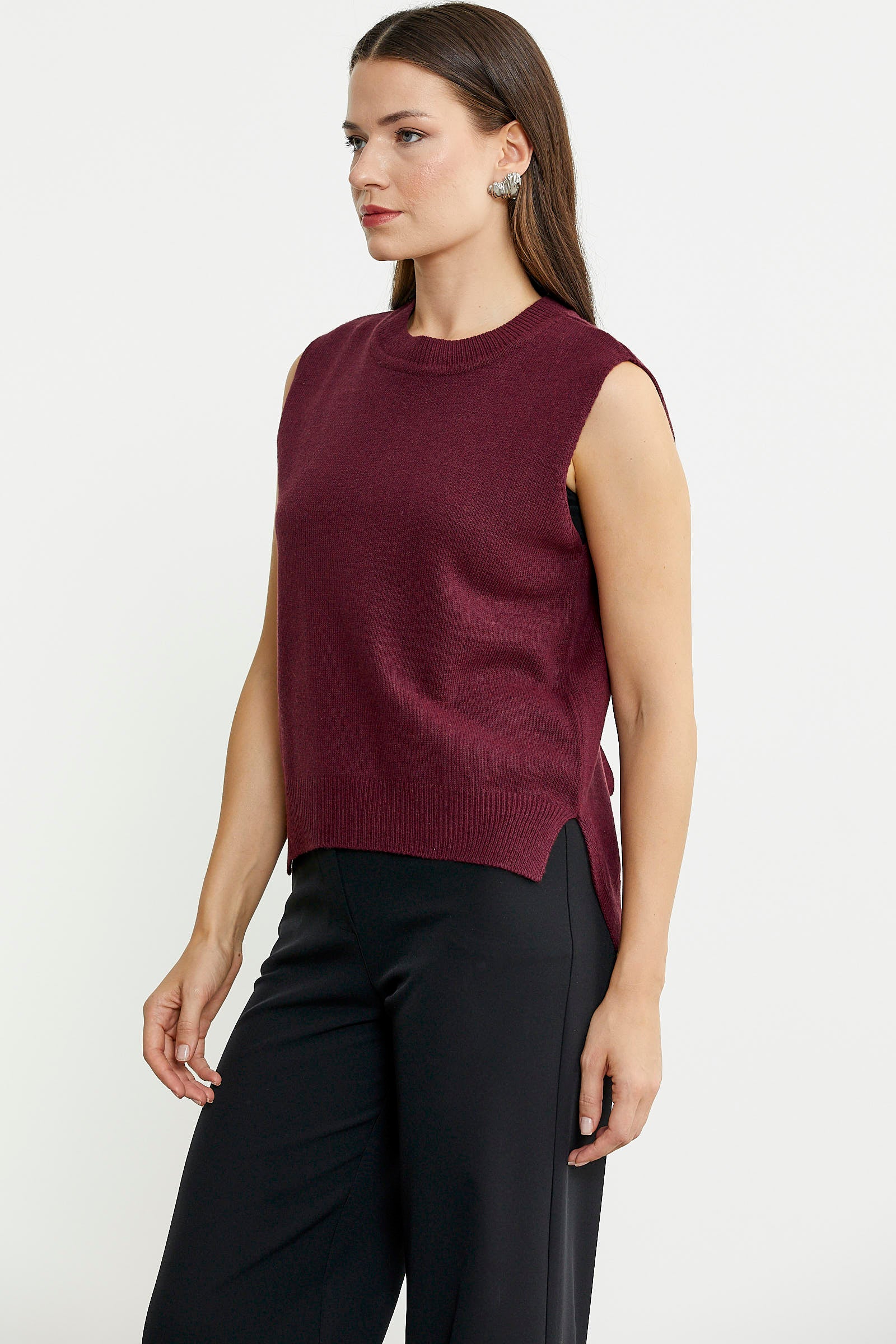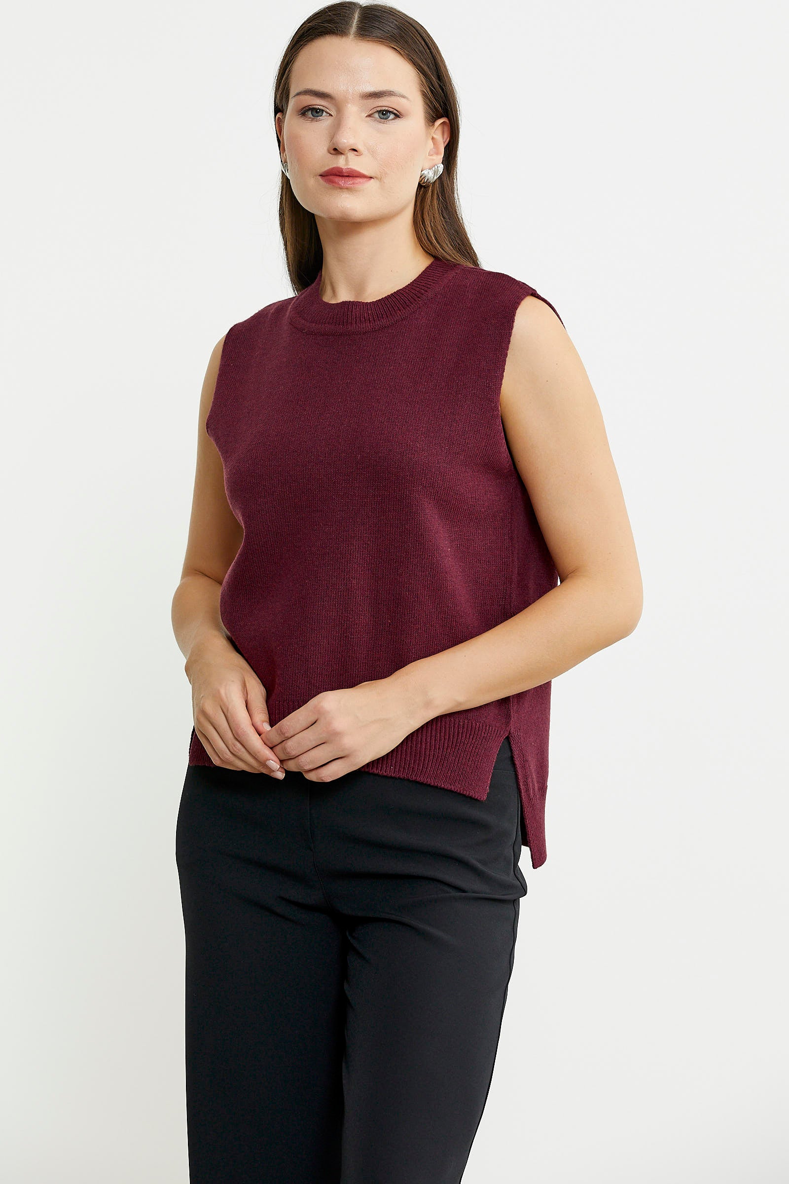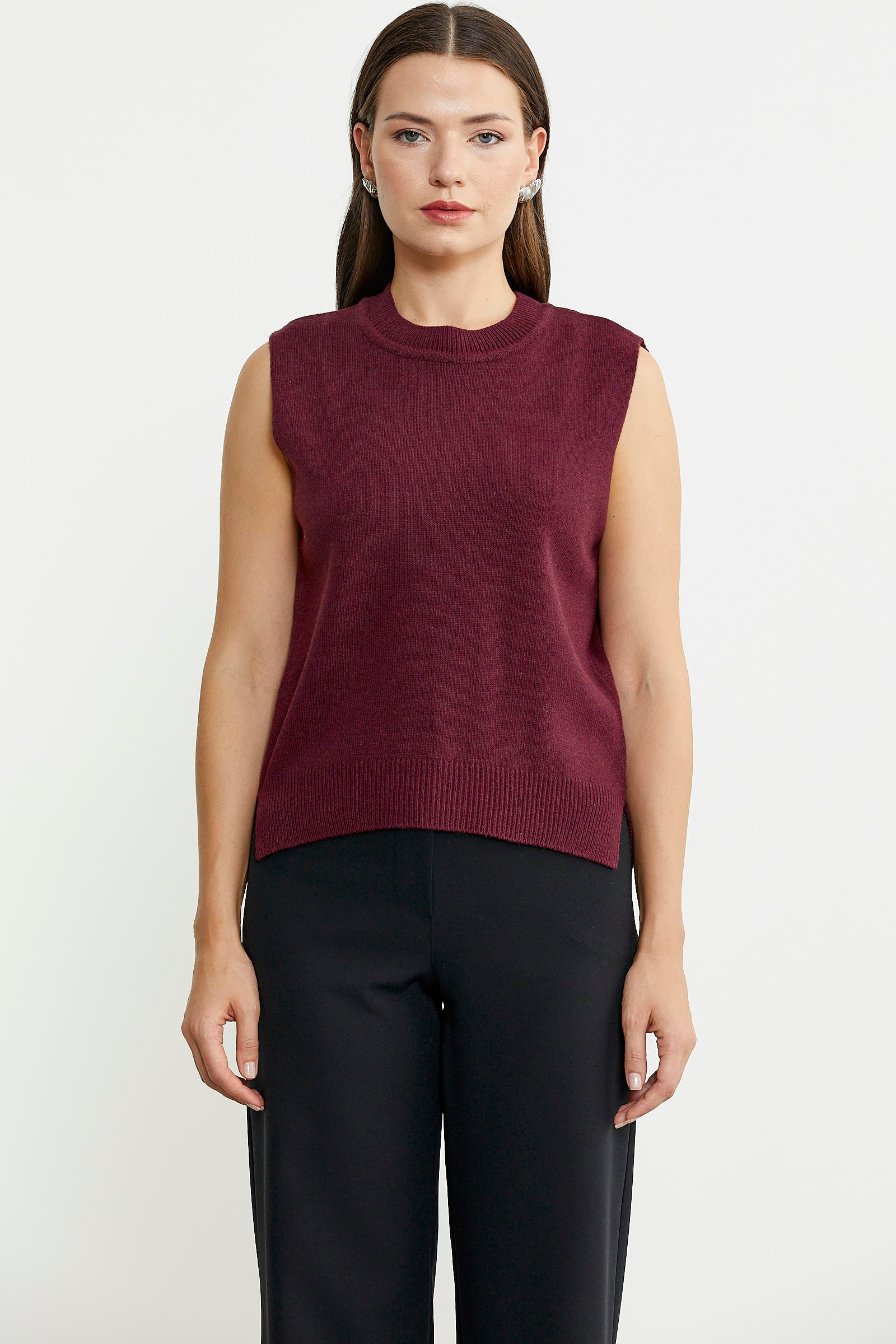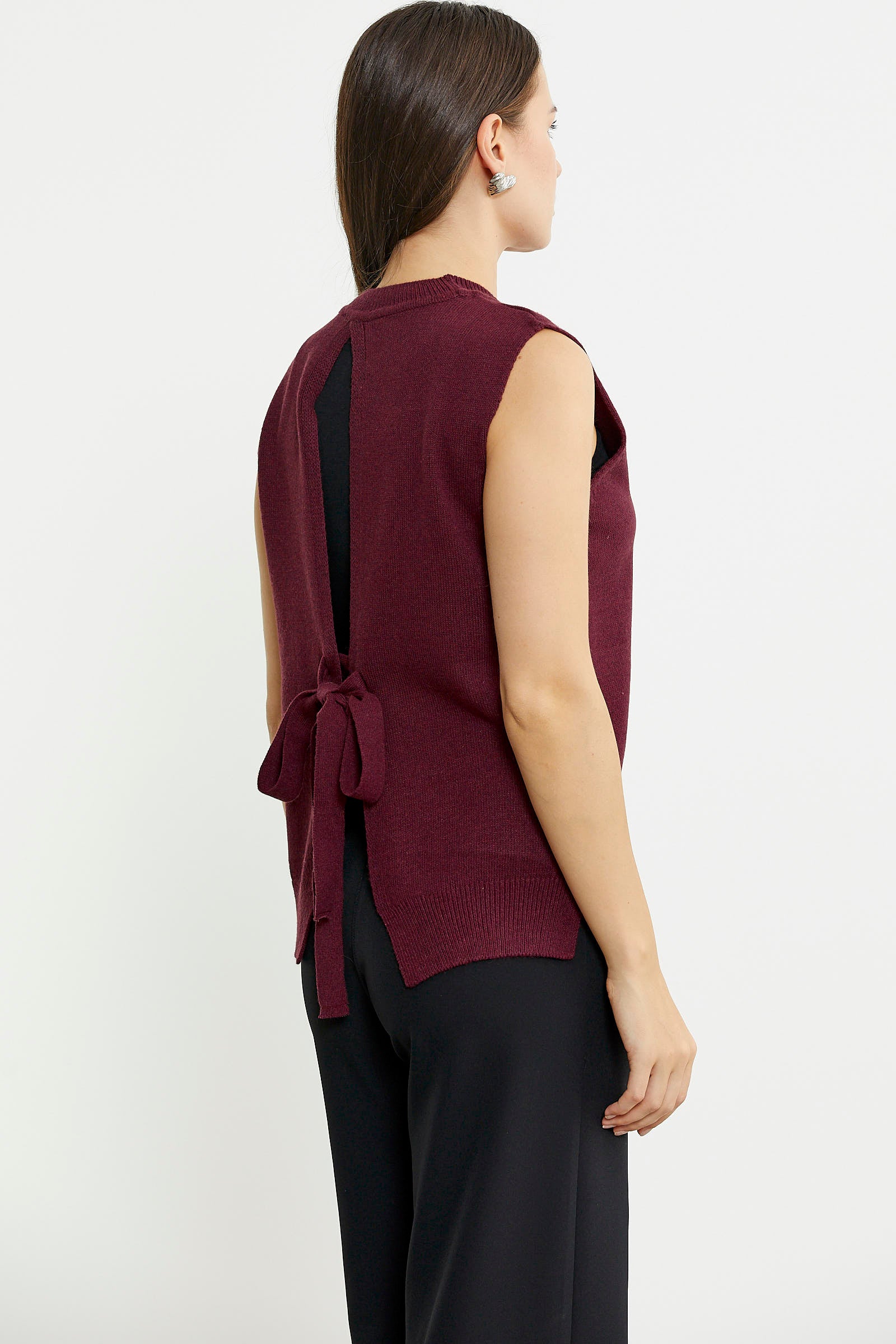 Arkası Açık Bağlamalı Yünlü Triko Süveter - Bordo