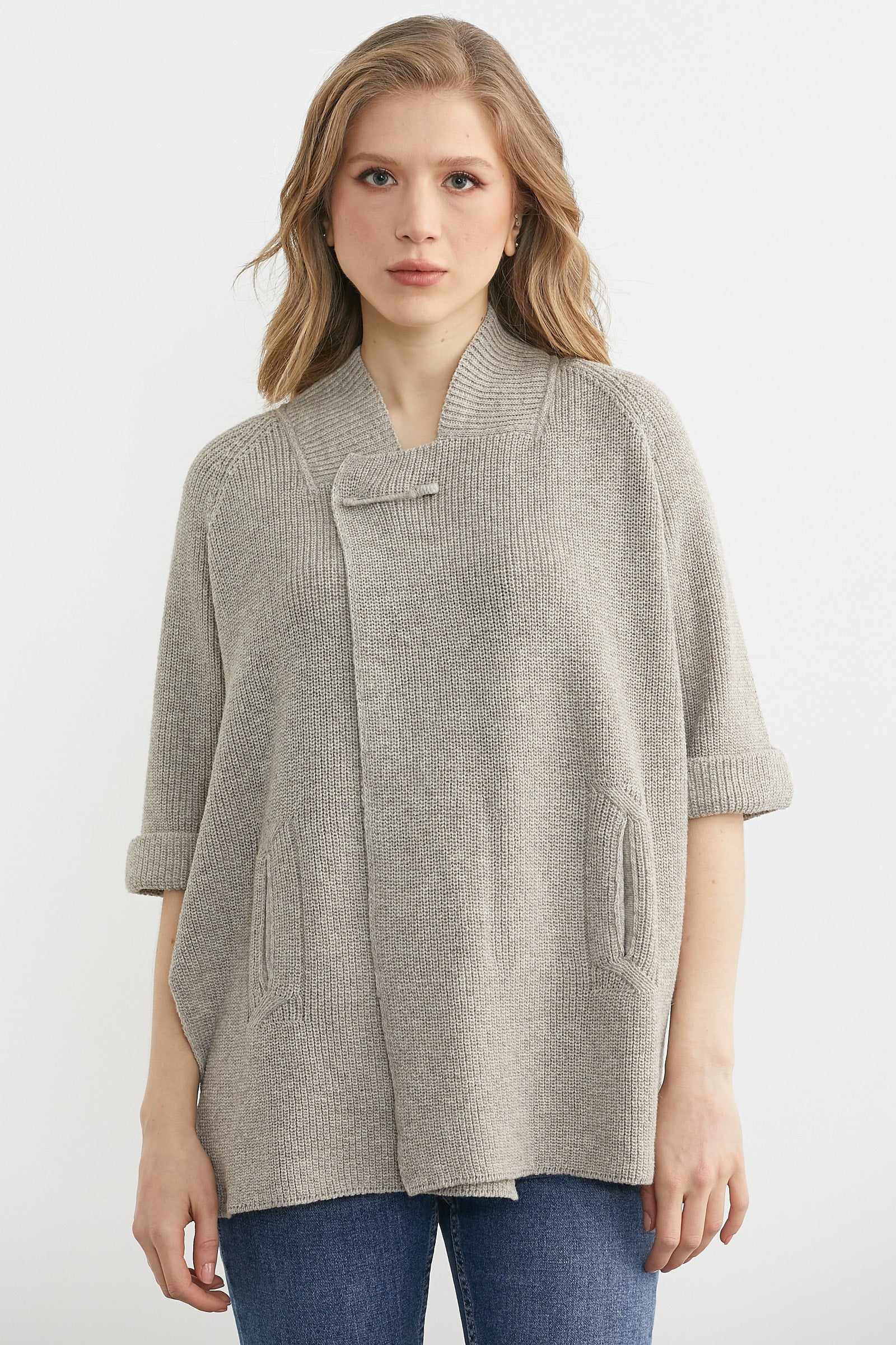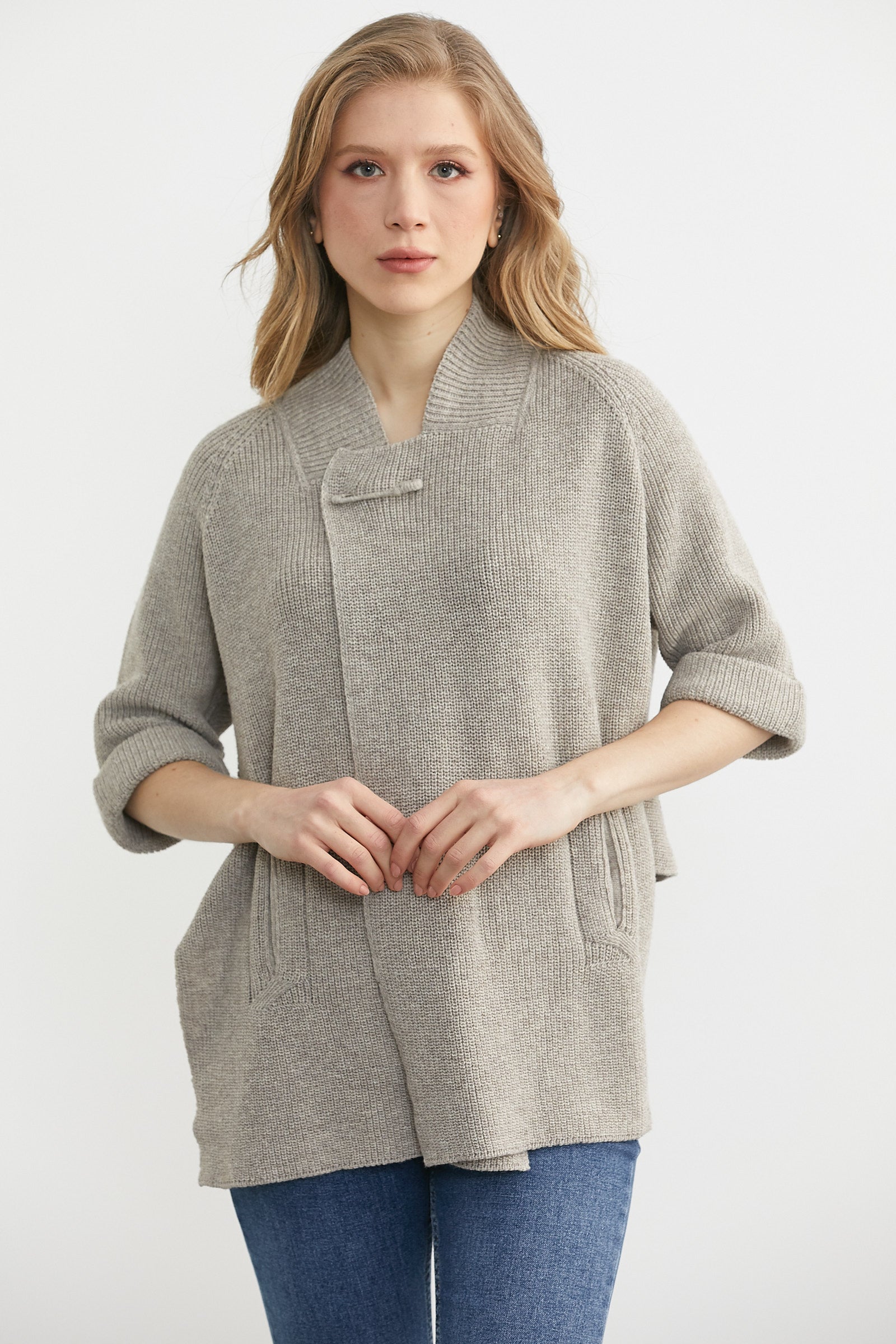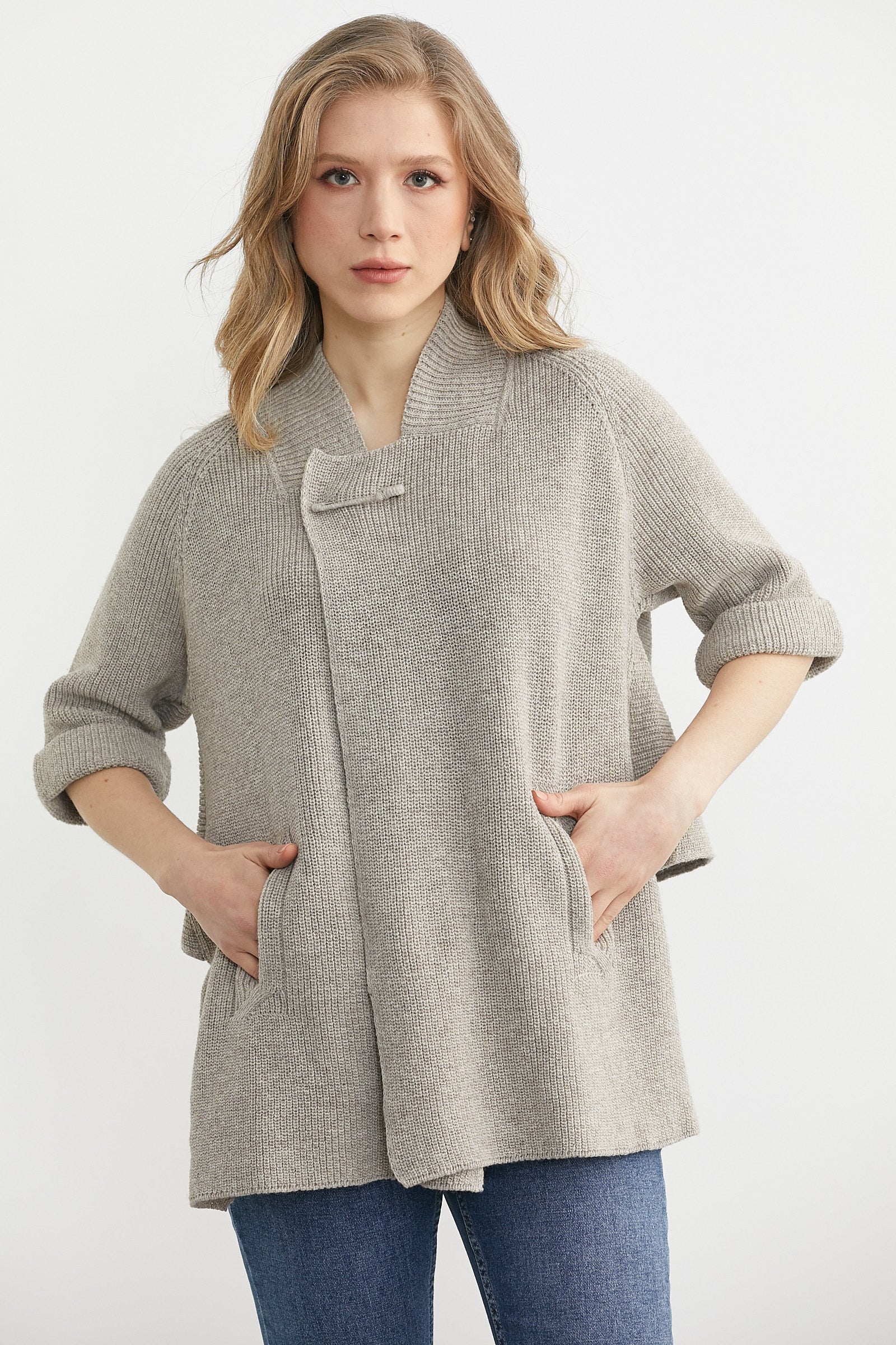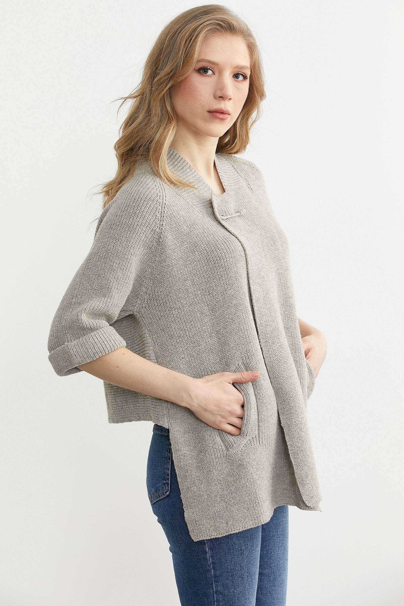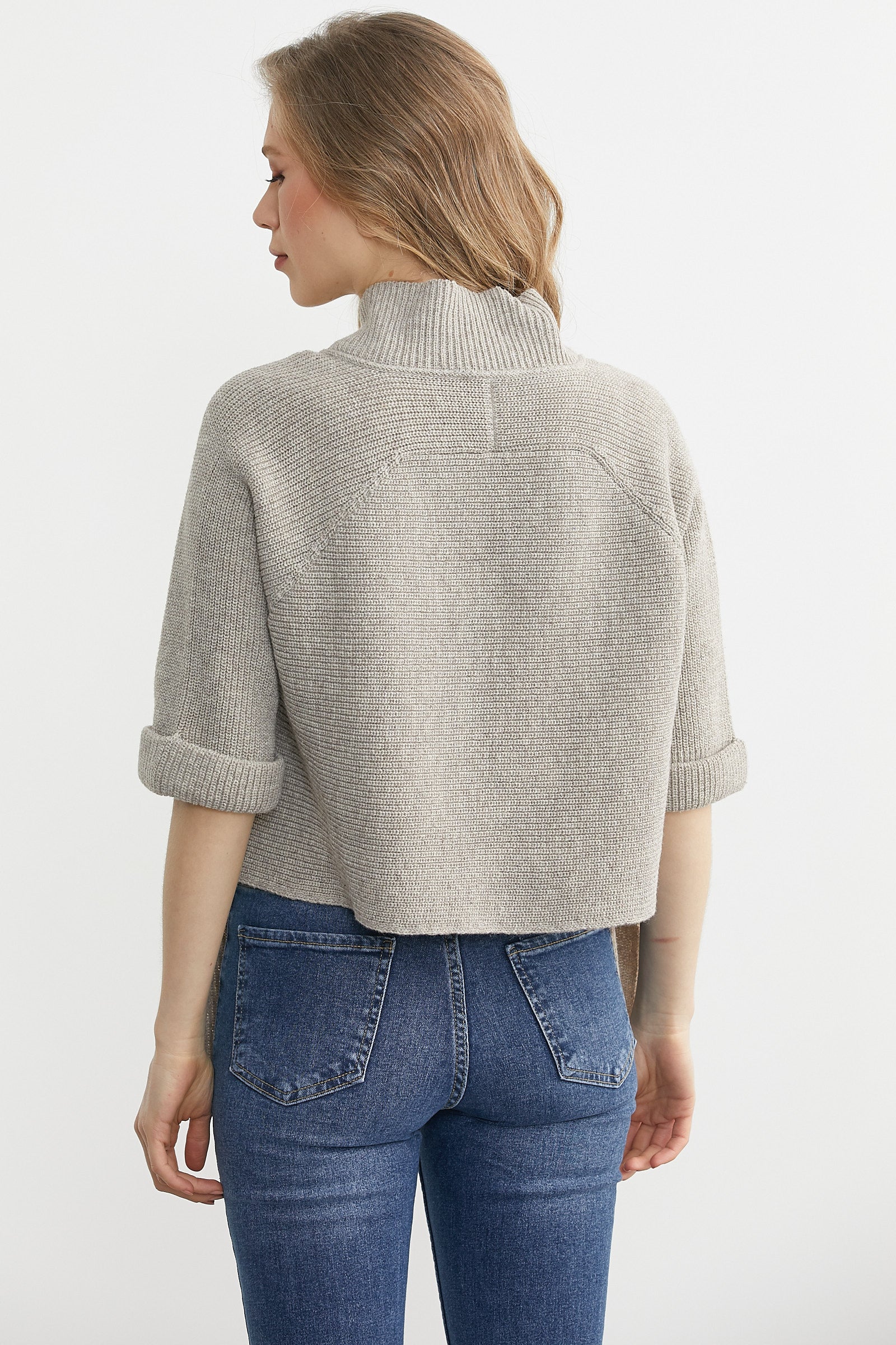 Arkası Kısa Cepli Yün Triko Ceket - Vizon