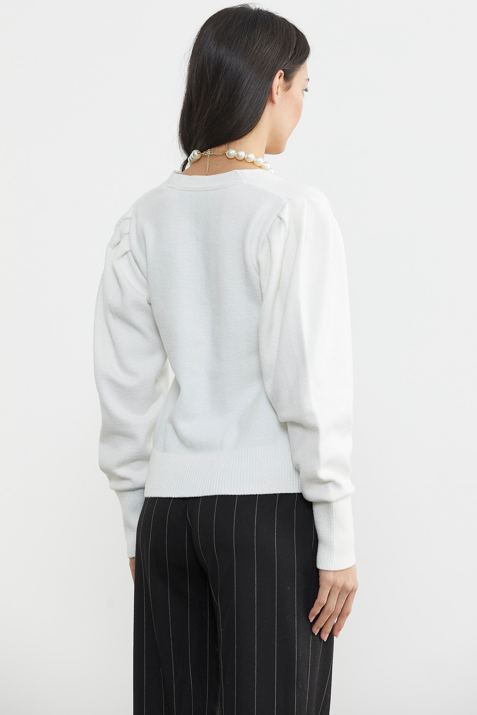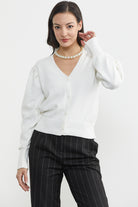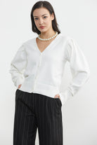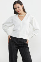 Balon Kol Basic Triko Hırka - Kemik