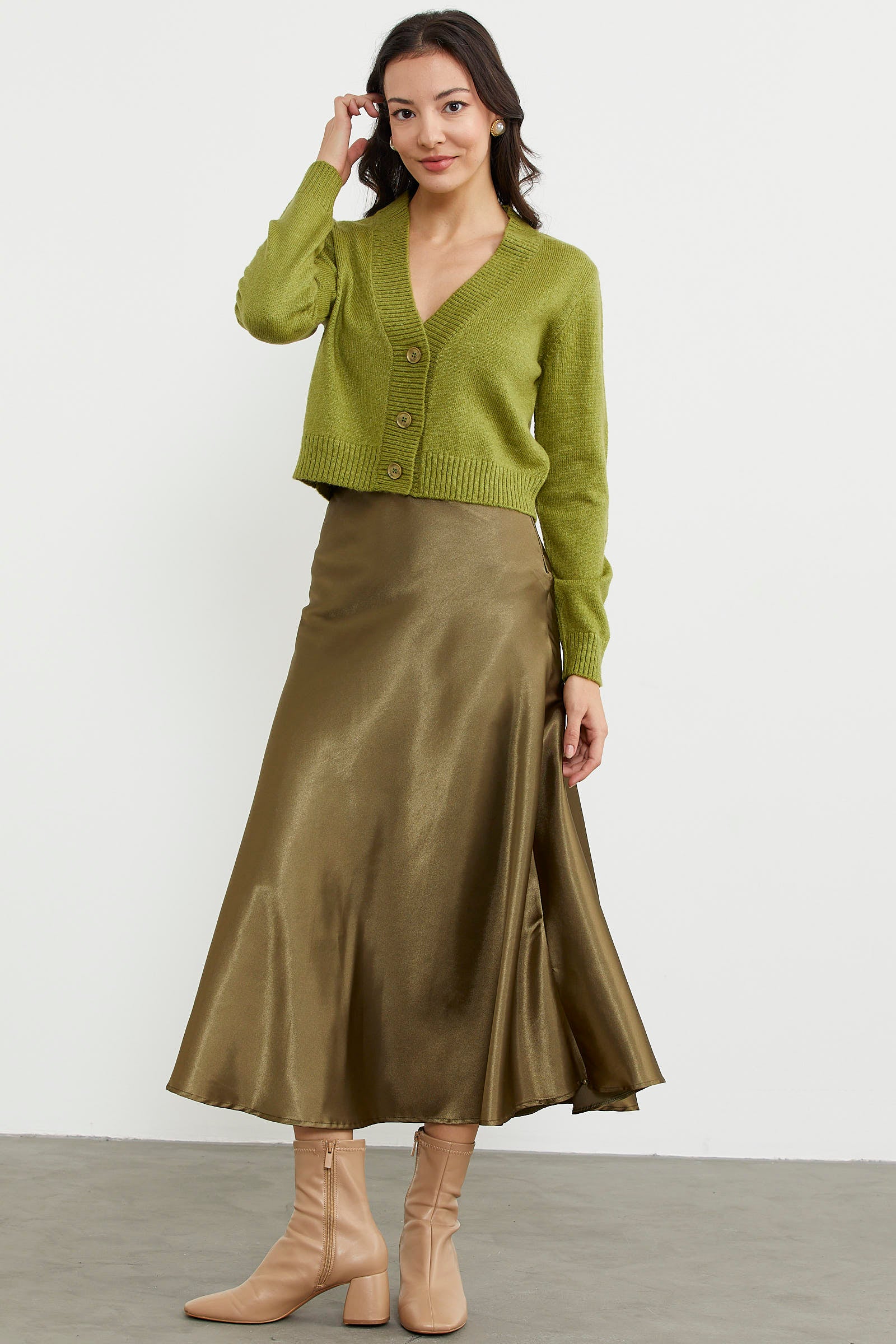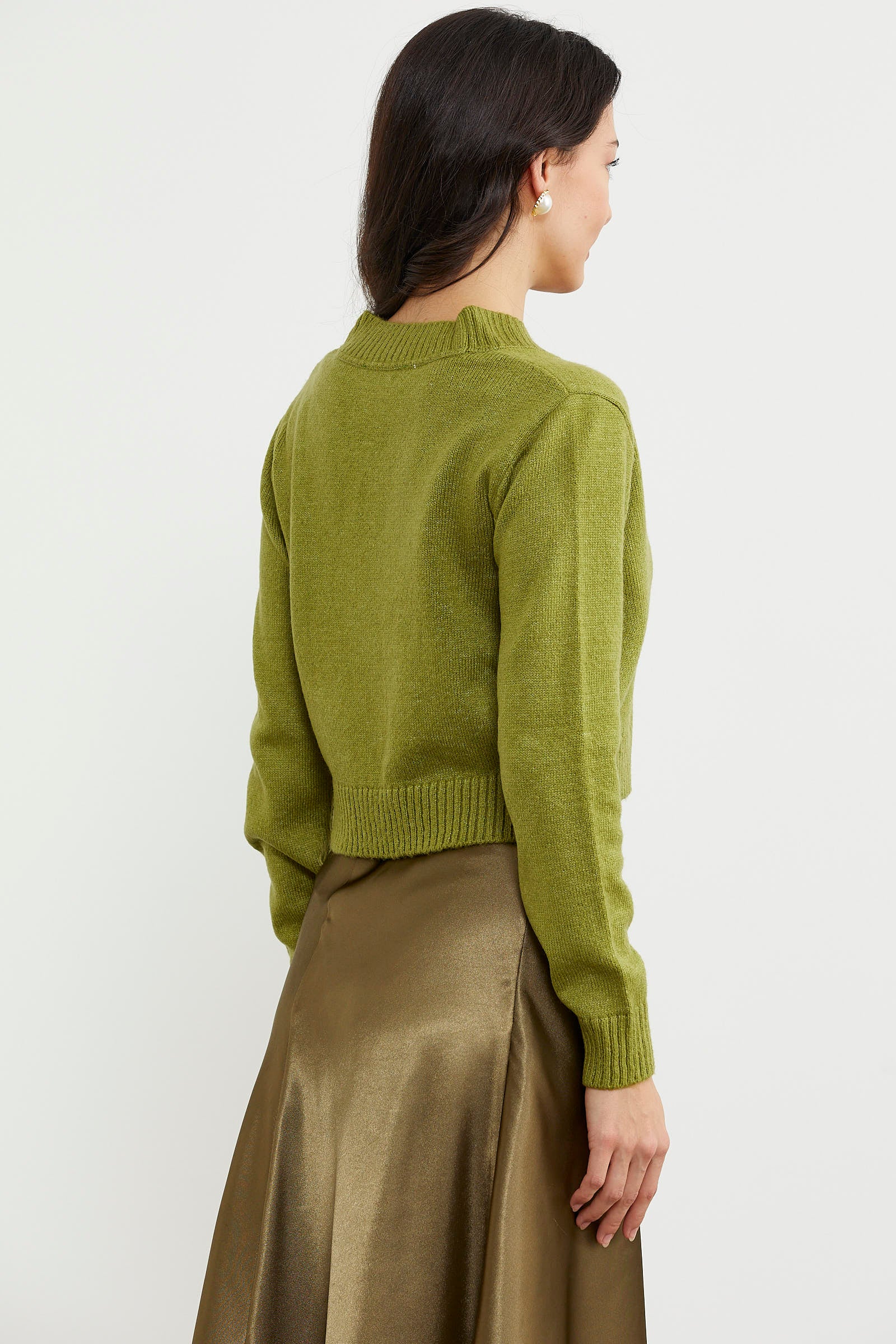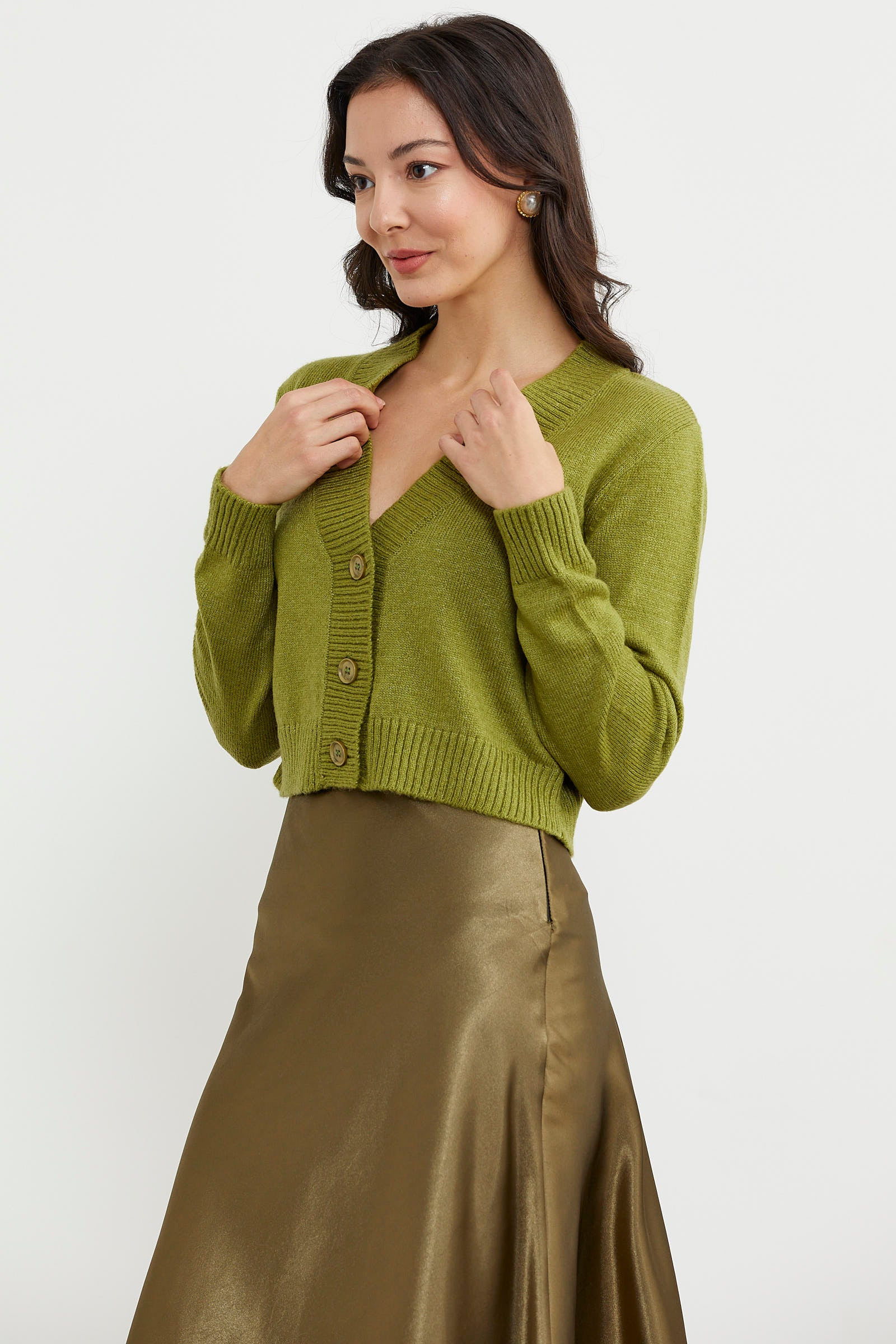 Basic Düğmeli Kısa Triko Hırka - Yeşil