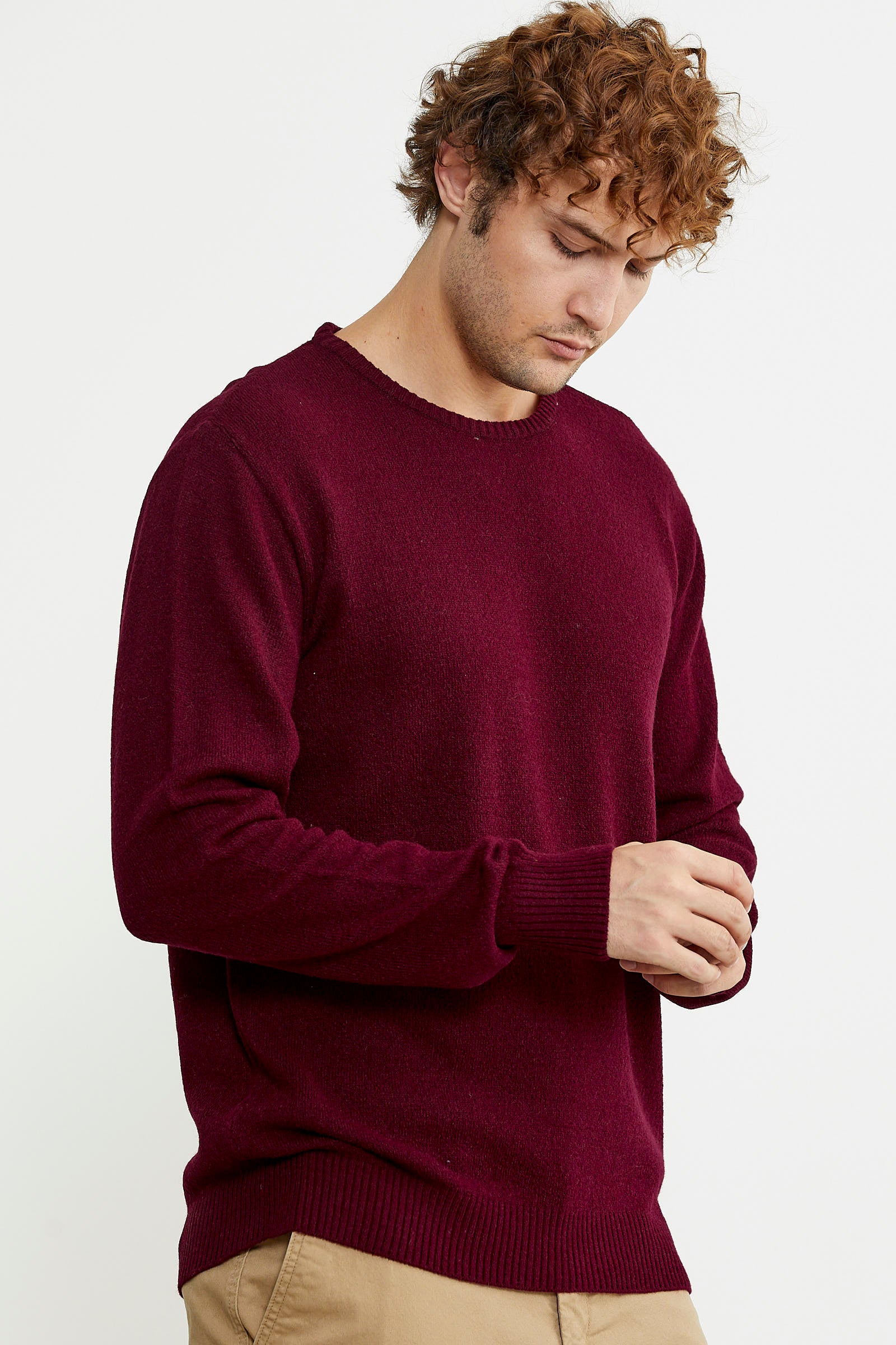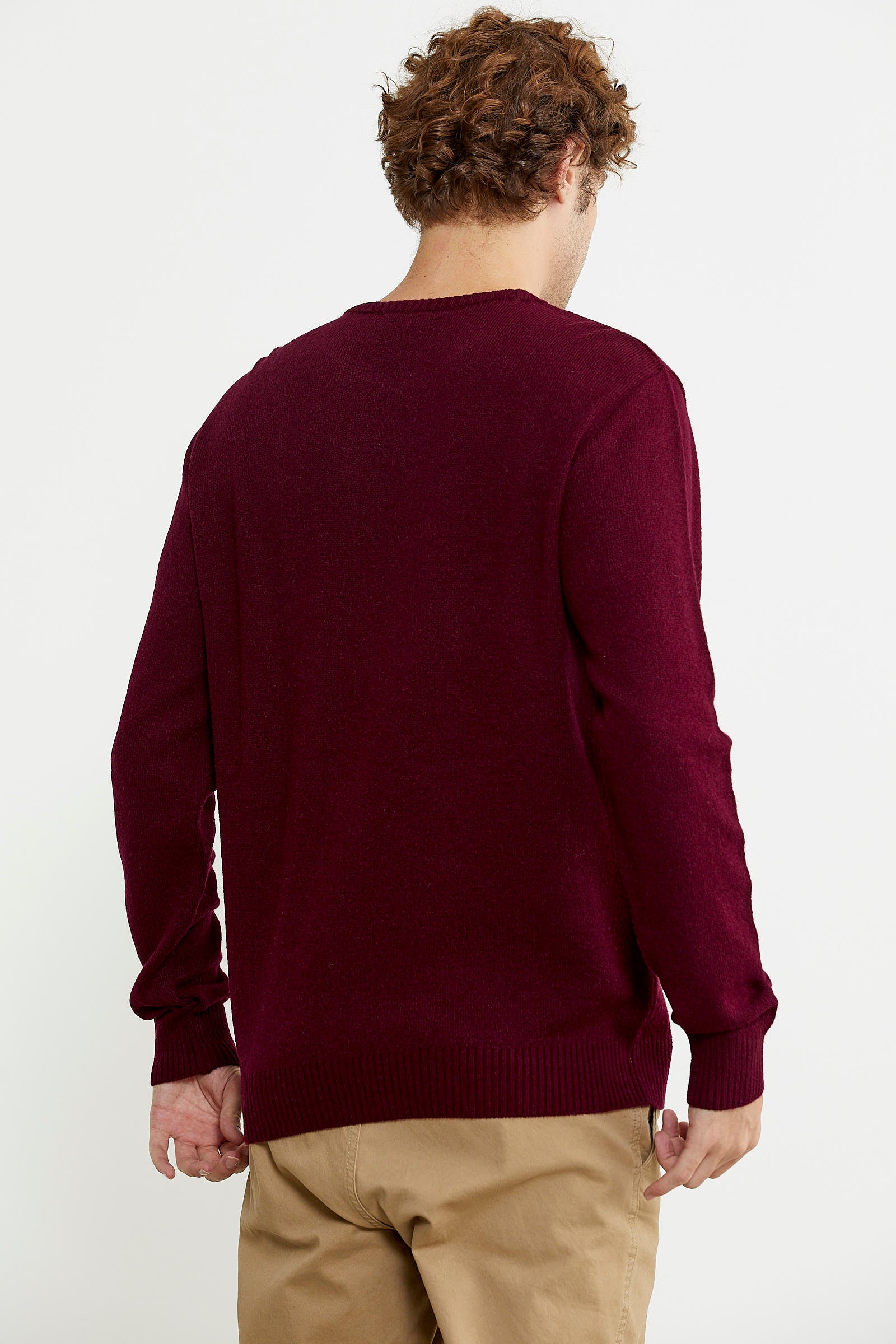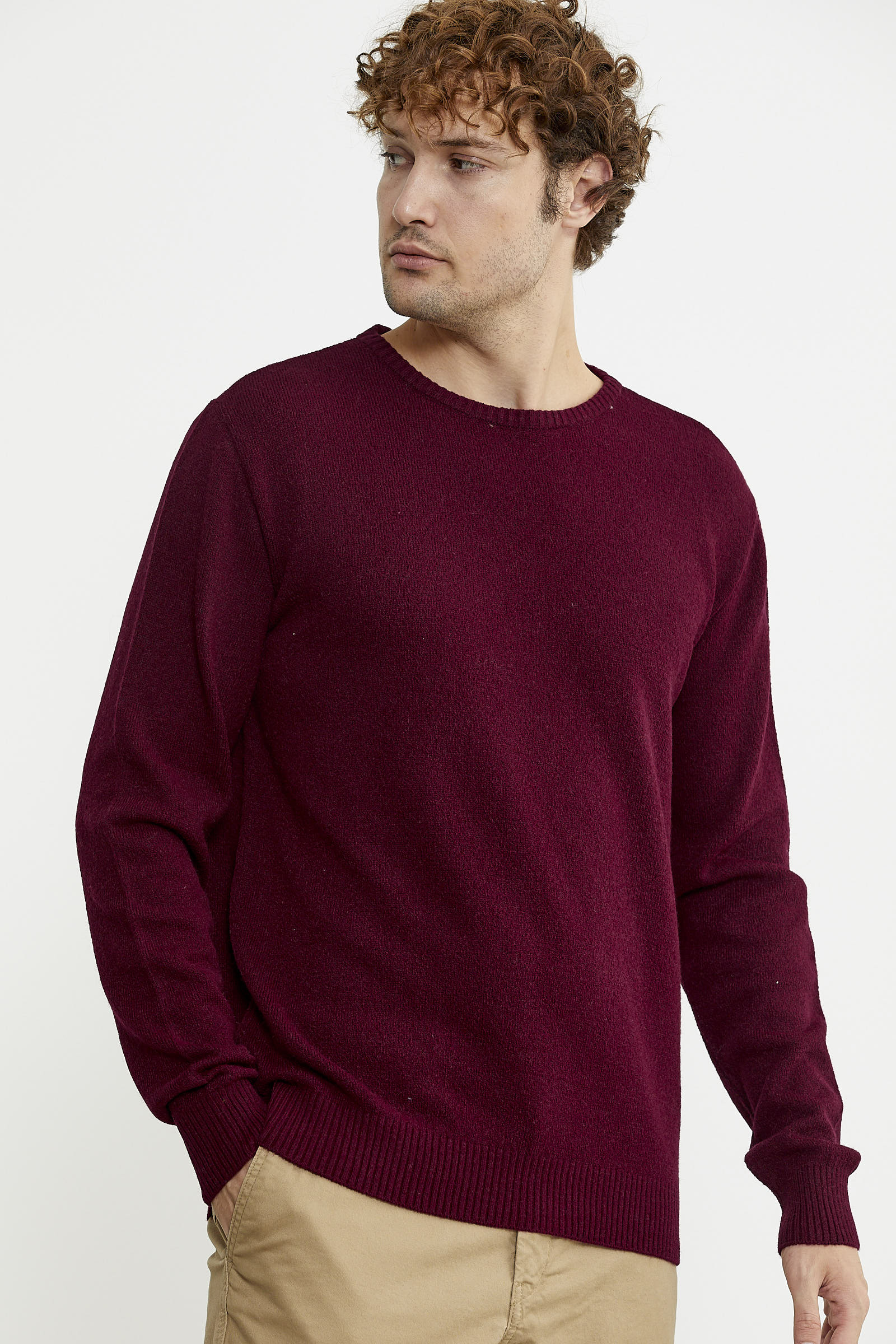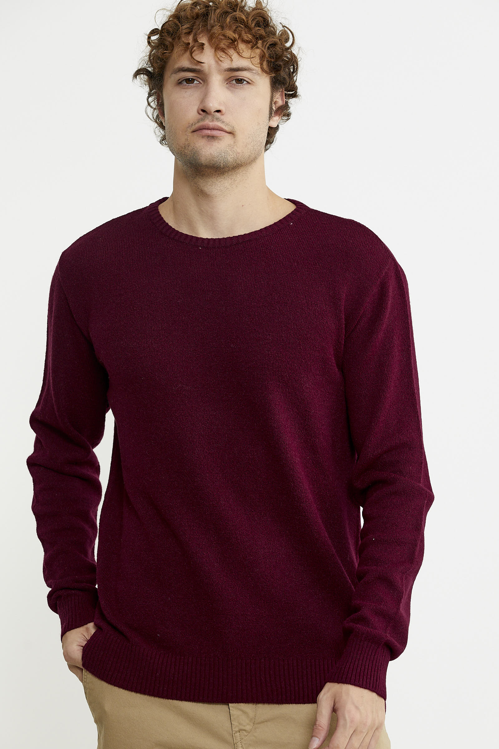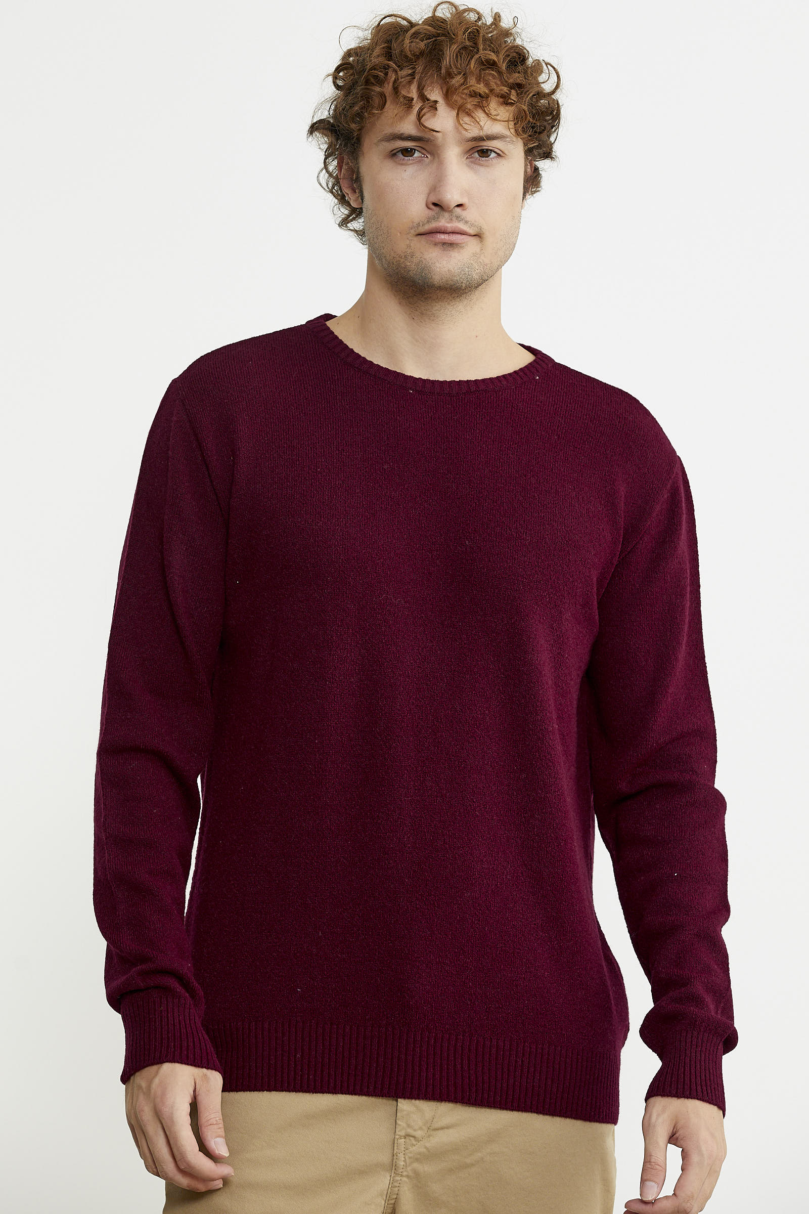 Basic Sıfır Yaka Triko Kazak - Bordo