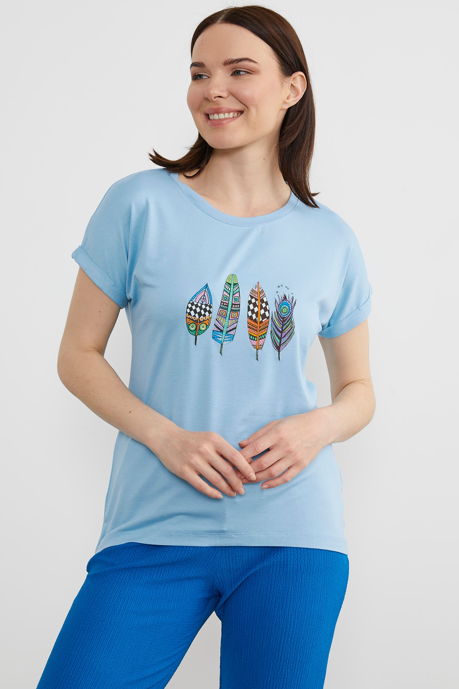 Sıfır yaka olarak tasarlanmış tişört yumuşak dokusuyla rahatlık sağlarken, baskı detaylarıyla kombinlerinizin kurtarıcı parçası olacak.