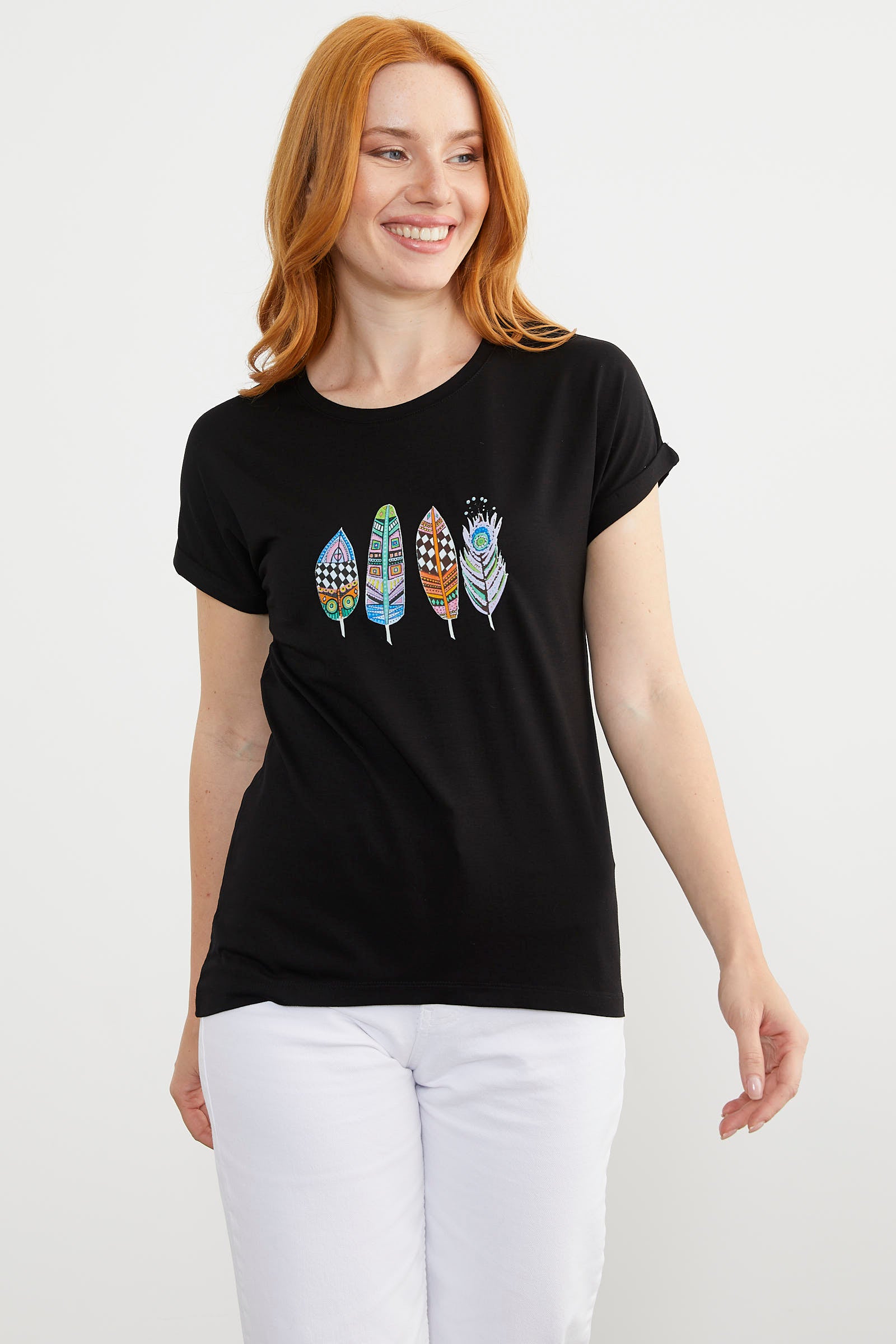 Sıfır yaka olarak tasarlanmış tişört yumuşak dokusuyla rahatlık sağlarken, baskı detaylarıyla kombinlerinizin kurtarıcı parçası olacak.