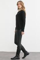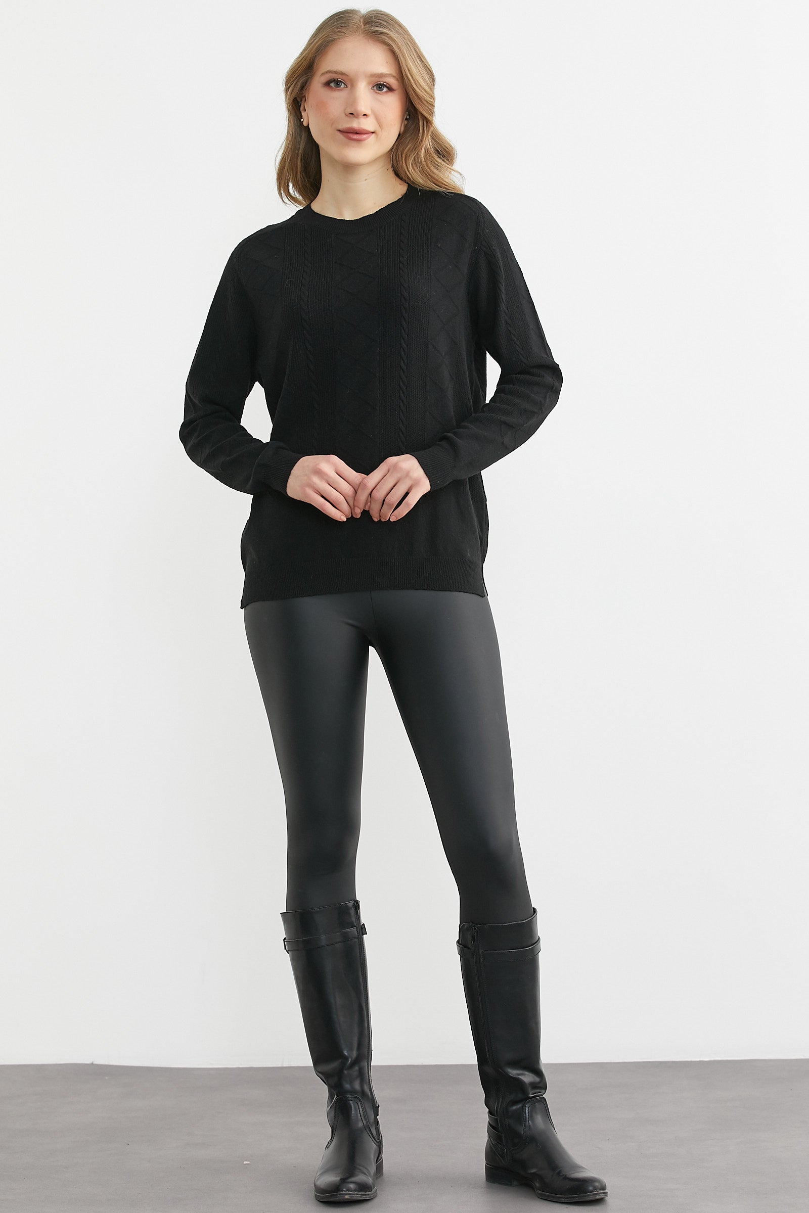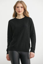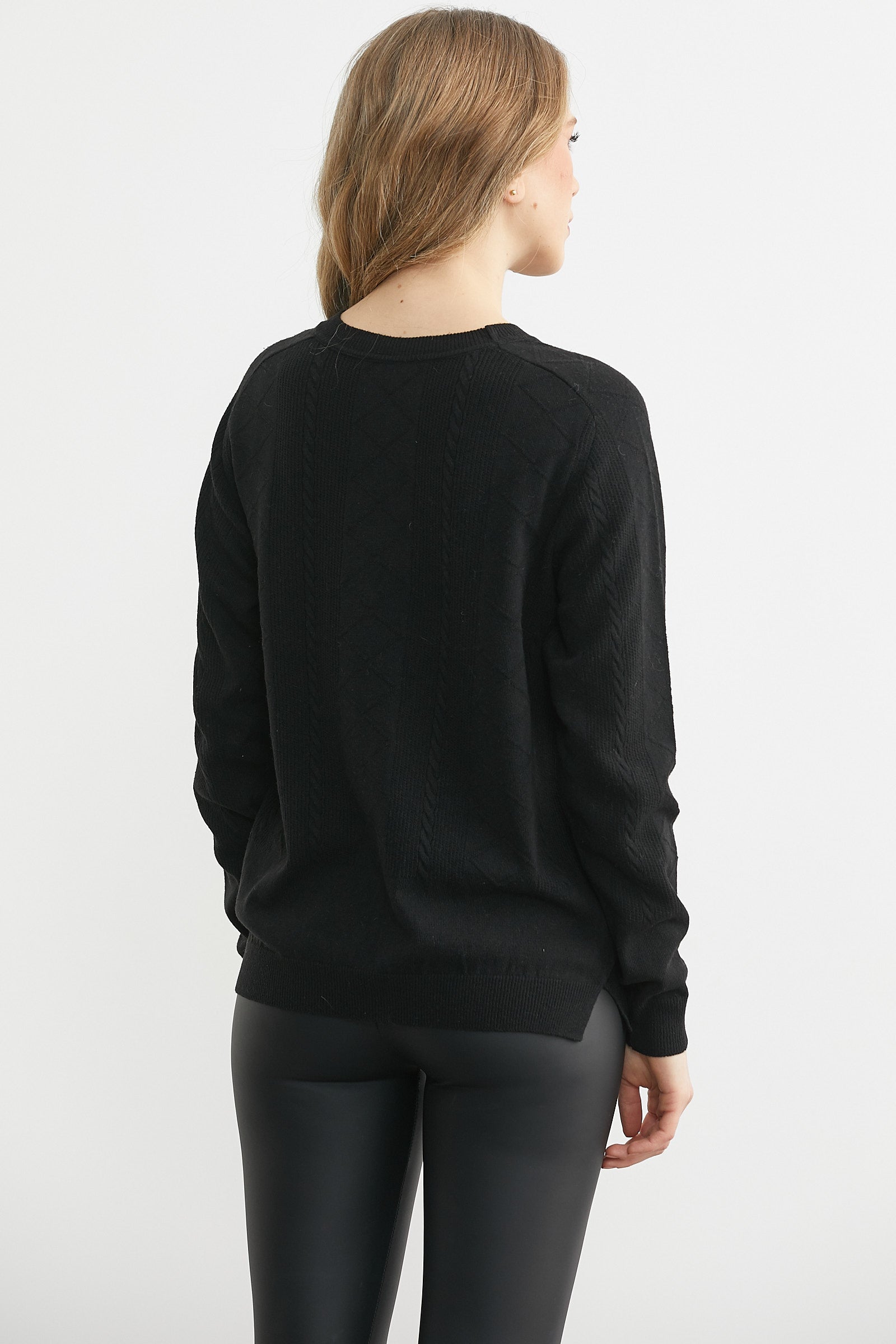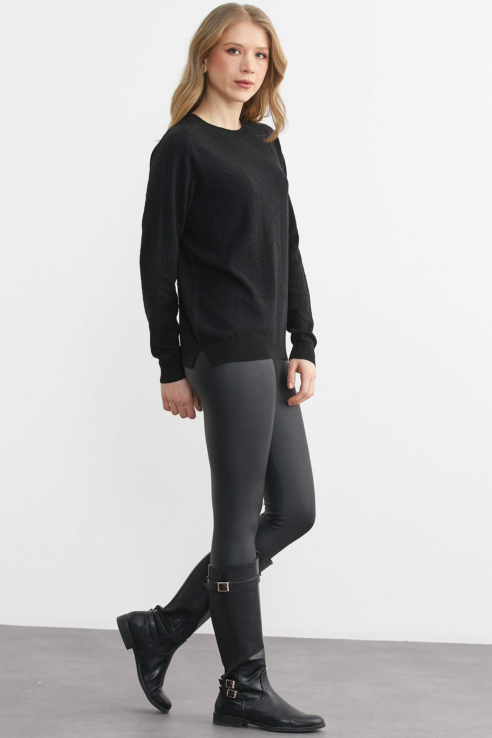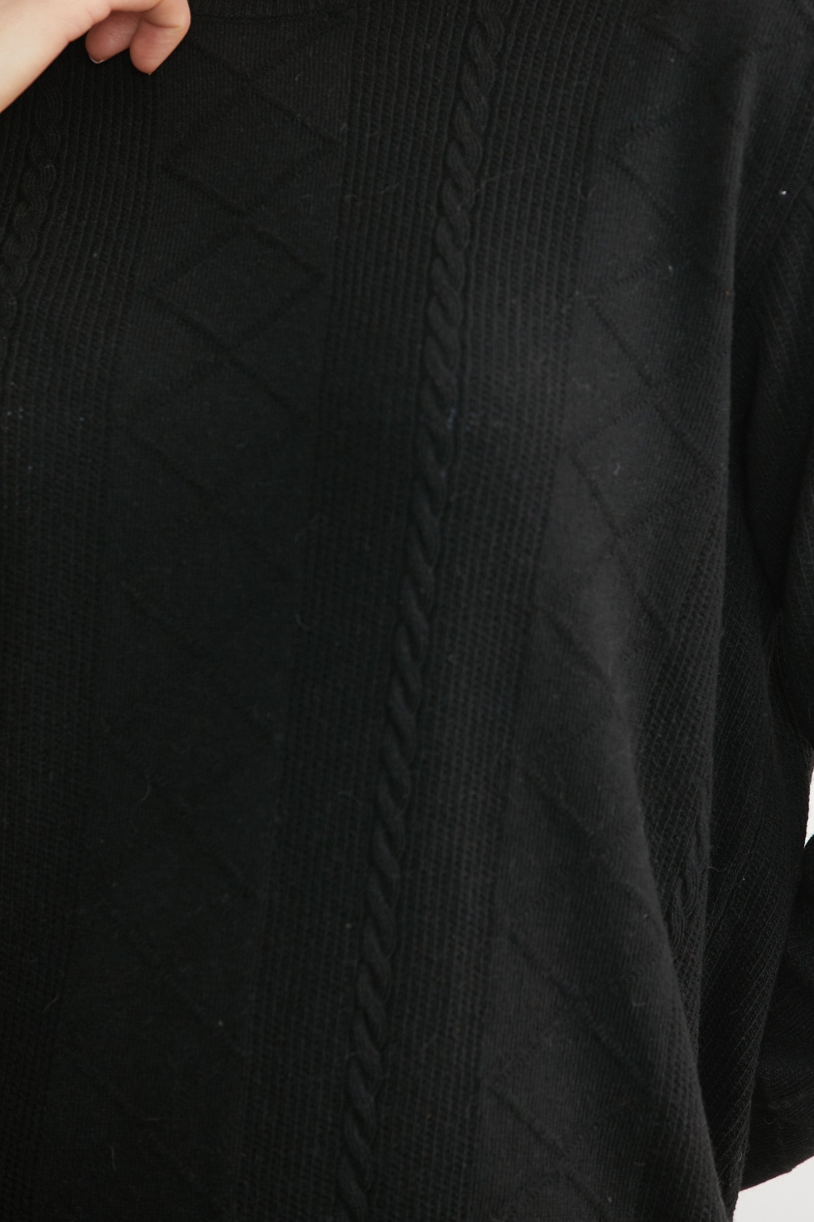 Bisiklet Yaka Motifli Yün Triko Kazak - Siyah