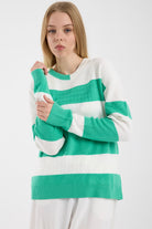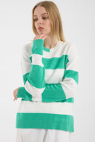 Blok Çizgili Düşük Omuzlu Triko Kazak - Yeşil