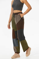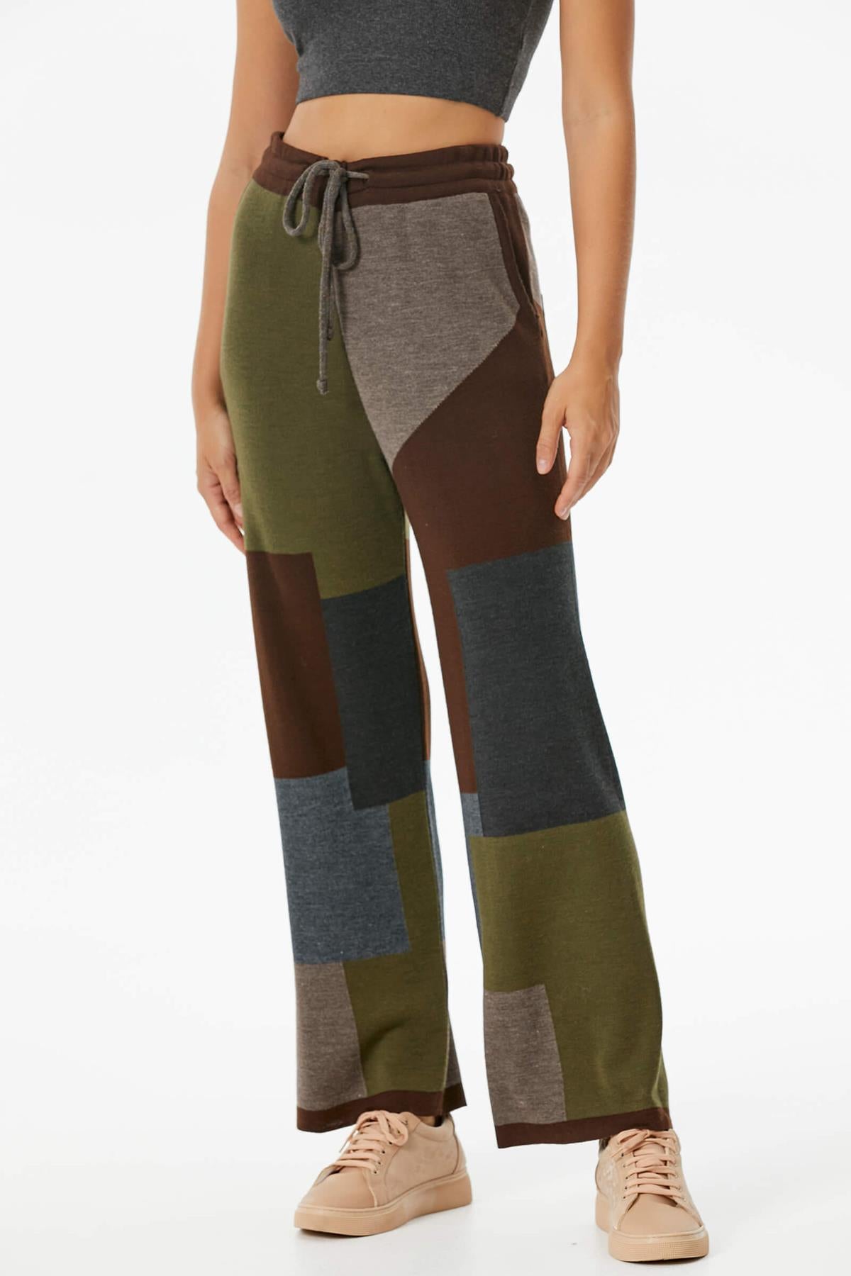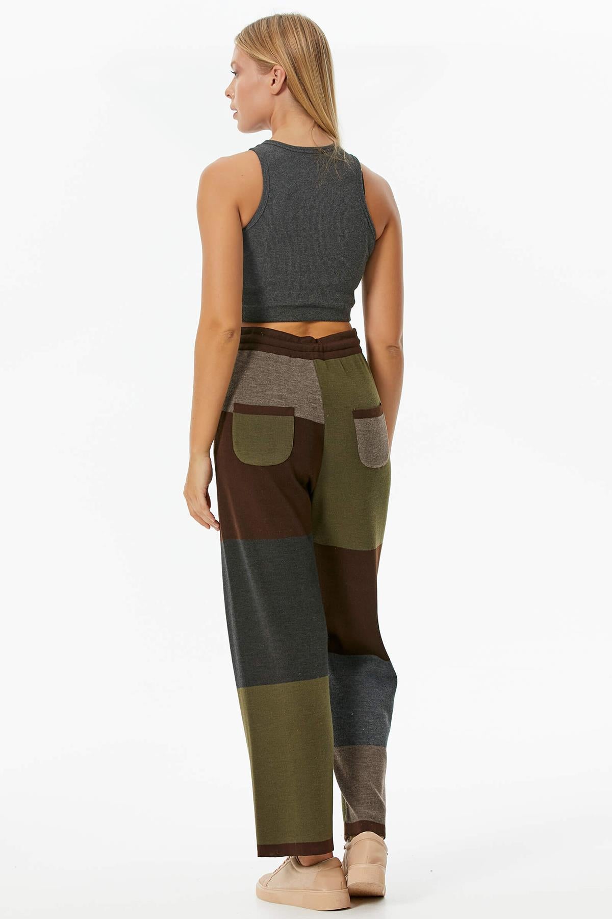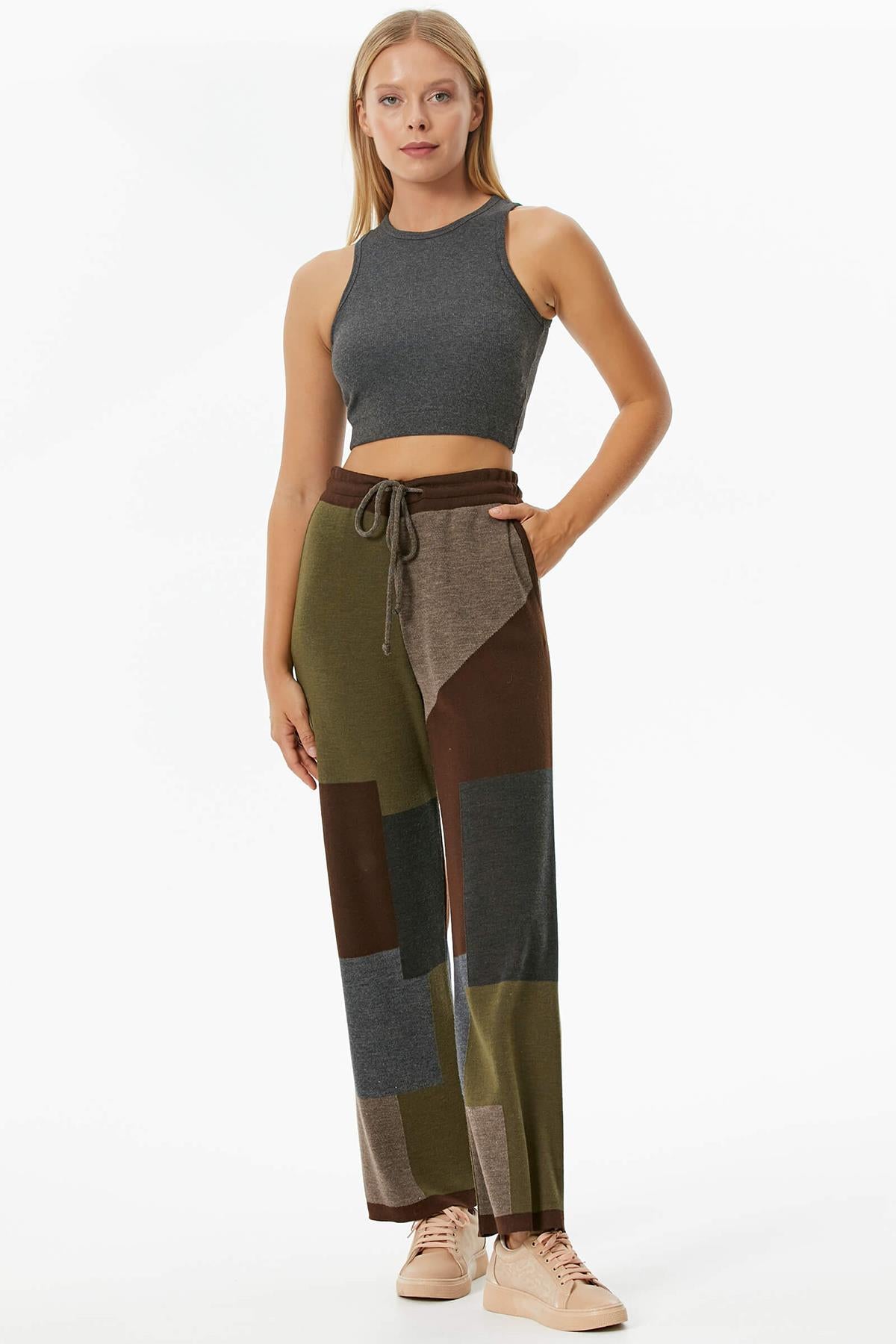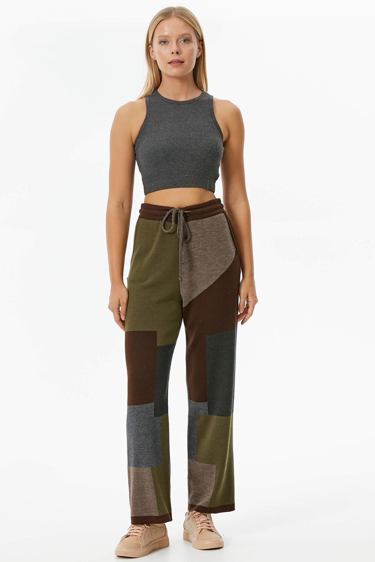 Blok Desenli Renkli Triko Pantolon - Kahve
