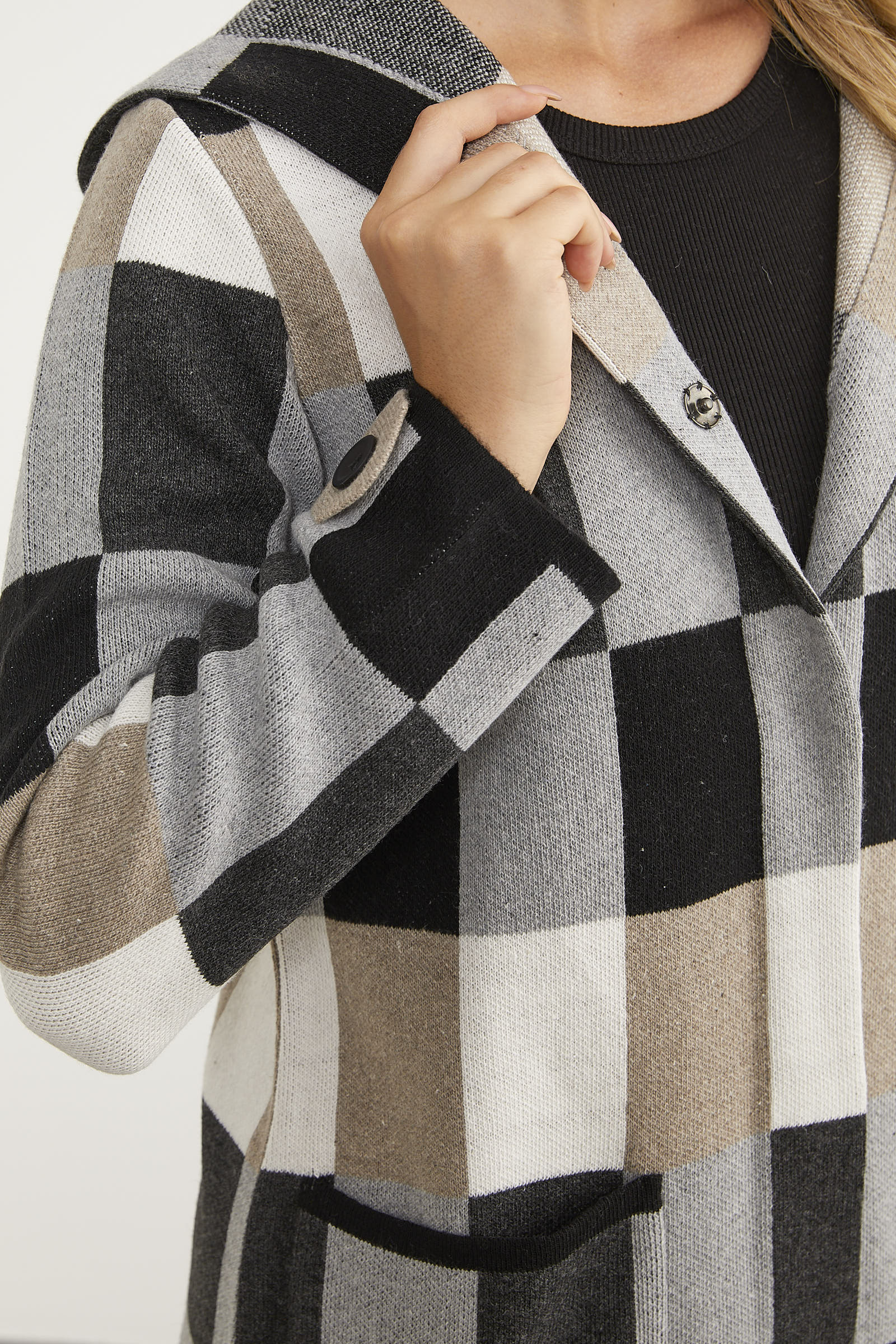 Blok Desenli Renkli Uzun Hırka - Siyah