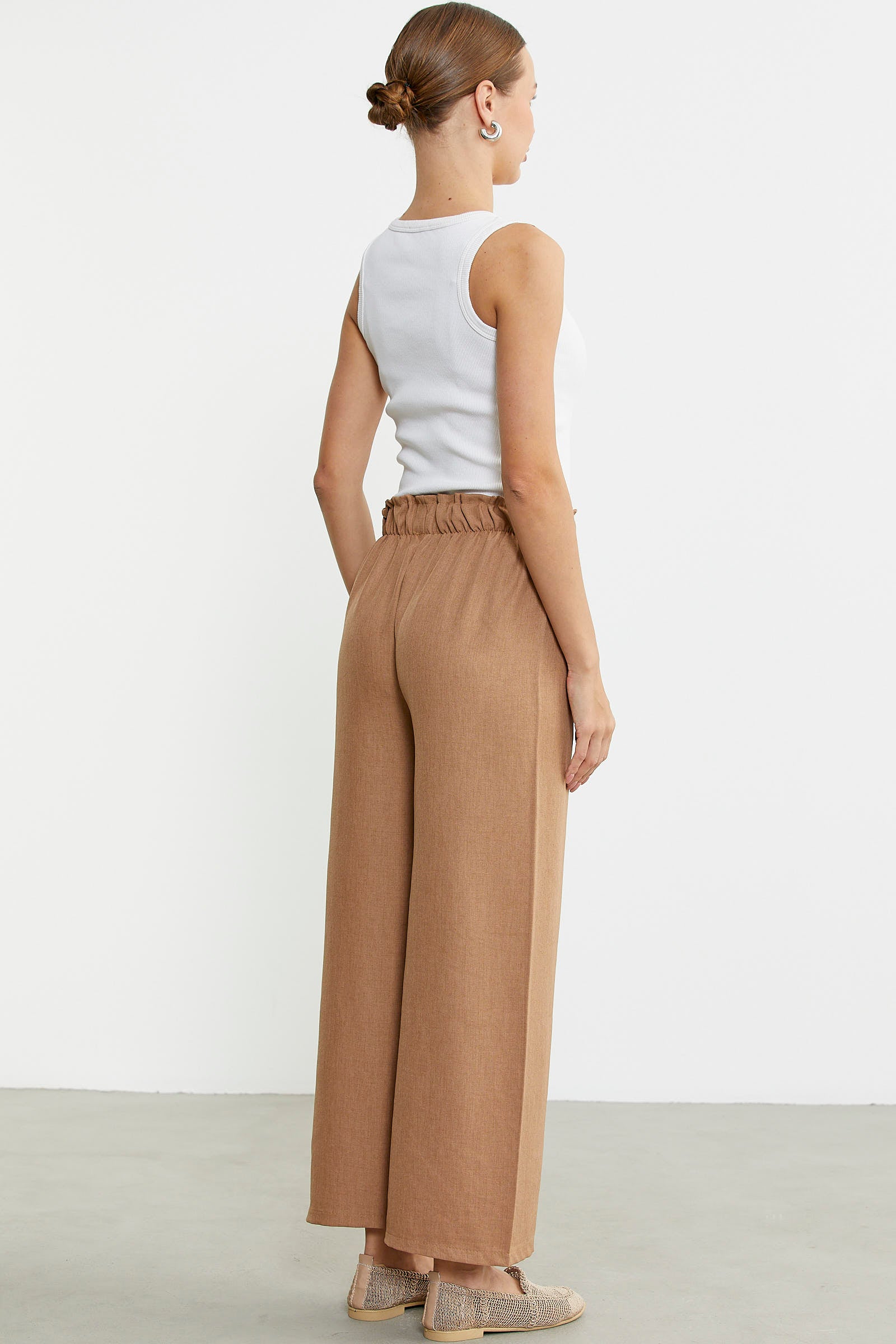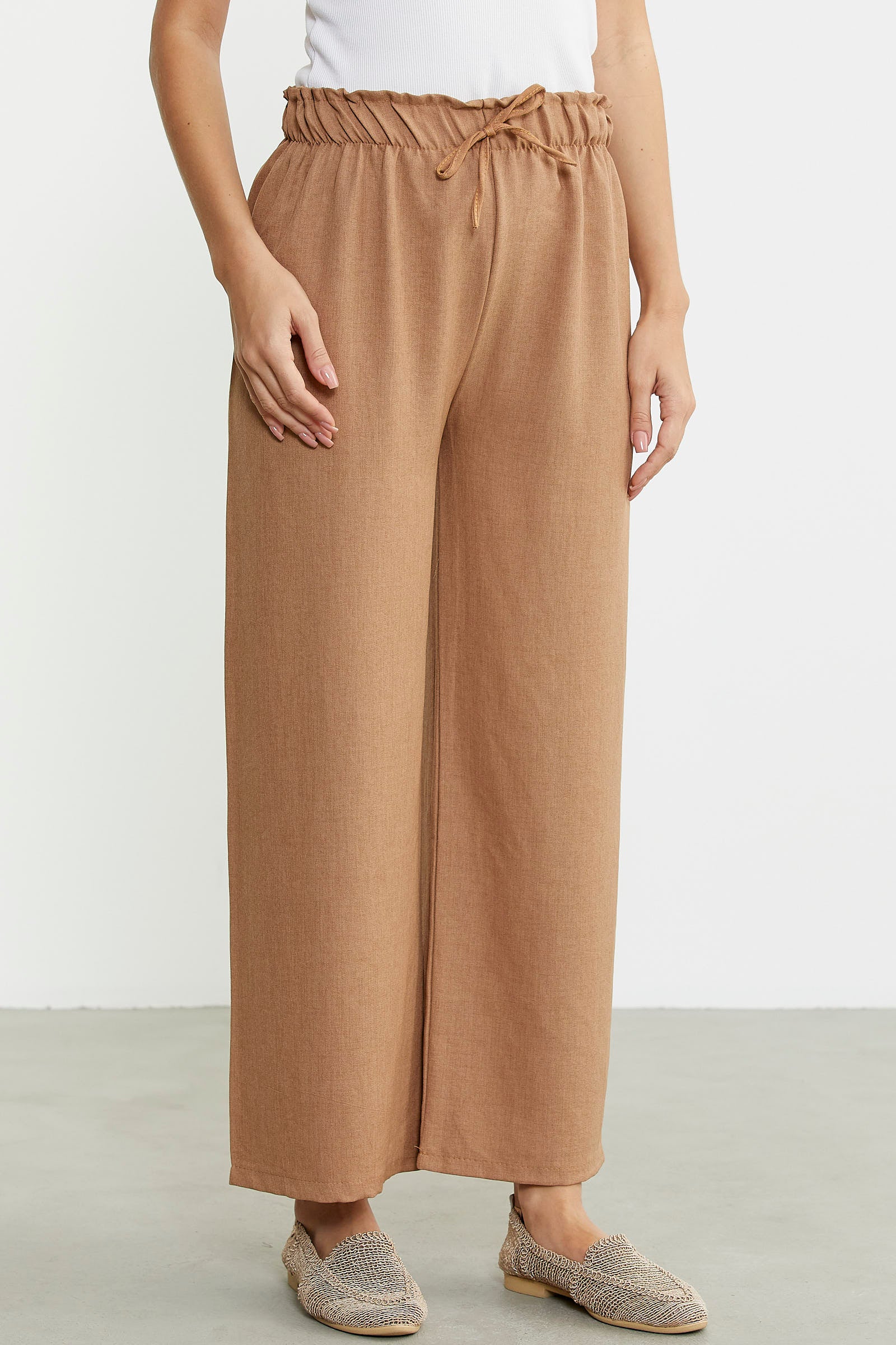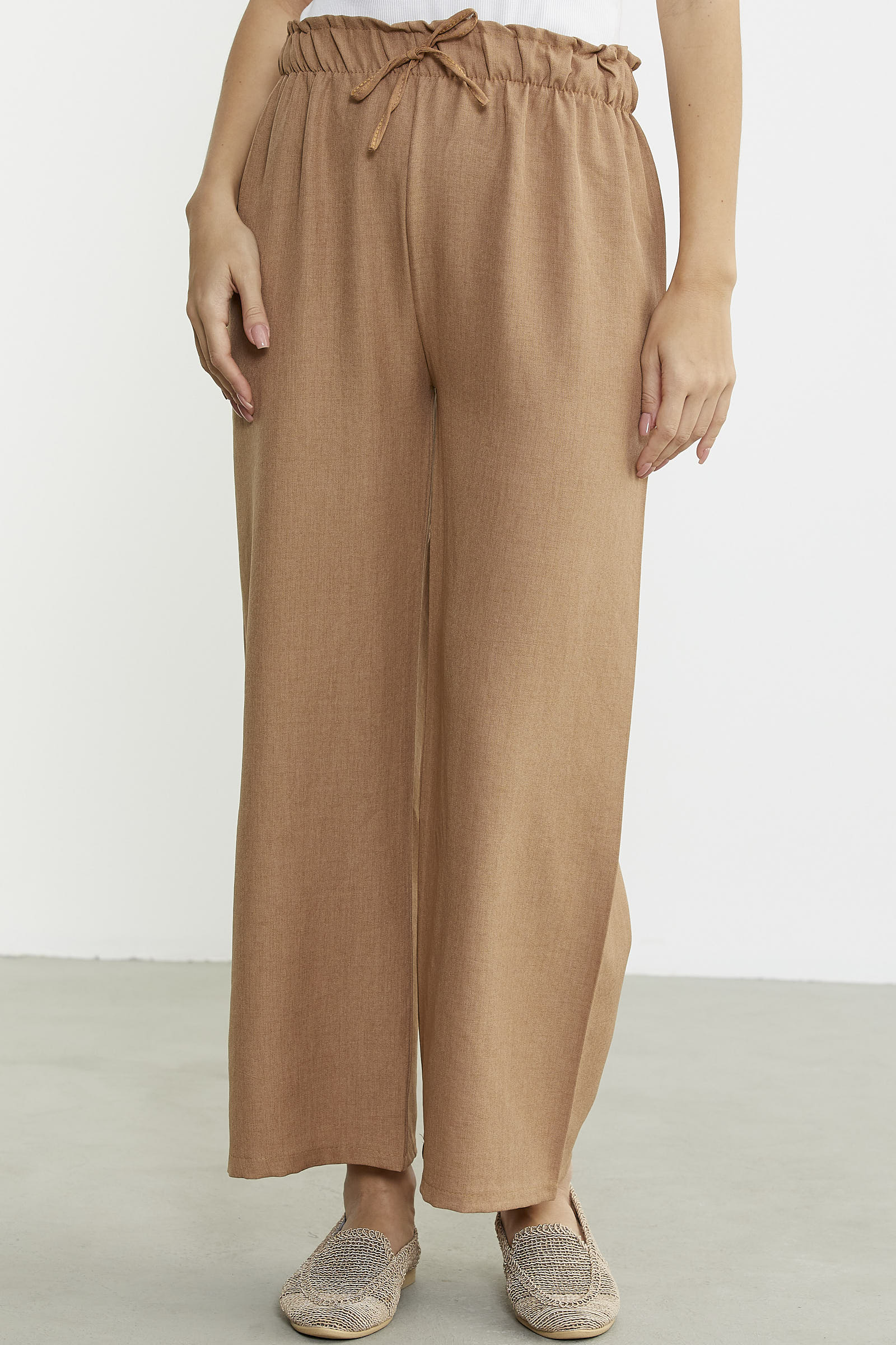Bol Paça Beli Lastikli Pantolon - Kamel