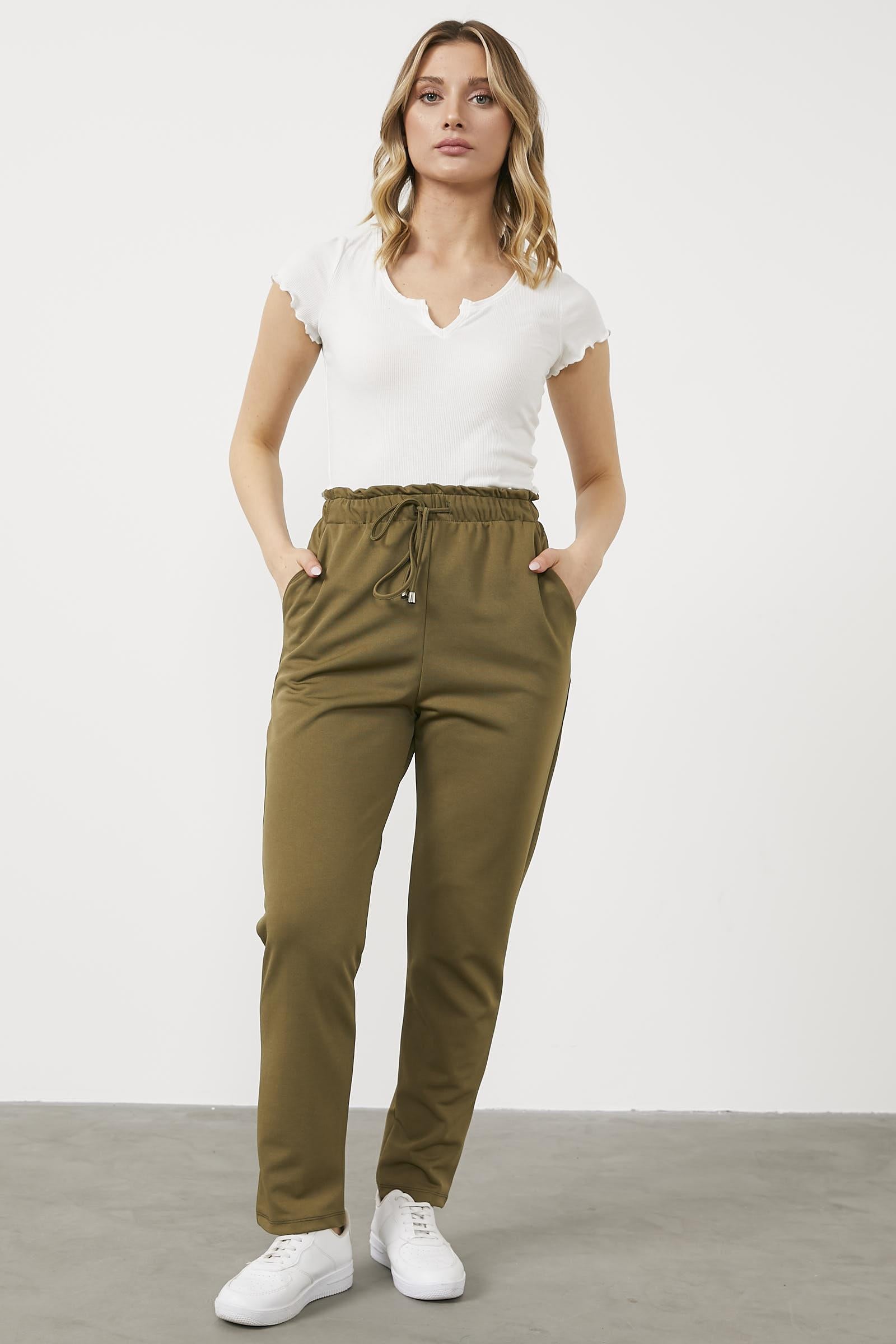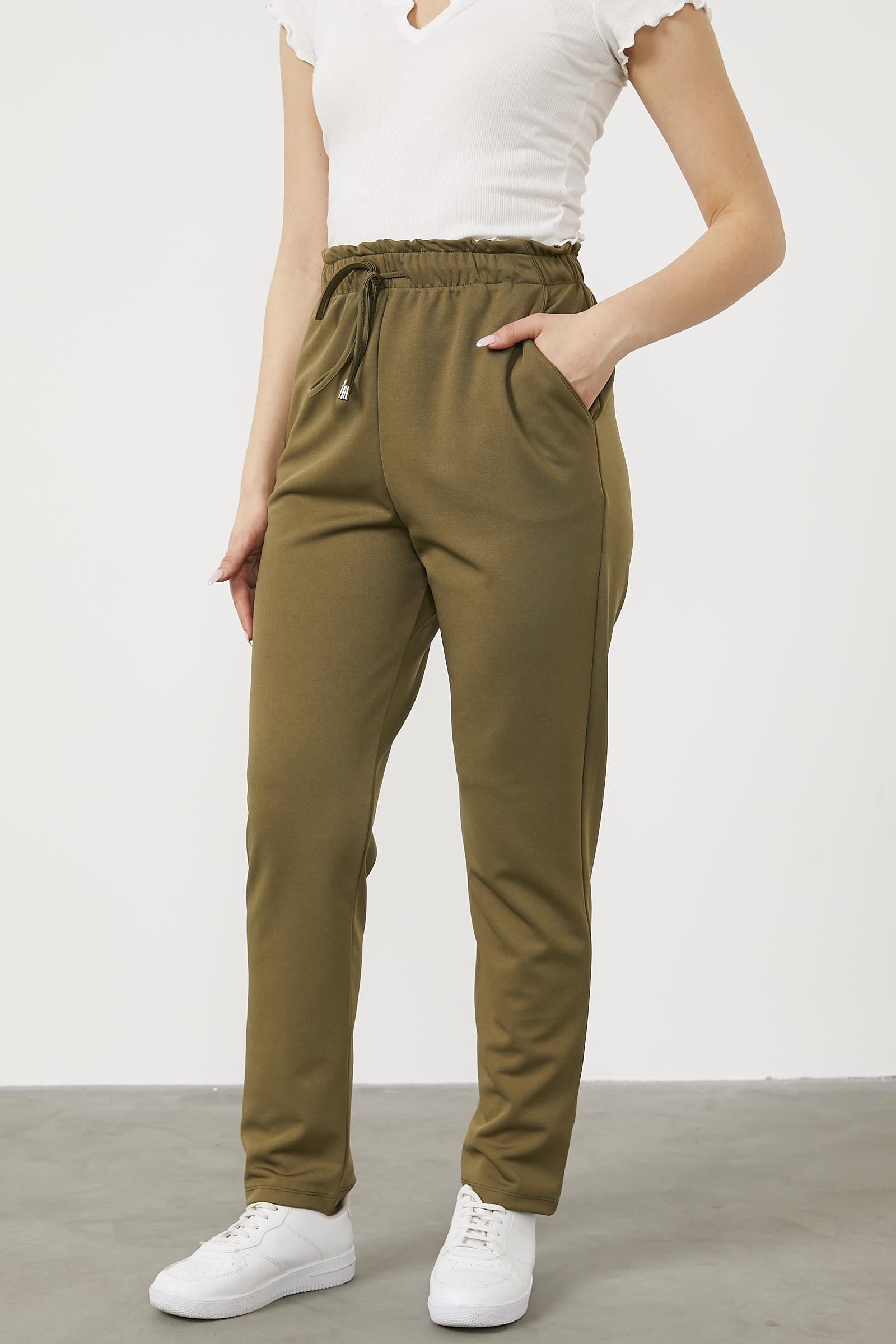 Büyük Beden Beli Lastikli Eşofman Altı - Haki