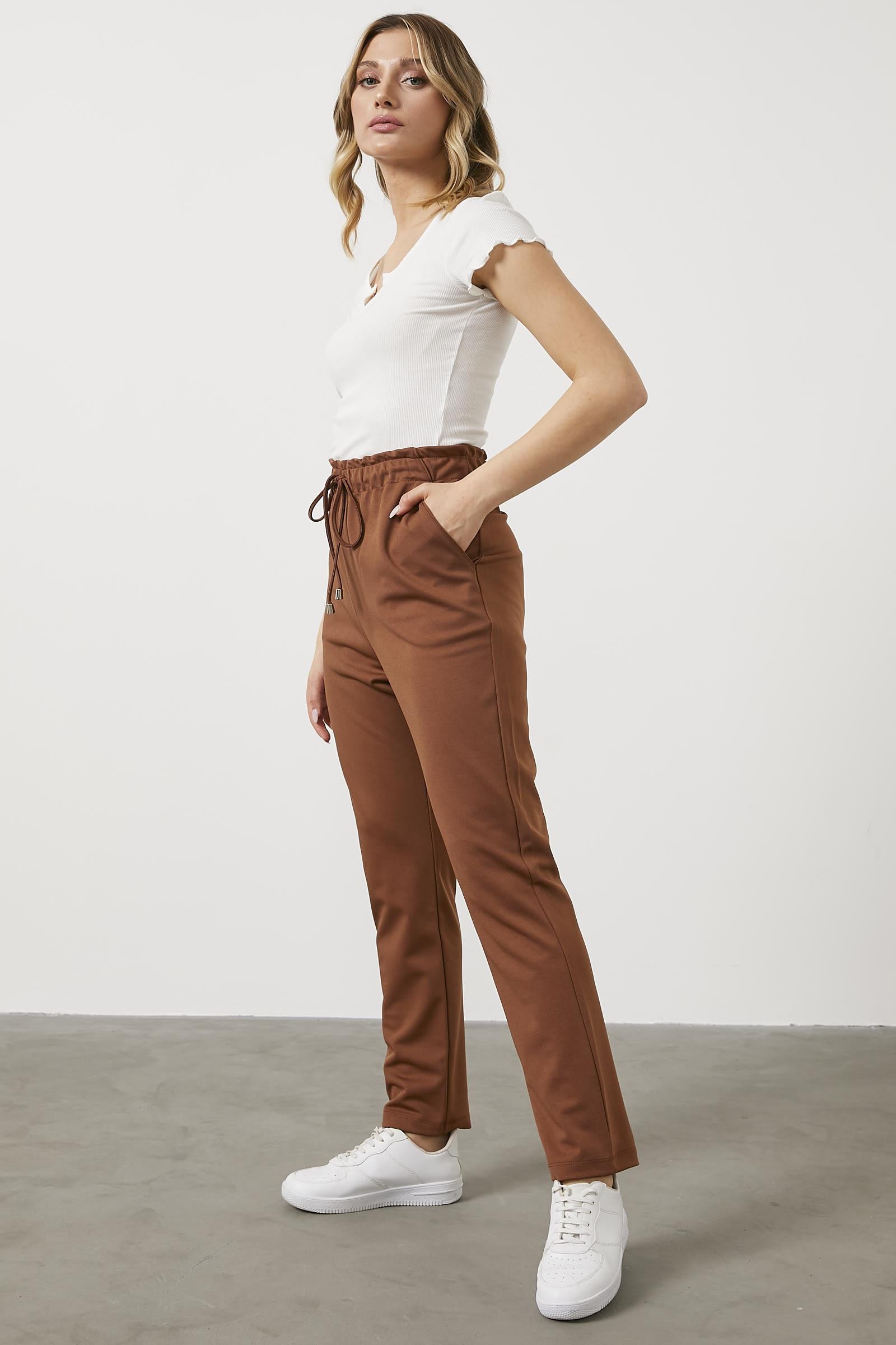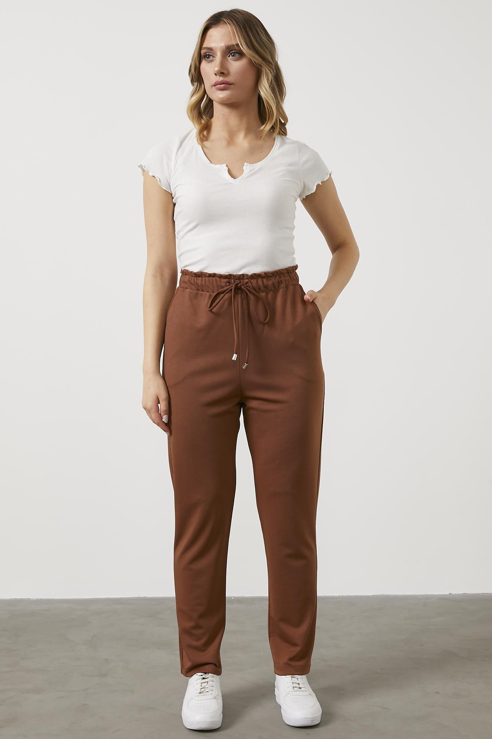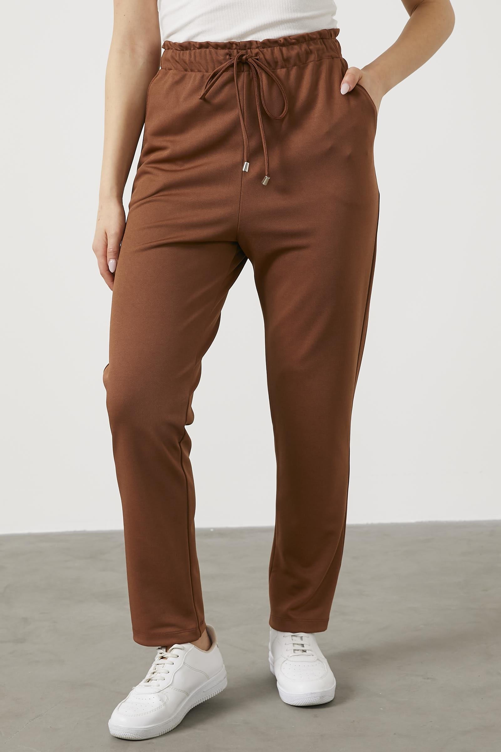 Büyük Beden Beli Lastikli Eşofman Altı - Taba